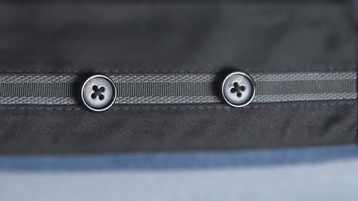 裤腰舌头,区别于市面上常见的,我们采用呢隐形纽扣做法,更高级美观。