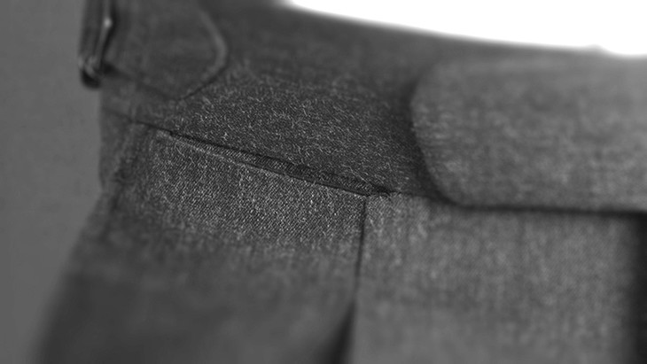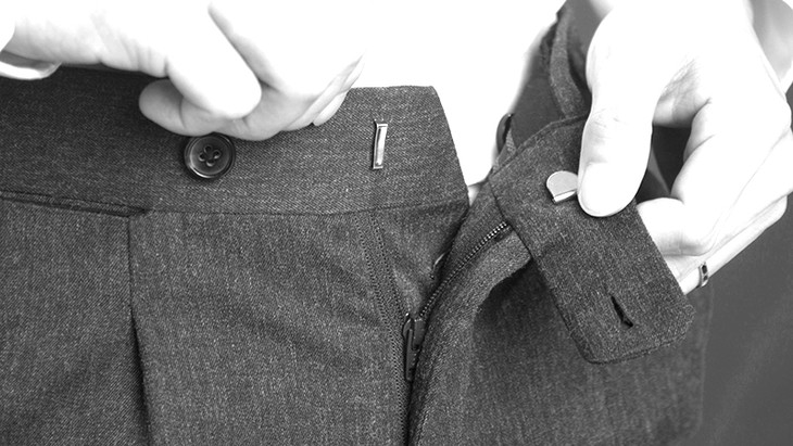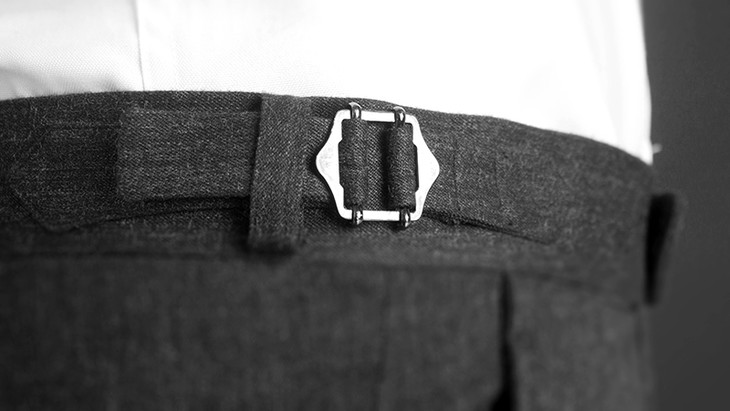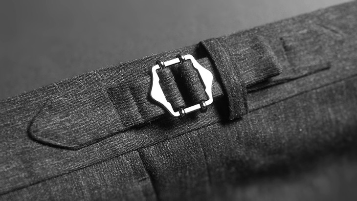 定制西裤还设有背带扣,可以使用古典式背带。古典背带也是一种高级的穿着方式。
