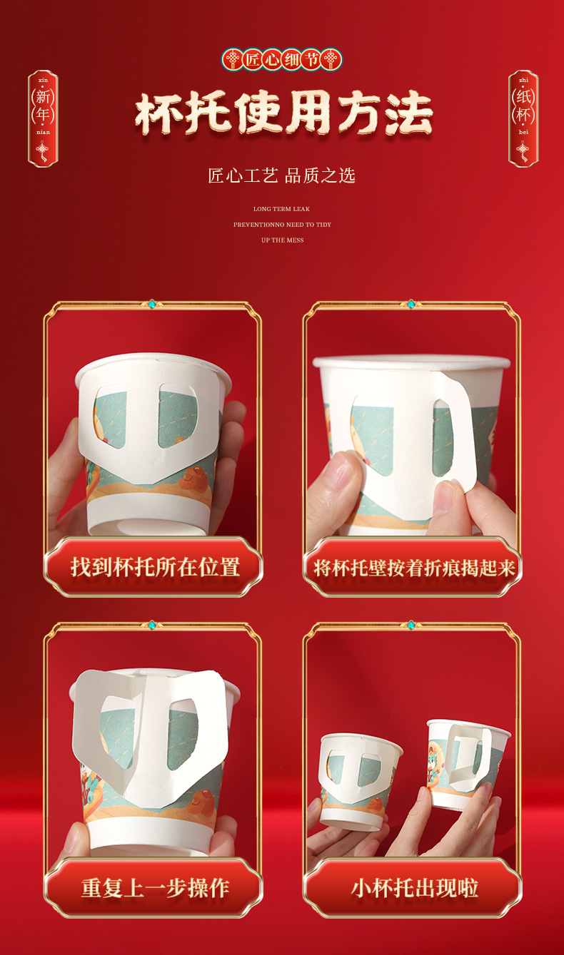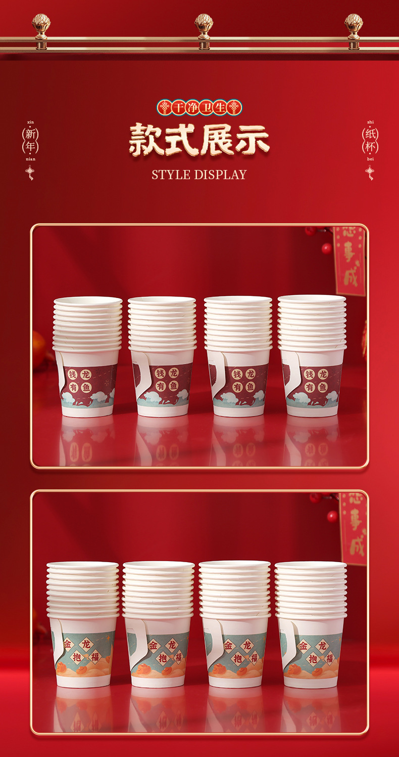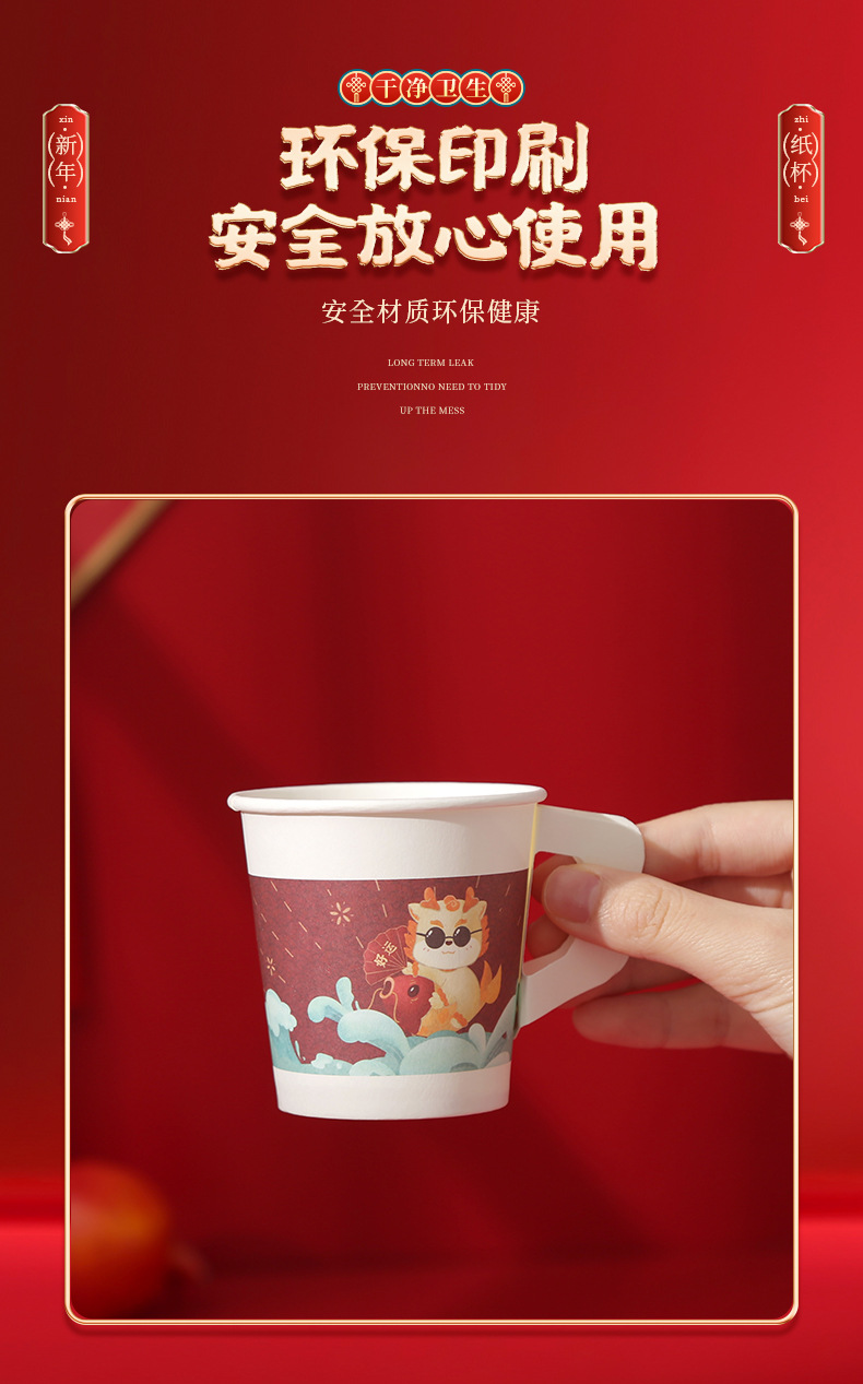 预售 2024龙年新款纸杯带手柄把手一次性新年元旦加厚防烫喜庆家用杯子_HLY