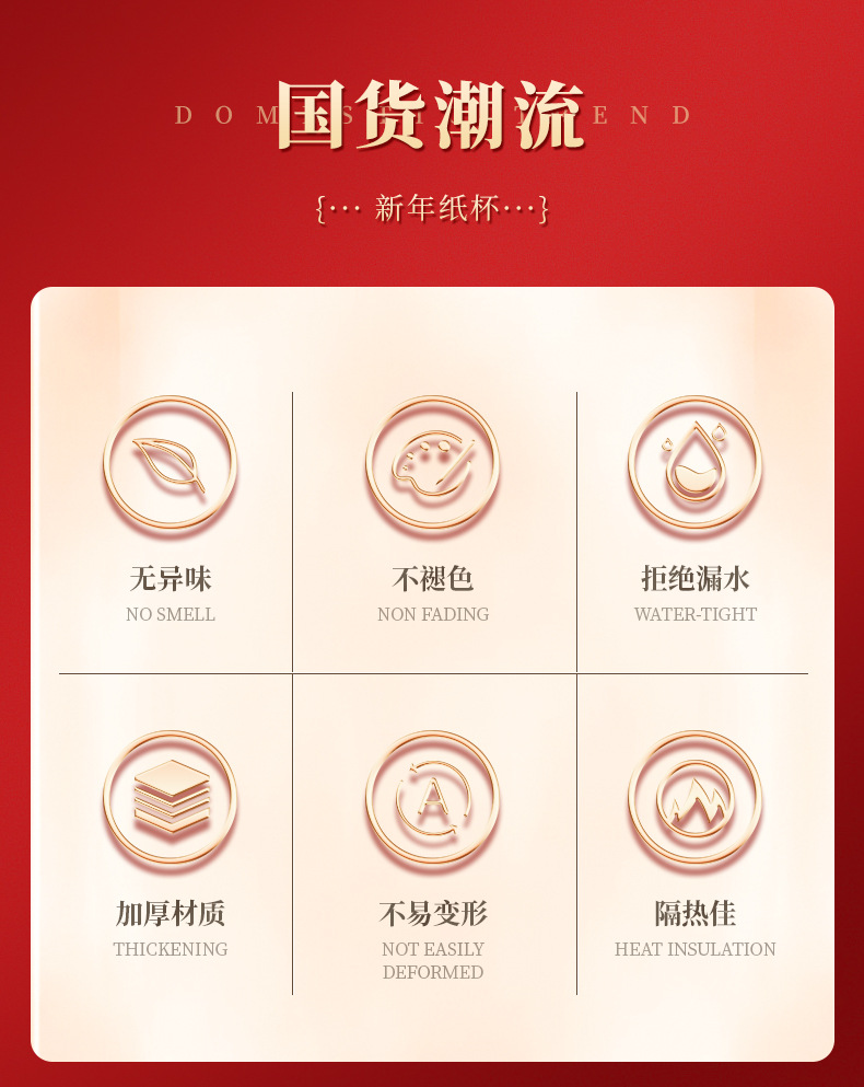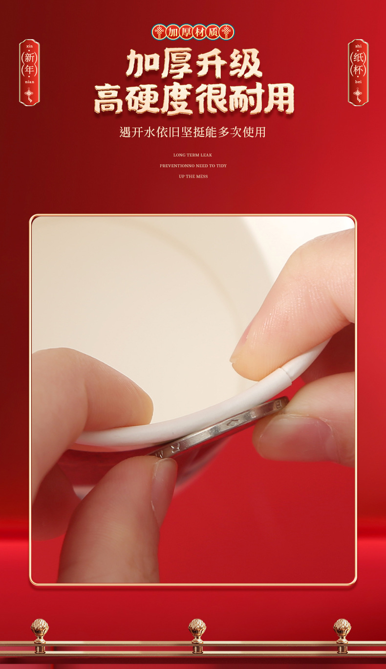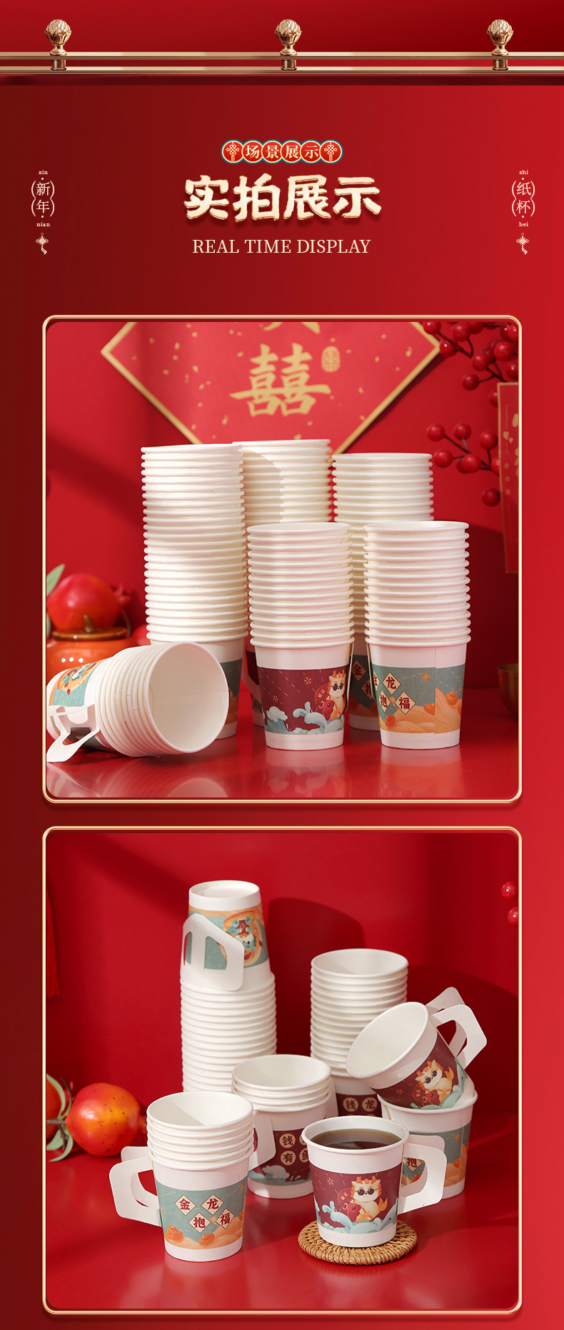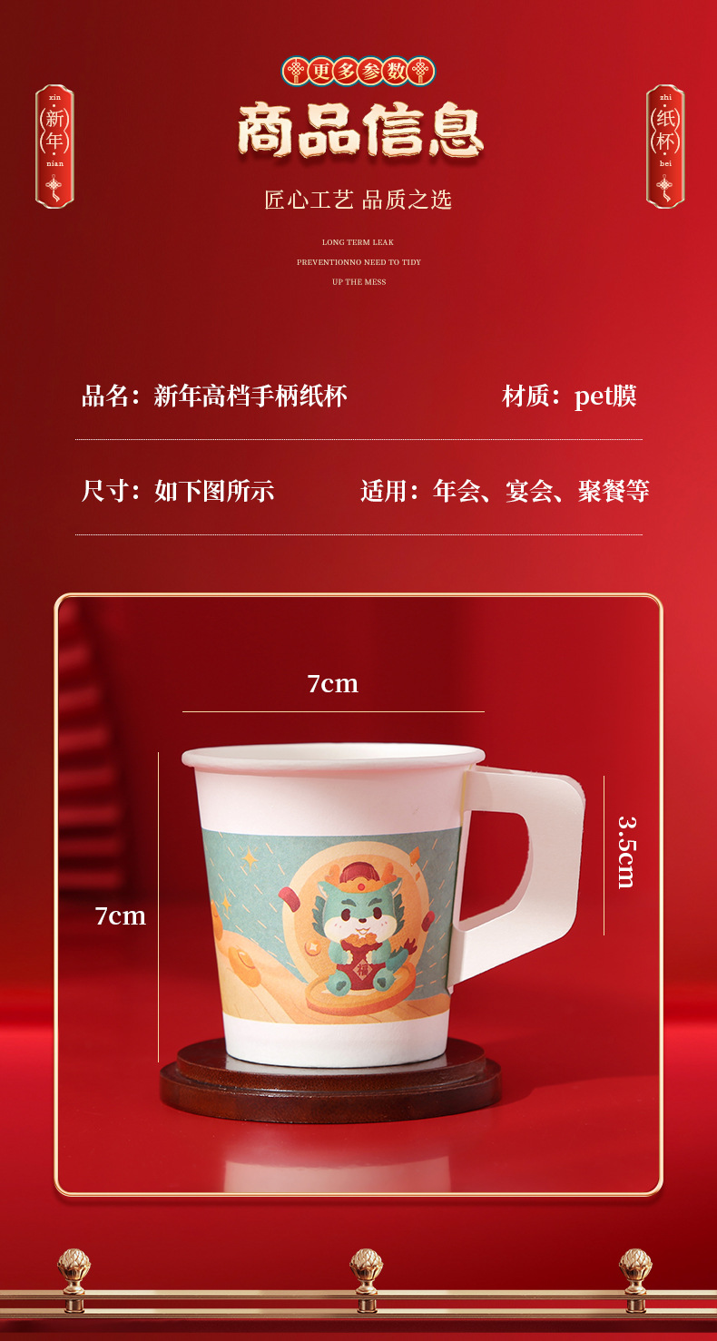 预售 2024龙年新款纸杯带手柄把手一次性新年元旦加厚防烫喜庆家用杯子_HLY