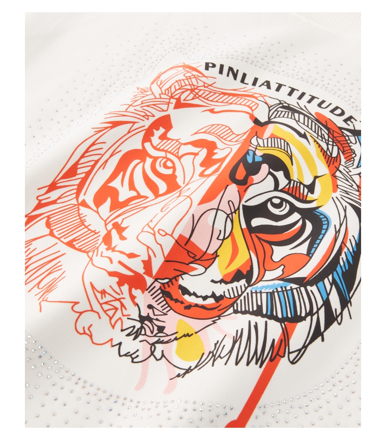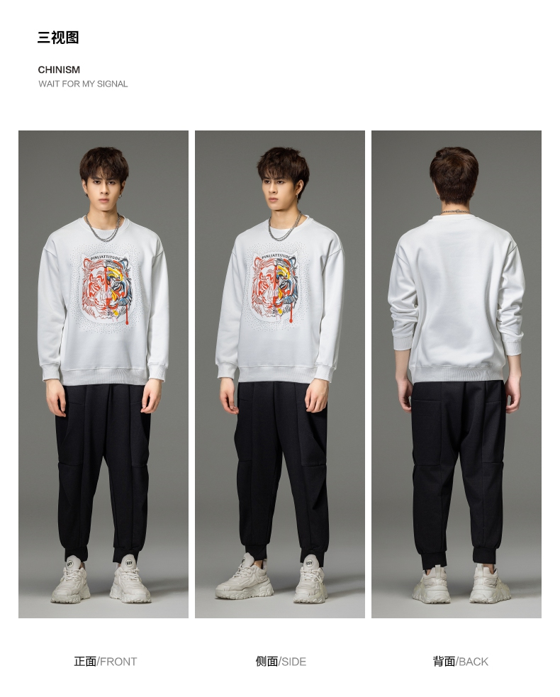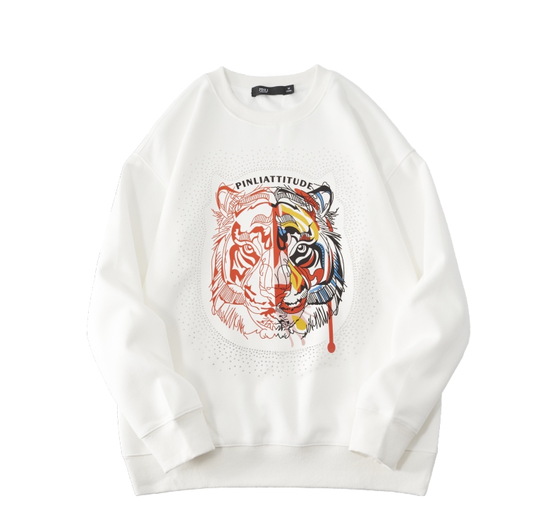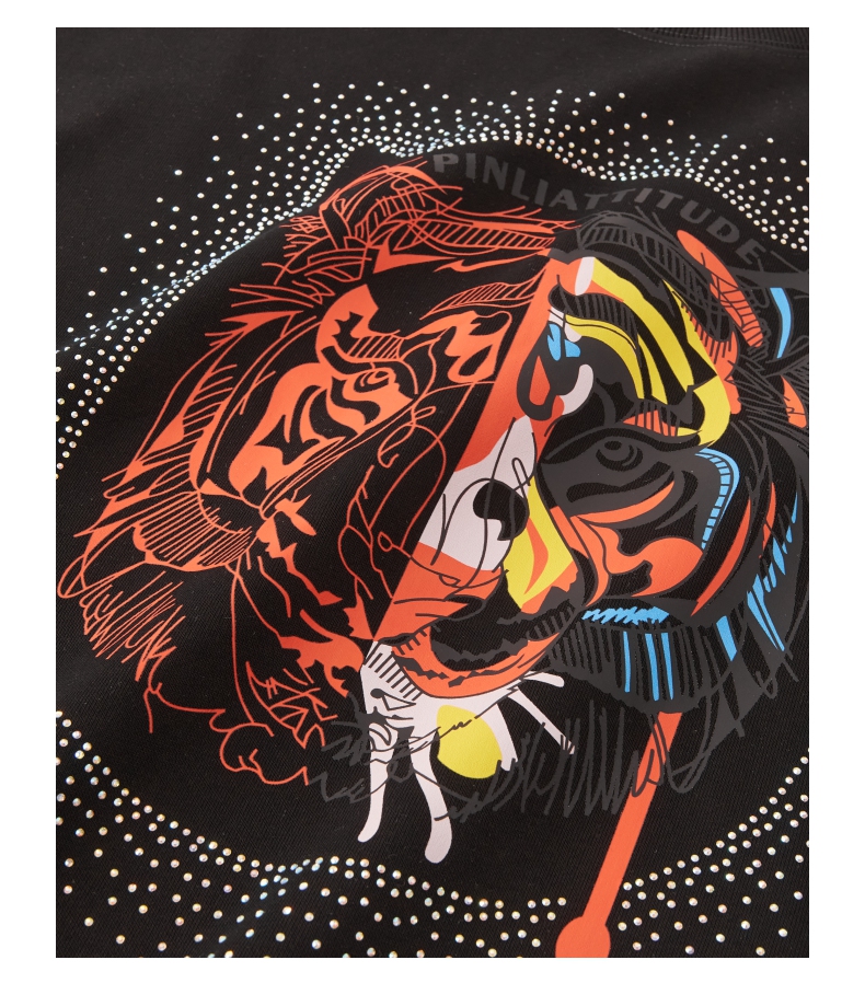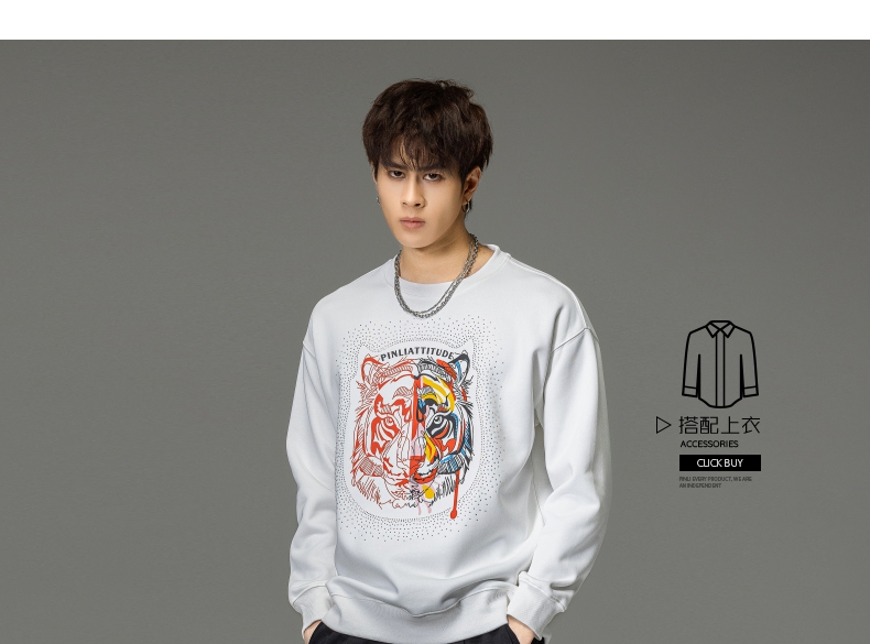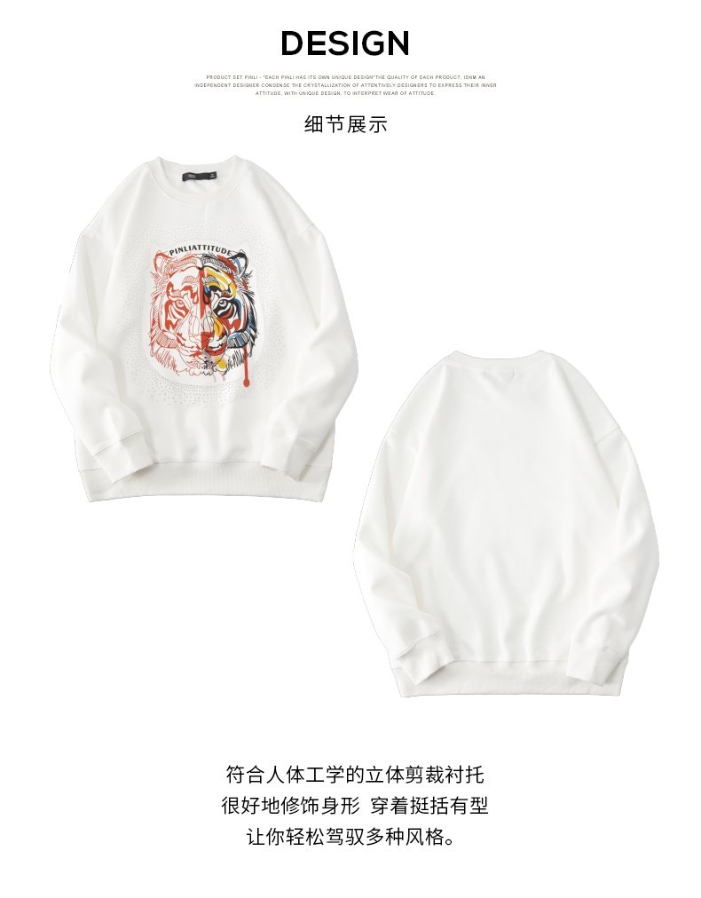 PINLI品立秋季新品烫钻圆领卫衣男士潮牌老虎头宽松长袖上衣BV233109029