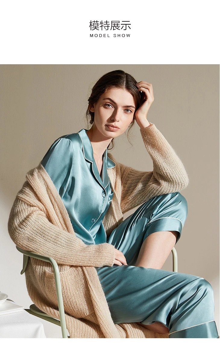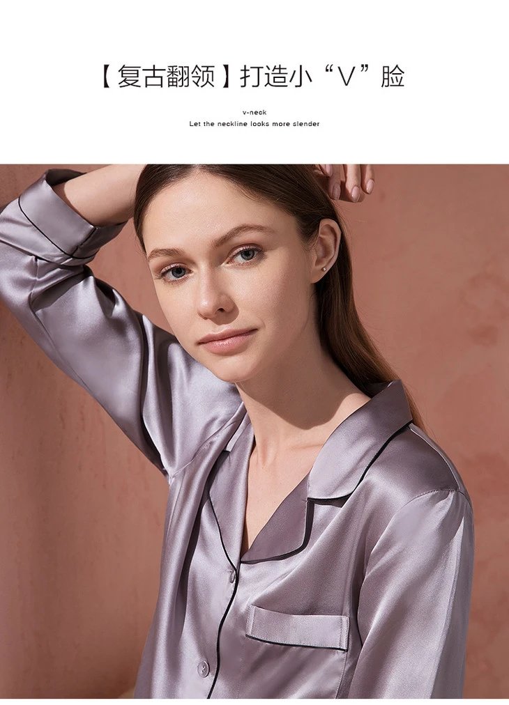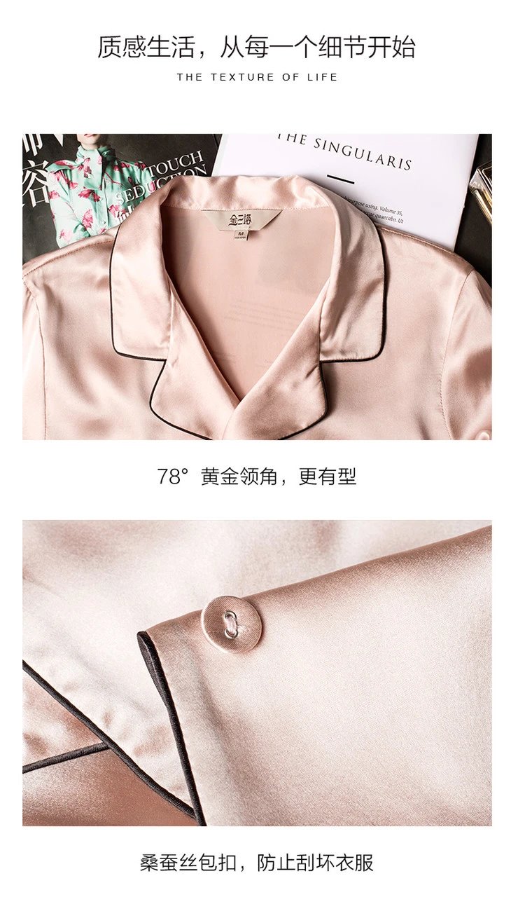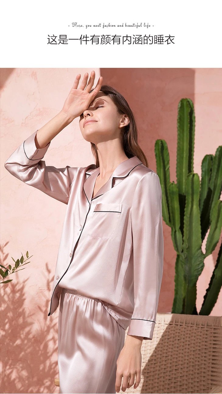 金三塔真丝睡衣女长袖两件套100%桑蚕丝宽松性感可外穿丝绸家居服套装8YSF7B202和YSF9B212(限价款)