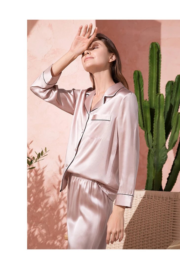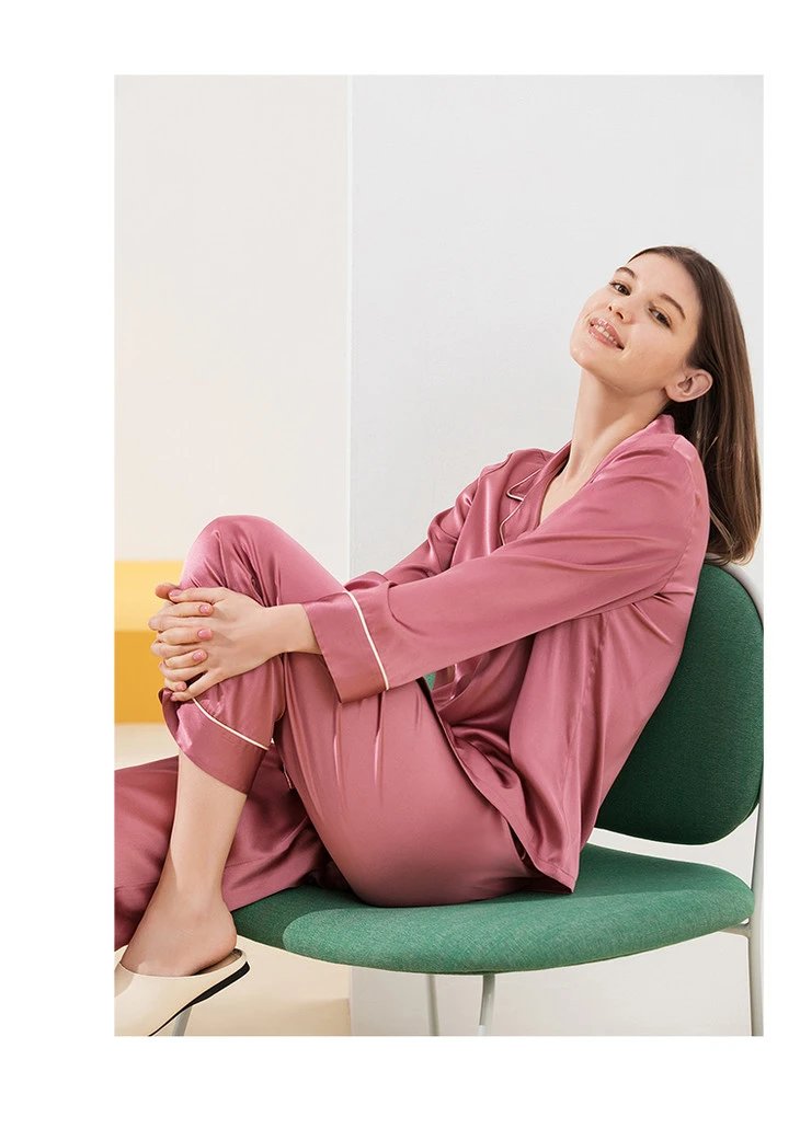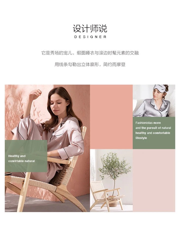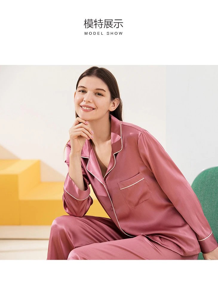金三塔真丝睡衣女长袖两件套100%桑蚕丝宽松性感可外穿丝绸家居服套装8YSF7B202和YSF9B212(限价款)