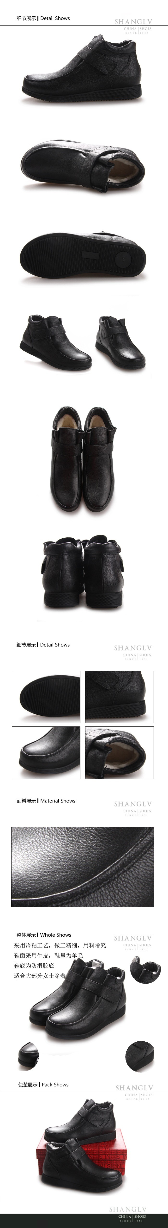 内联升女鞋冬季棉鞋羊毛内里女式牛皮羊毛棉鞋4351C