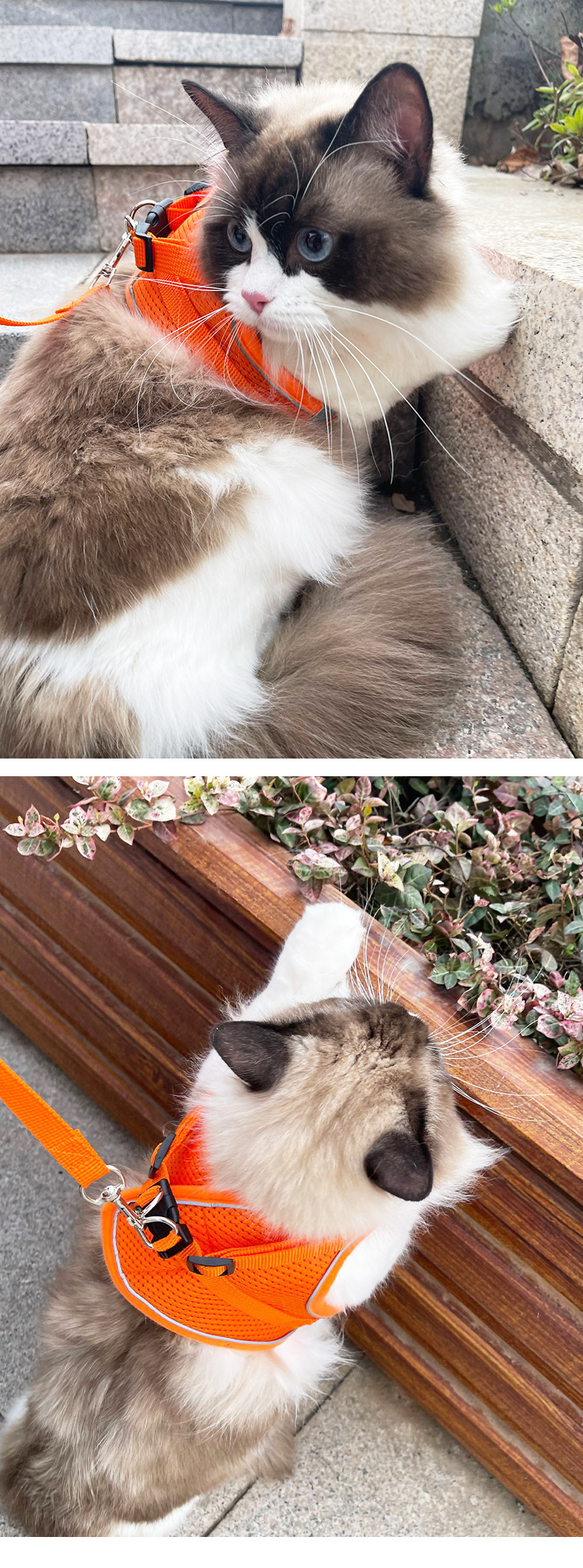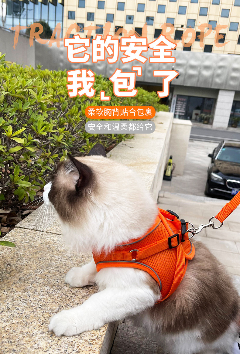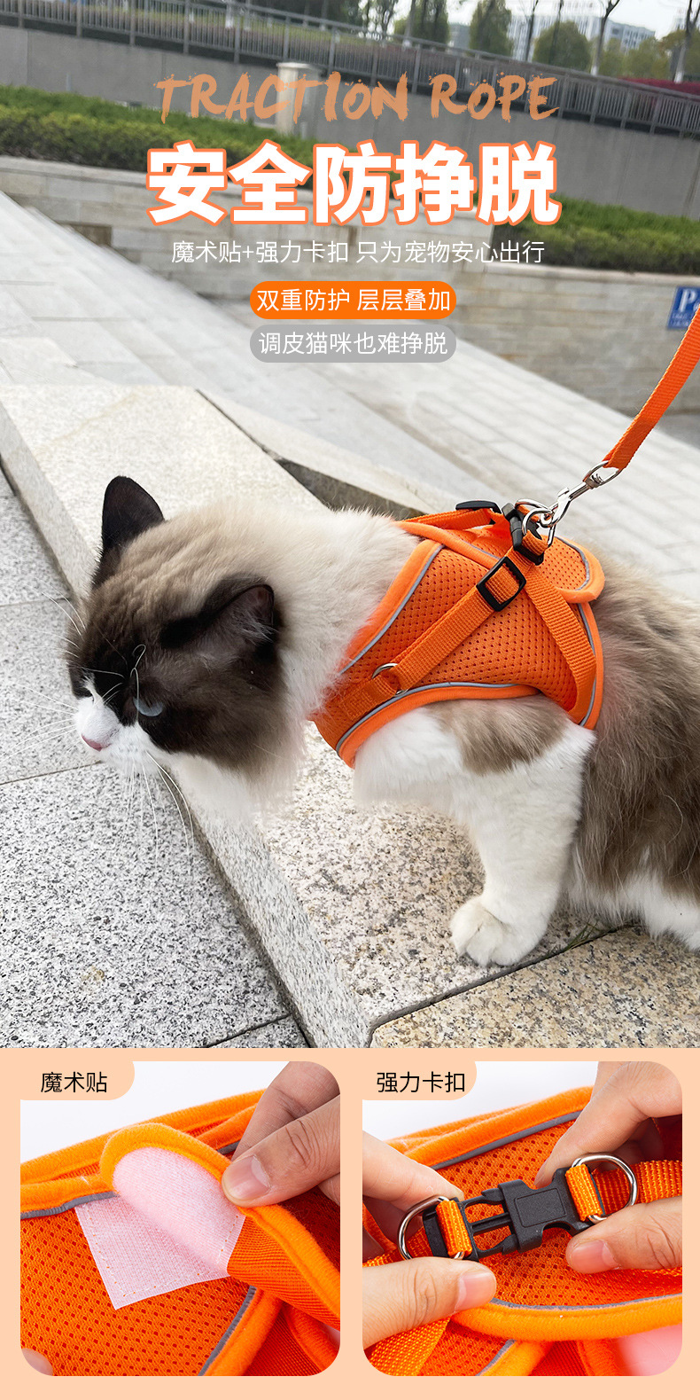 【宠物猫咪牵引绳】背心式胸背带外出猫咪专用防挣脱溜猫绳网格胸背