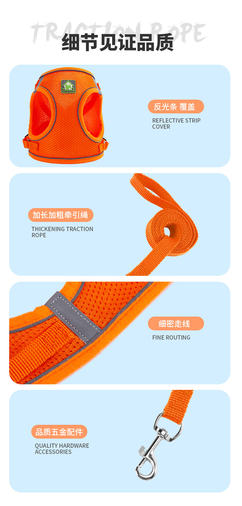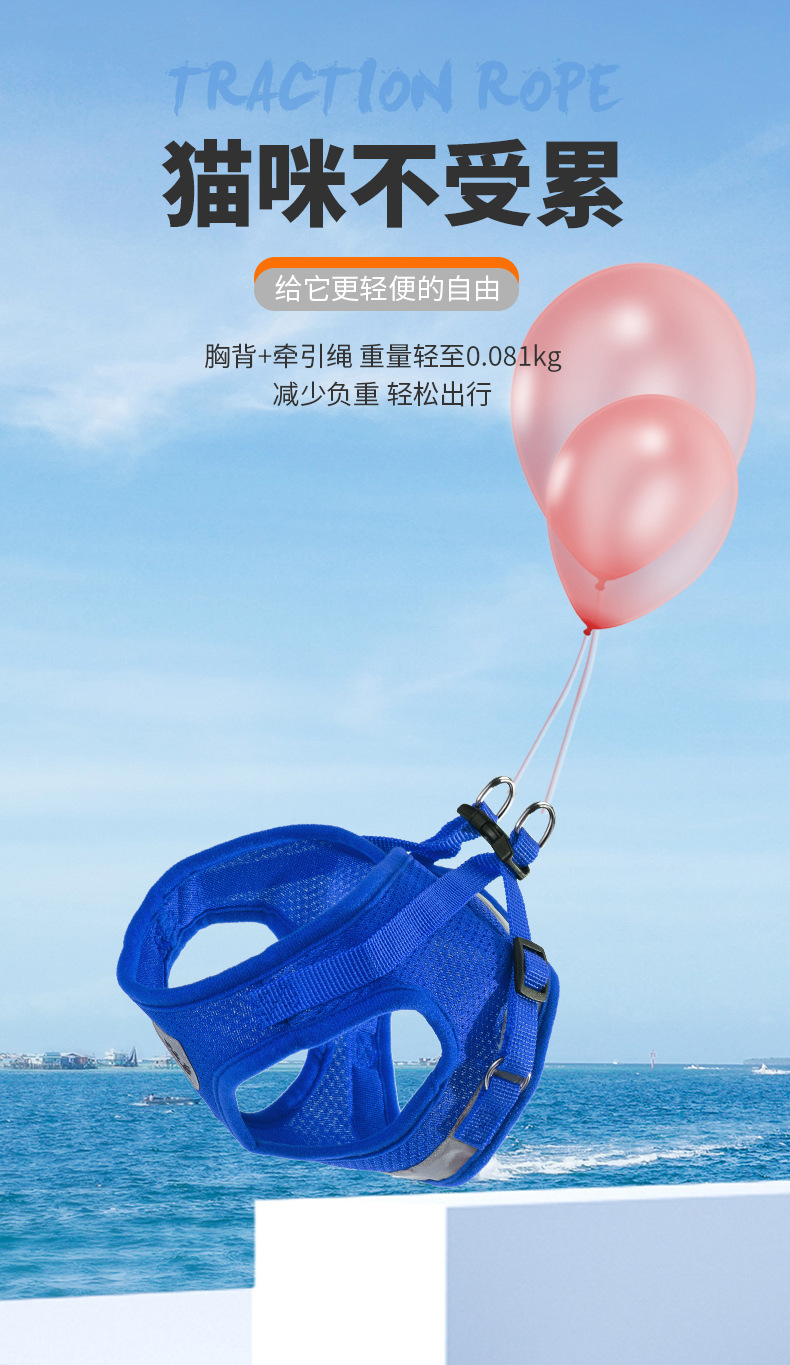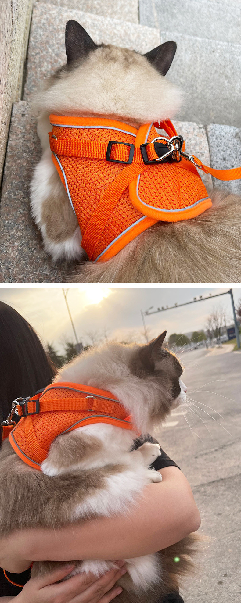 【宠物猫咪牵引绳】背心式胸背带外出猫咪专用防挣脱溜猫绳网格胸背