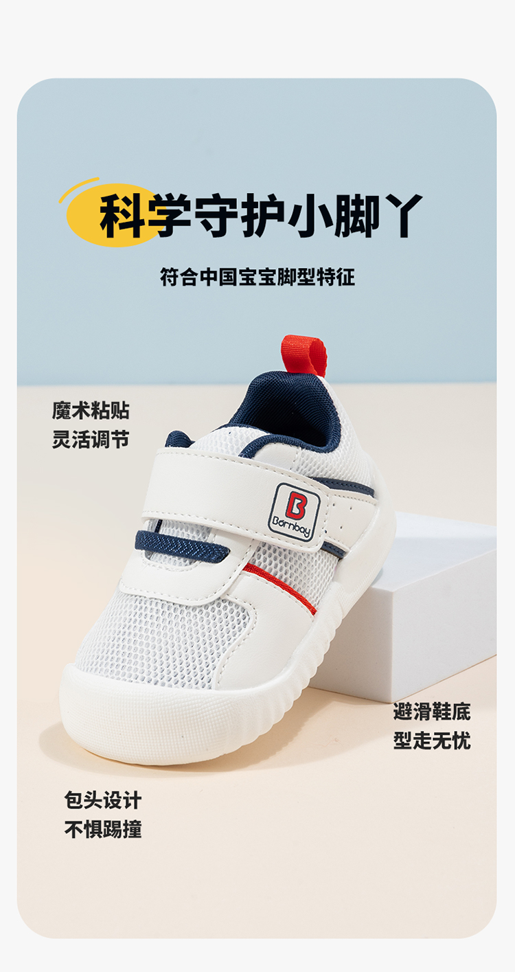 贝贝怡婴儿学步鞋防滑防撞稳步鞋小童魔术贴春秋网面单鞋宝宝鞋子ZB1DX004