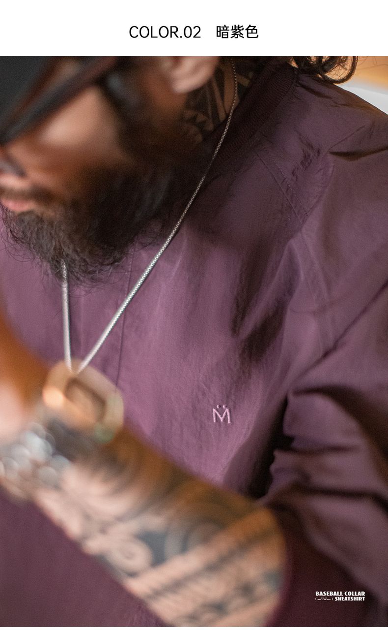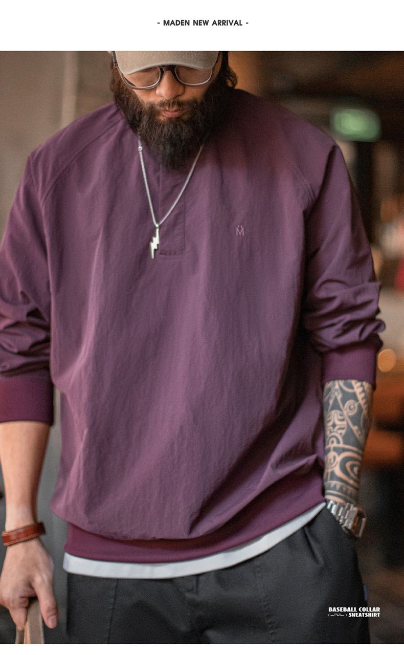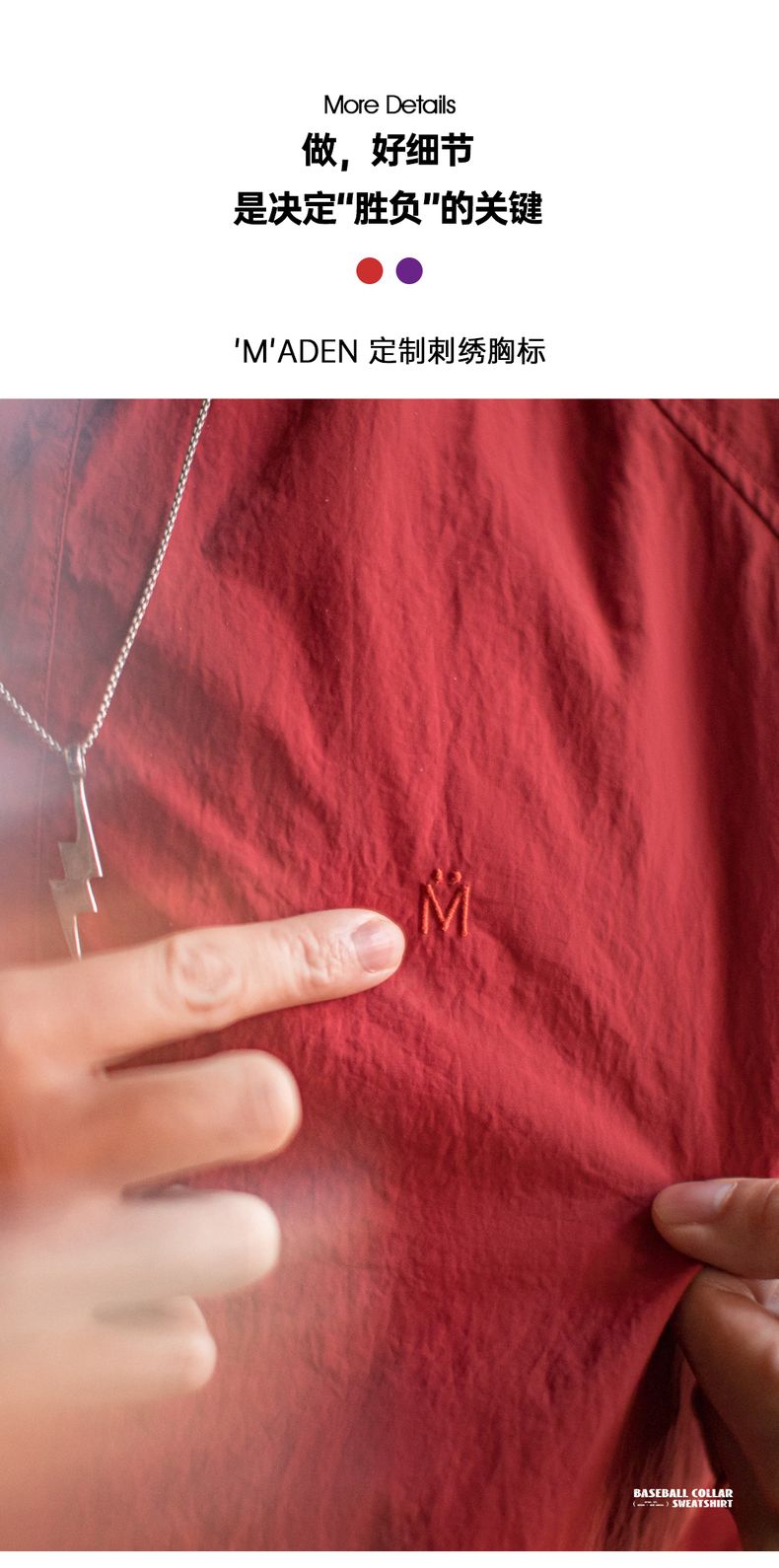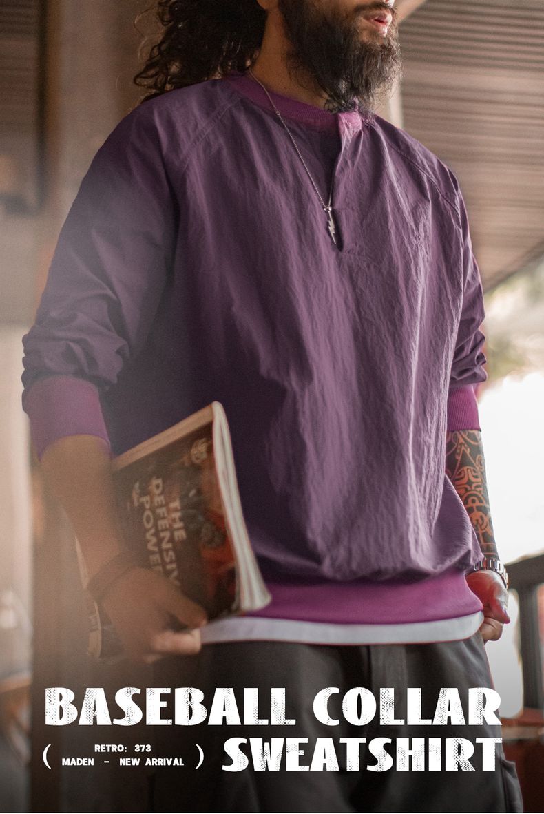 工装优选 美式复古棒球领卫衣新年红色上衣宽松套头衫圆领T恤男春