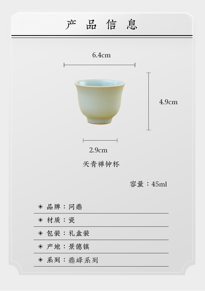 问鼎汝瓷鼎峰系列天青老款禅钟杯(缺货)