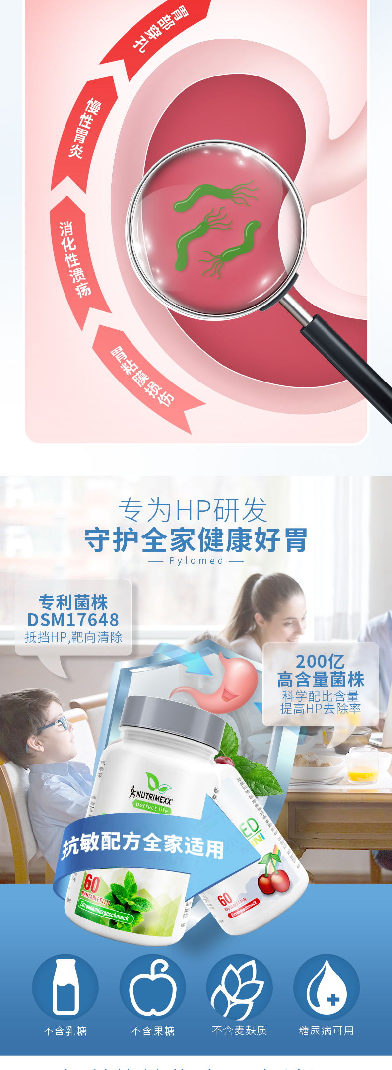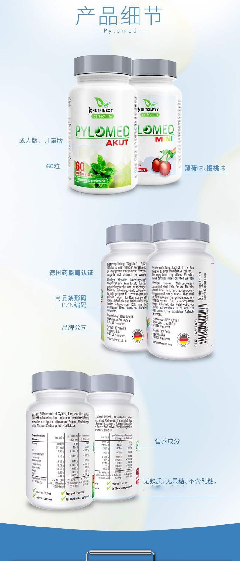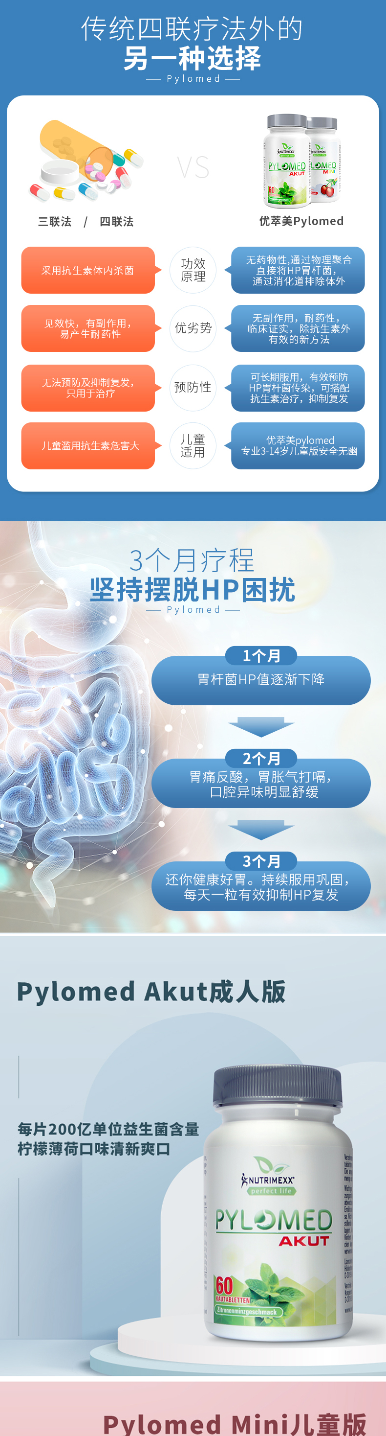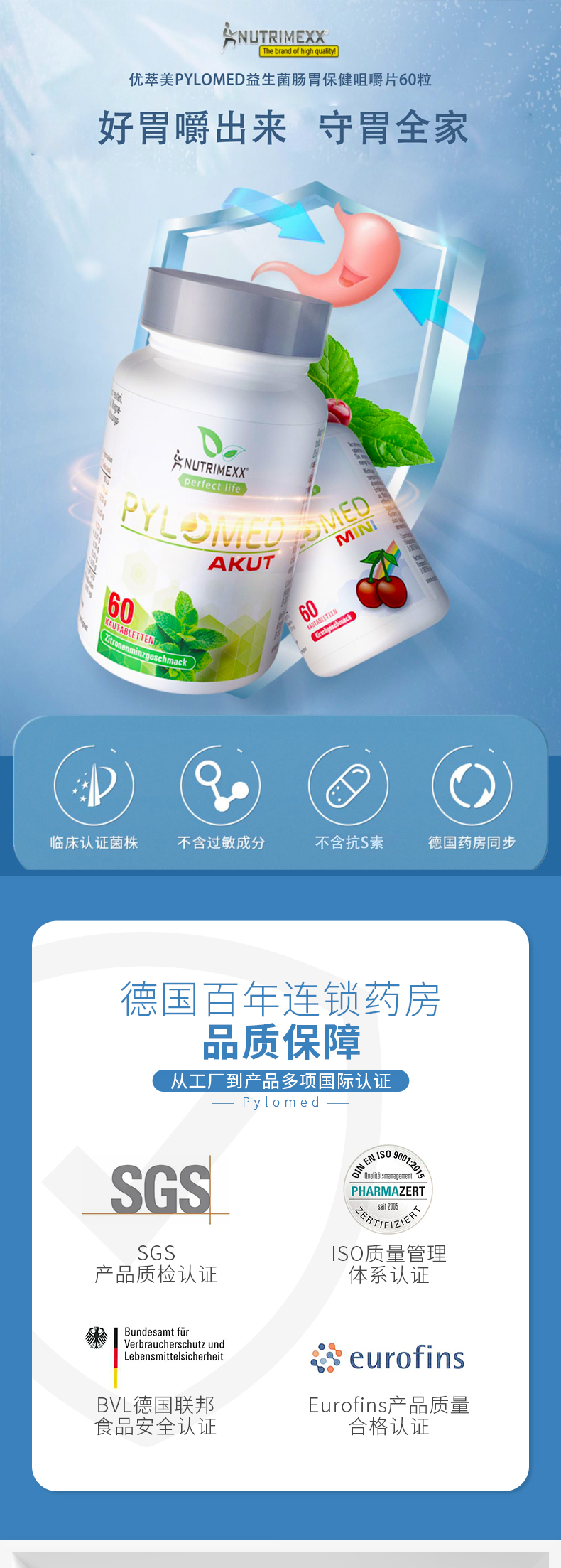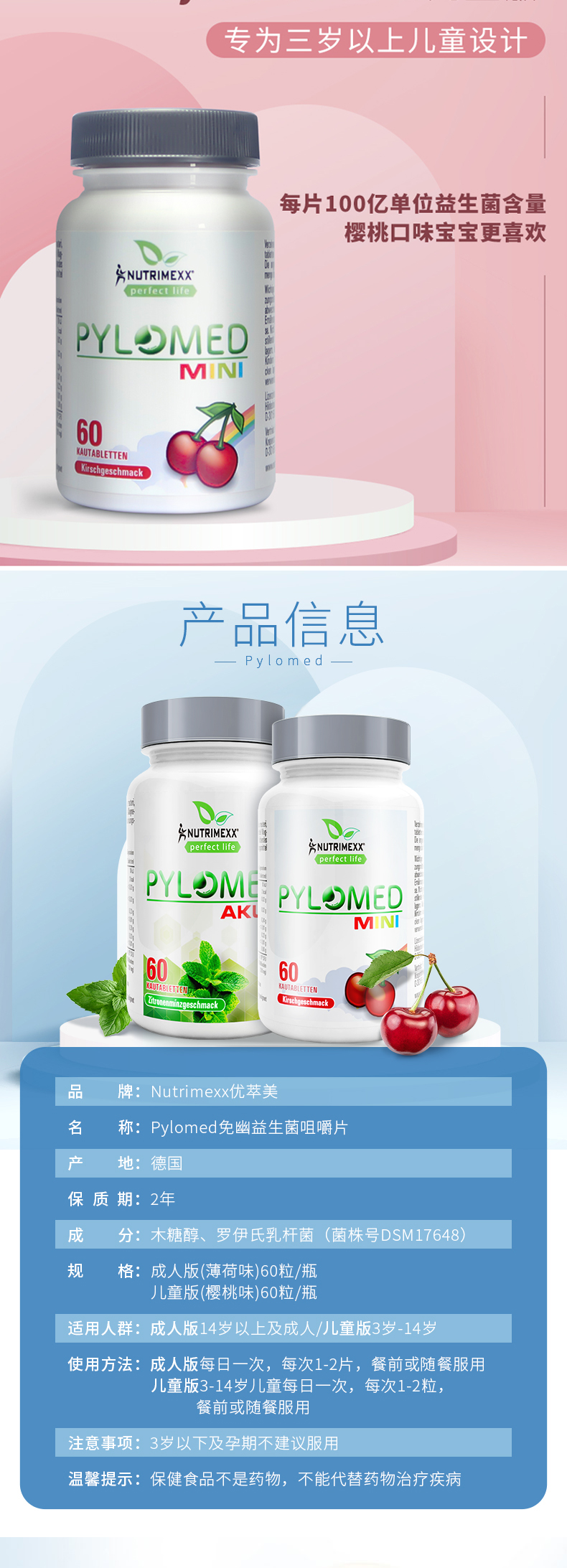 优萃美pylomed免幽益生菌60粒 成人款薄荷味/儿童款樱桃味【海南分院】