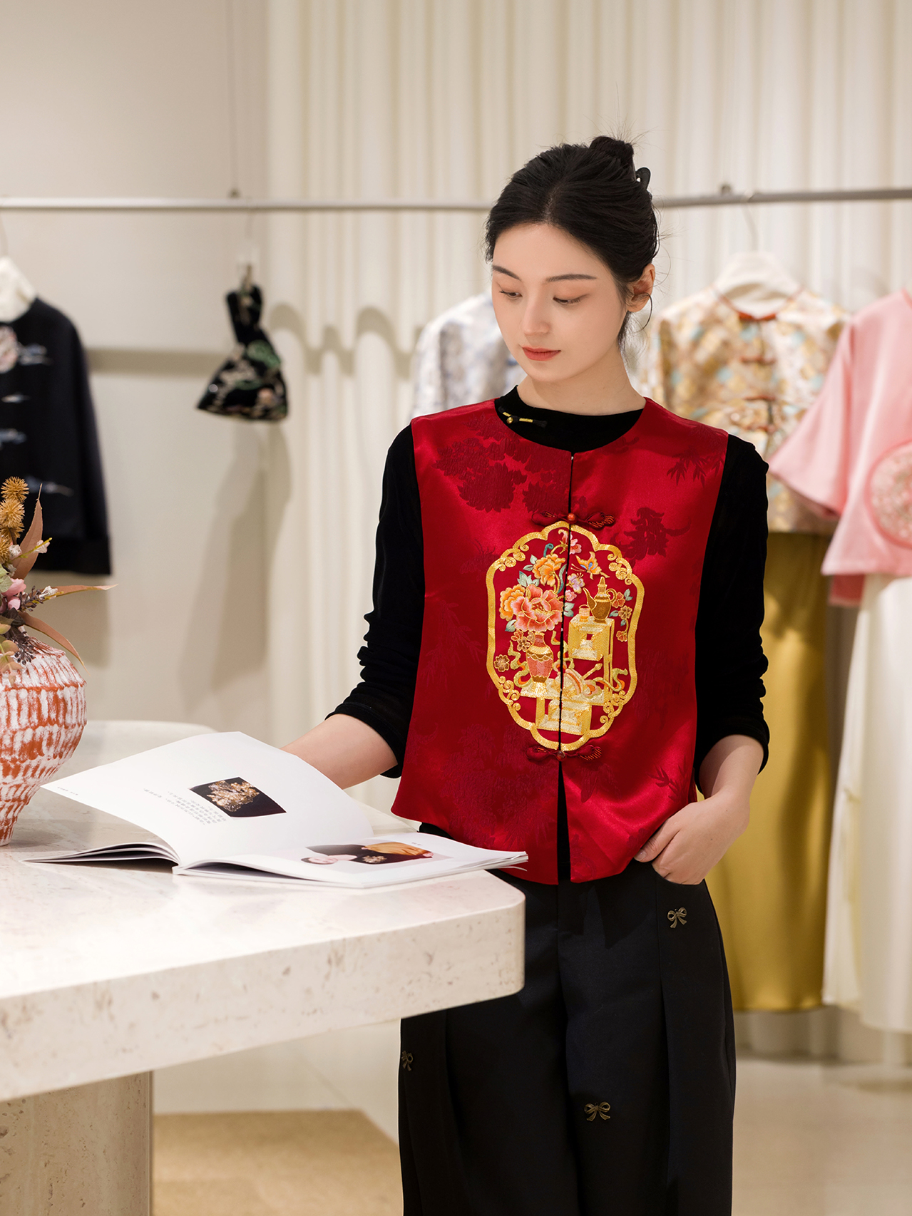 盛唐牡丹盛奢系列 | 梅兰竹菊冠乐绉盘金绣马甲