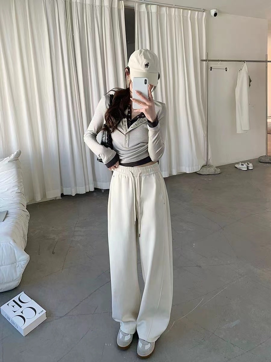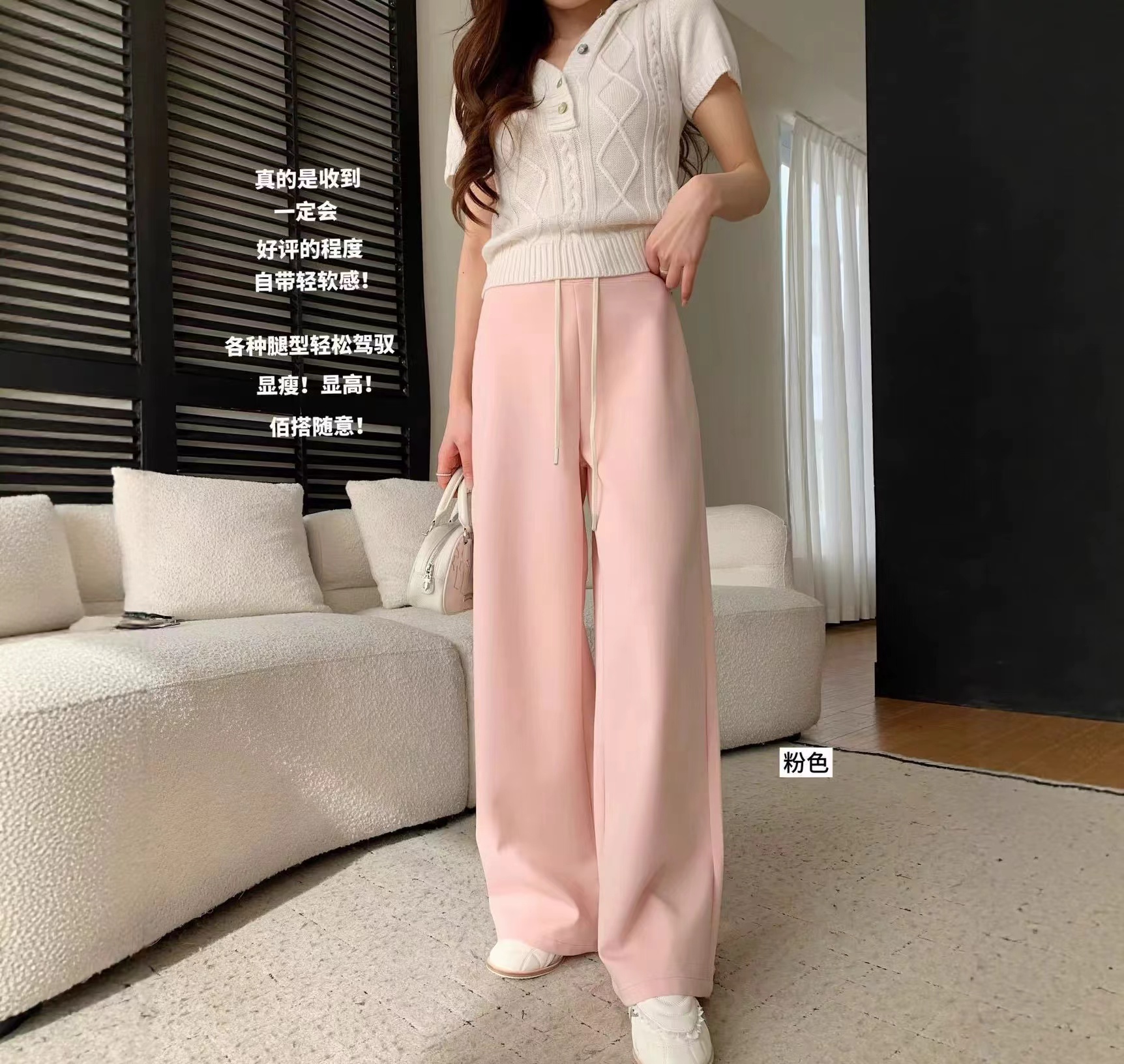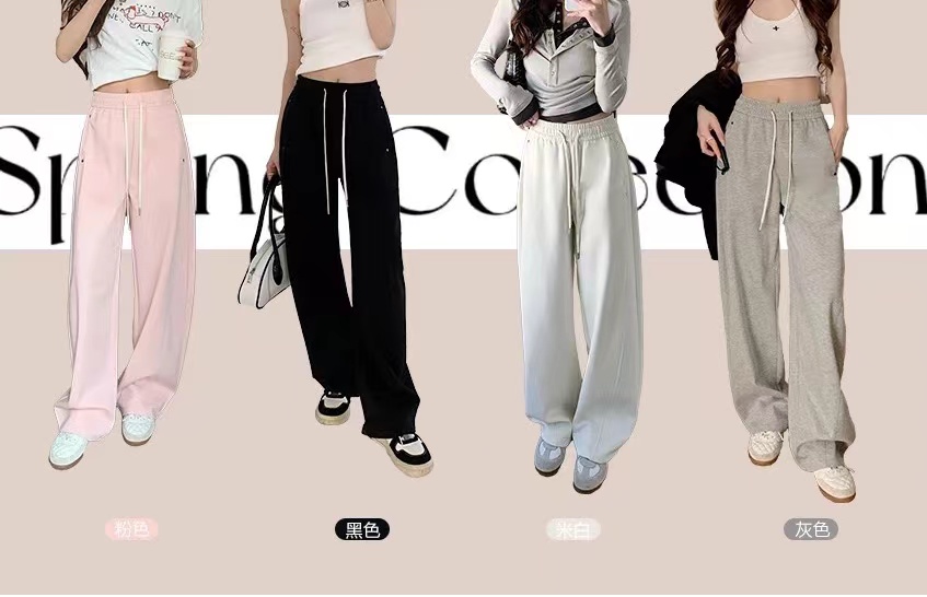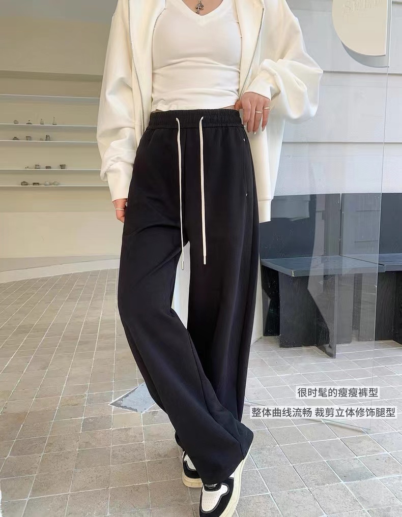 简约松弛感阔腿运动裤女抽绳垂感休闲裤直筒卫裤2026早春新款,慵懒松弛感卫裤舒适与时髦的双向奔赴,告别紧绷束缚,这条卫裤把自在穿在身上,软fufu面料:亲肤透气,垂感在线,走路带风还不显臃肿,高腰抽绳设计:自由调节松紧,轻松拿捏慵懒氛围感,四色可选:奶白温柔、樱粉元气、麻灰百搭、黑色显瘦,承包你一整季的穿搭灵感,日常通勤、居家躺平都能穿,轻松适配卫衣、T恤、针织衫,怎么搭都好看~