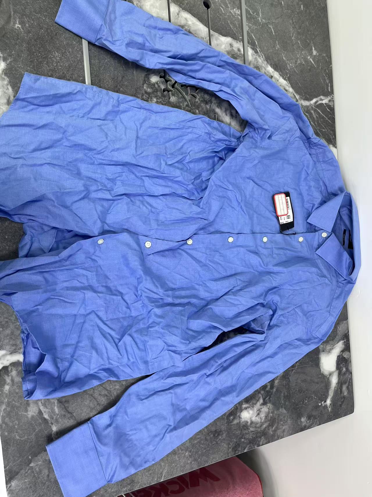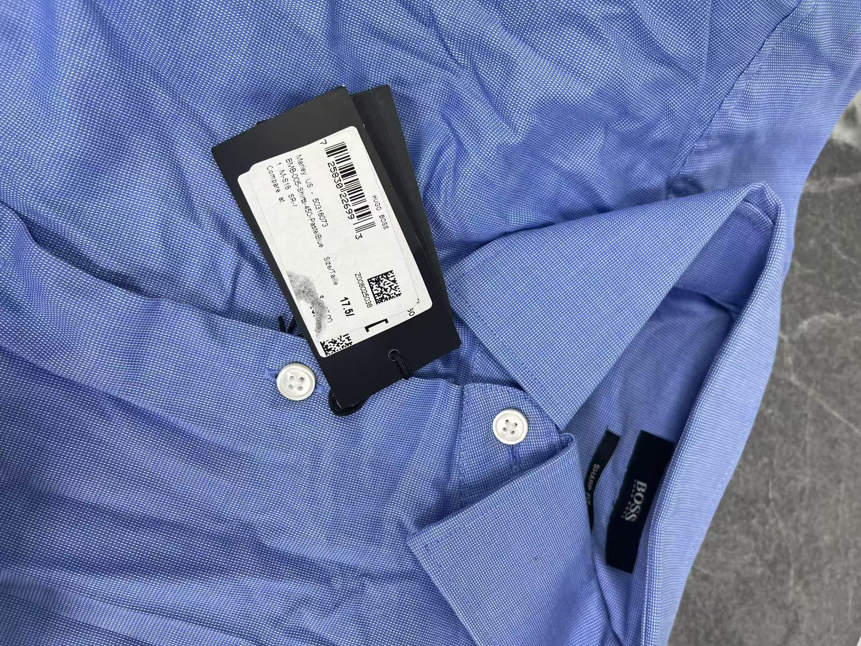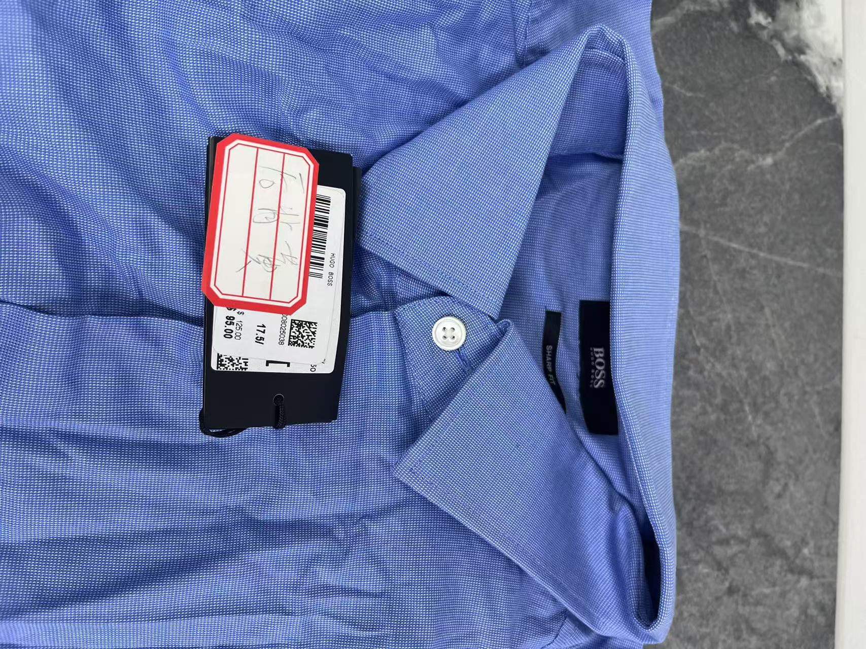 瑕疵HUGO BOSS男士黑标sharp fit纯色方领长袖衬衫