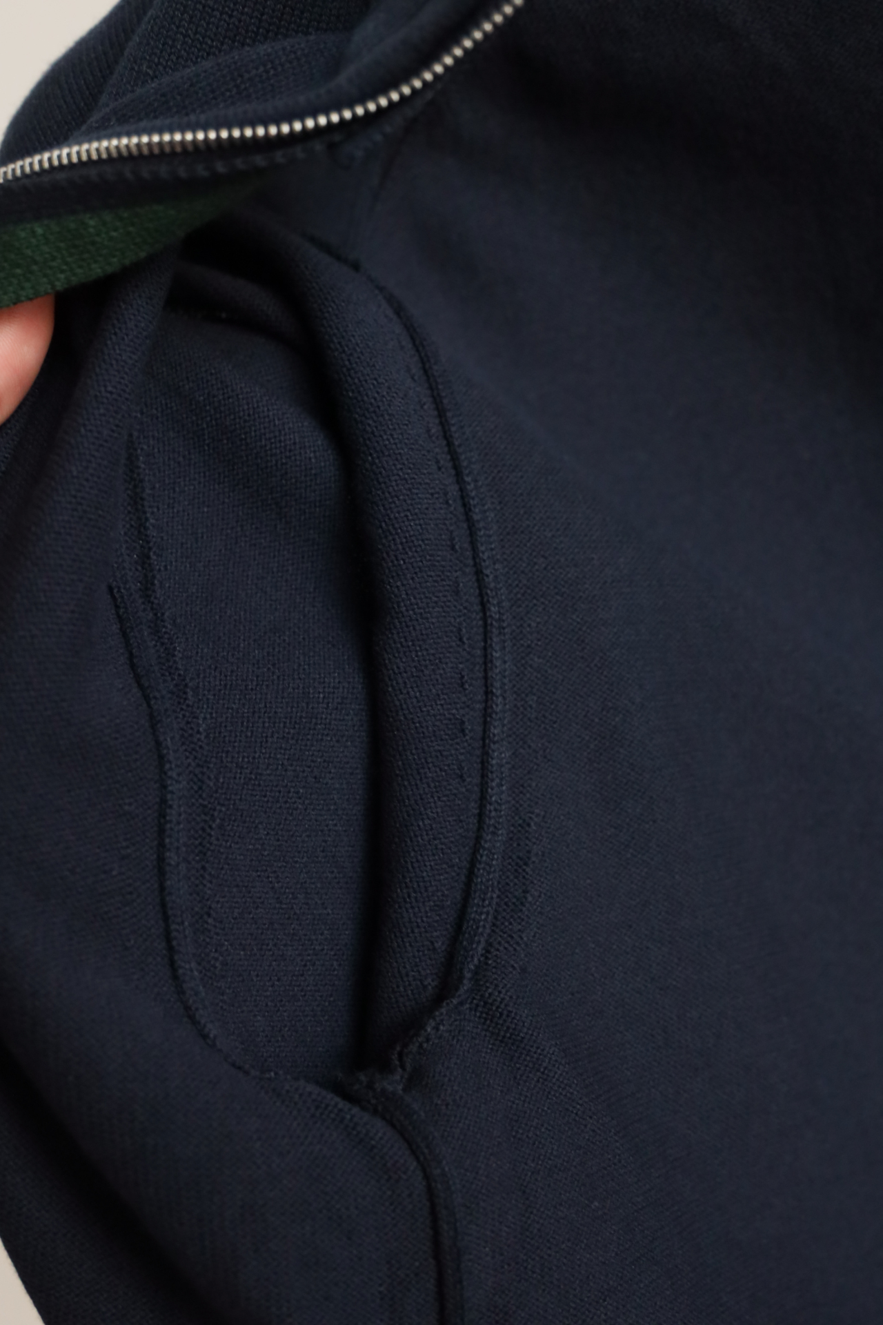 拉链两侧内衬带有绿色织带装饰,细节处增加层次感