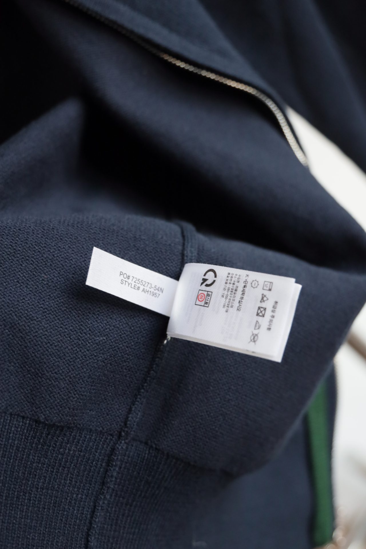 左胸位置有经典的绿色鱼刺绣logo,刺绣针脚细密饱满,边缘带有白色包边,既保留品牌辨识度,又不会破坏整体简约风格。