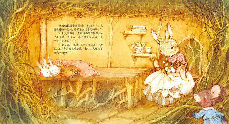 本书的插画里,还藏着妈妈的一个动人小秘密。那就是小老鼠出走,老鼠妈妈真的不管他了吗?让孩子从画面里寻找角落中的老鼠妈妈,发现隐藏的母爱。