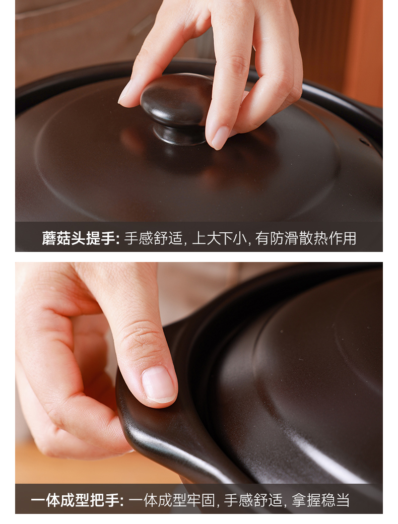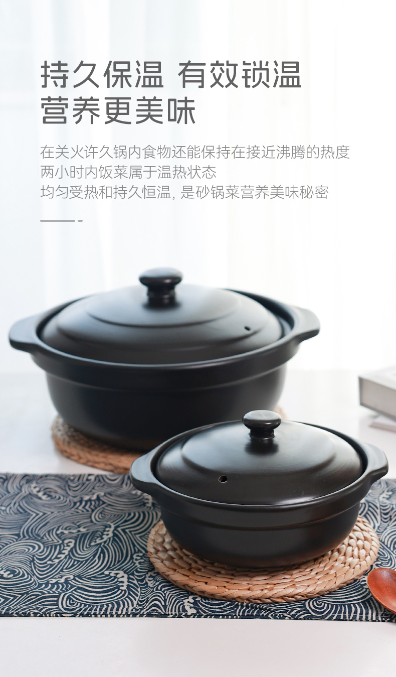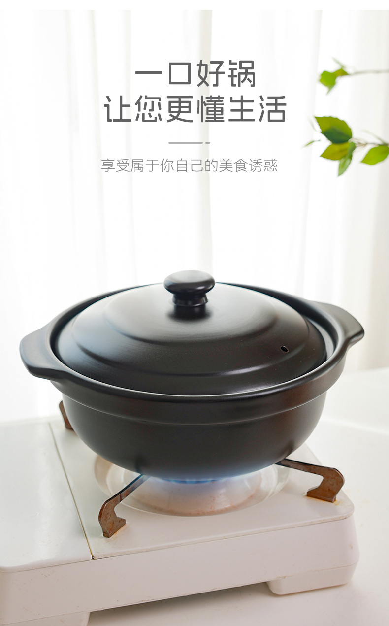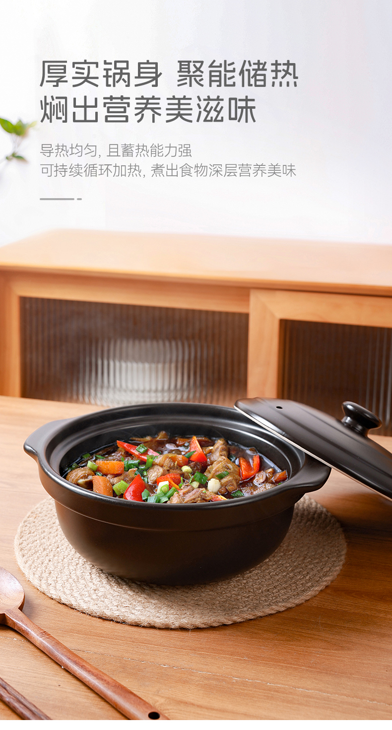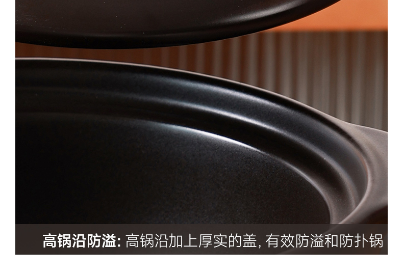 【陶煲王黑平锅】可干烧平锅陶瓷家庭汤锅砂锅煲汤明火燃气灶宽口炖汤瓦煲黄焖鸡