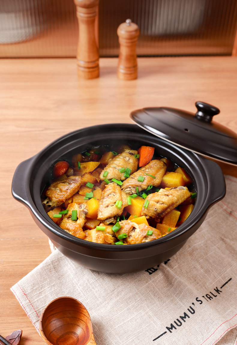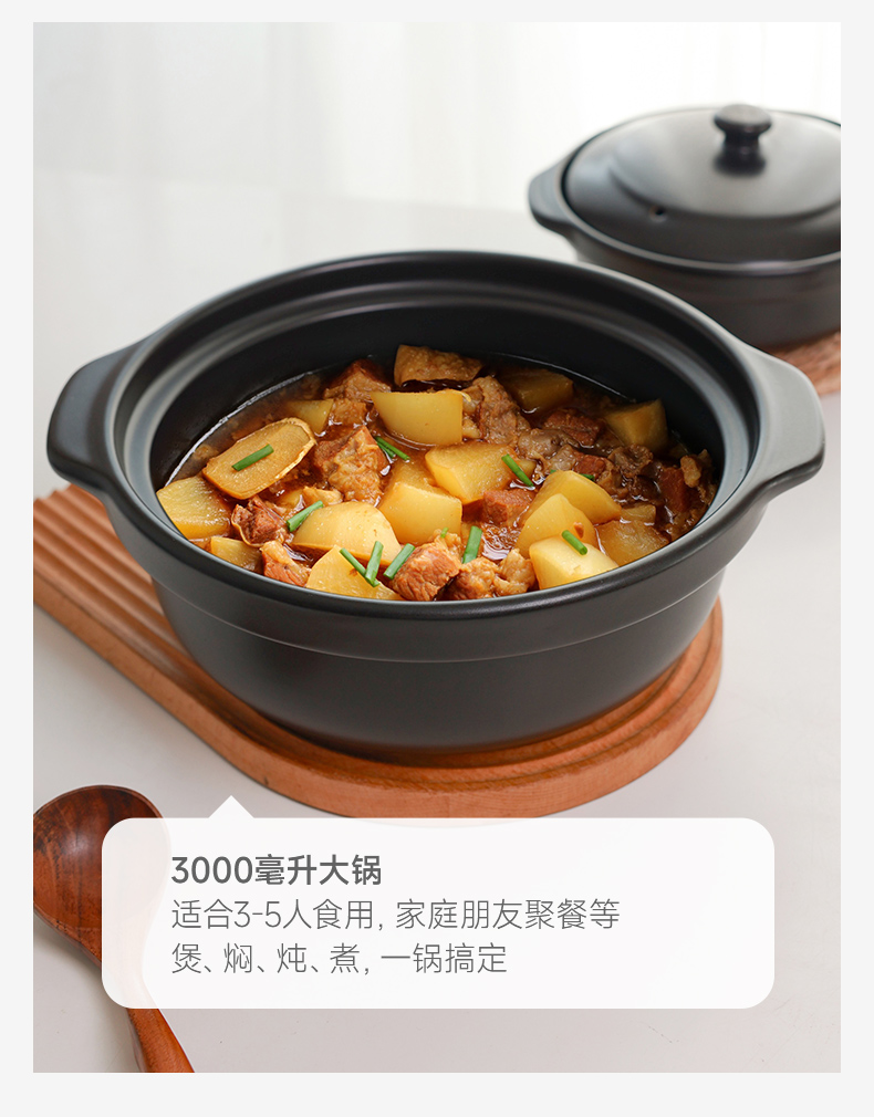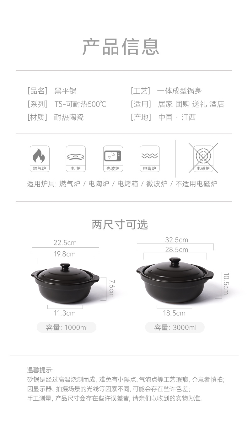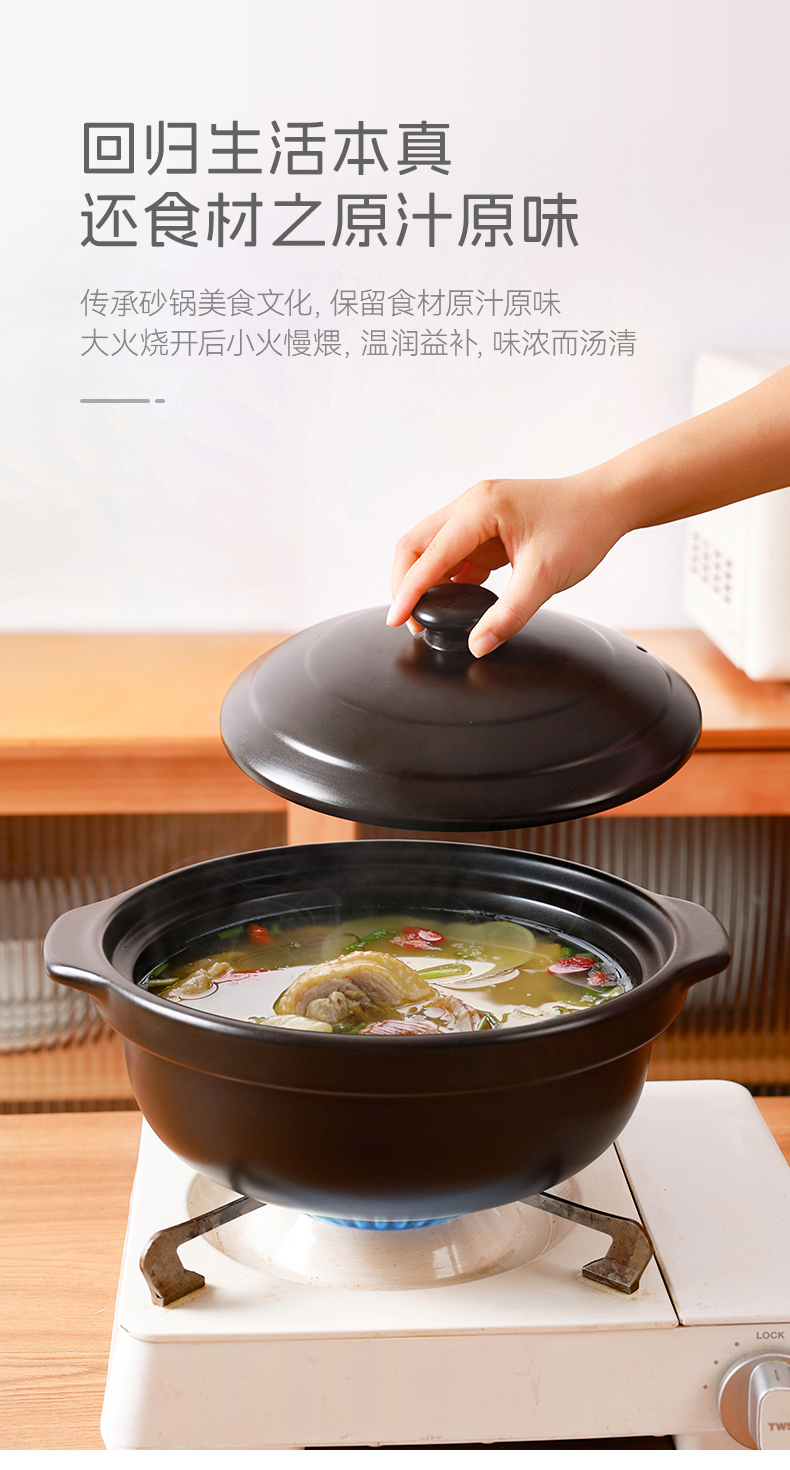 【陶煲王黑平锅】可干烧平锅陶瓷家庭汤锅砂锅煲汤明火燃气灶宽口炖汤瓦煲黄焖鸡