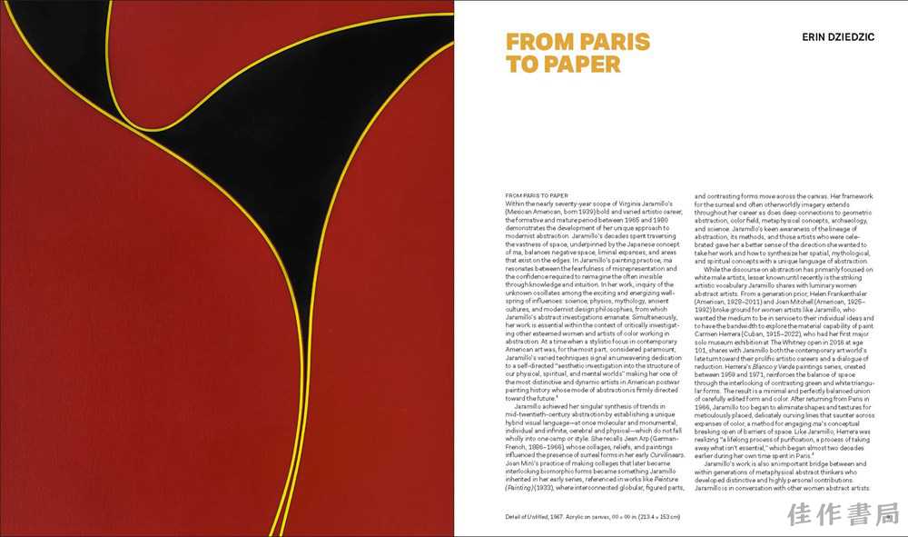 在其职业生涯中,弗吉尼亚·哈拉米洛(1939年生)开辟了一条通过抽象绘画和手工纸艺作品探索空间理念与概念的道路,这些作品深受她广泛兴趣的影响,包括物理学、宇宙学、神话学、古代文化以及现代主义设计理念。这本精美的画册证明,尽管哈拉米洛在历史上被排除在美国抽象艺术的主流之外,但她仍对这一领域做出了深远贡献。