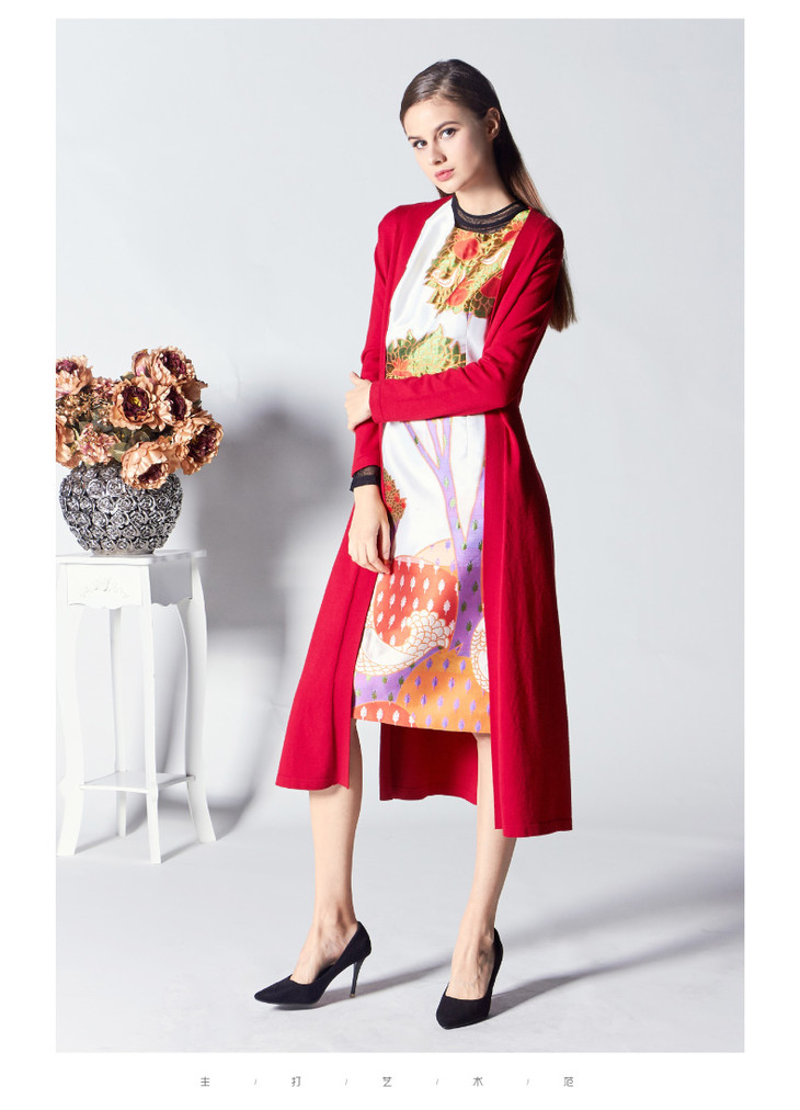 1E6812-红色绒毛衣女中长款开衫-太阳的圣树--《智慧之光--波斯艺术》