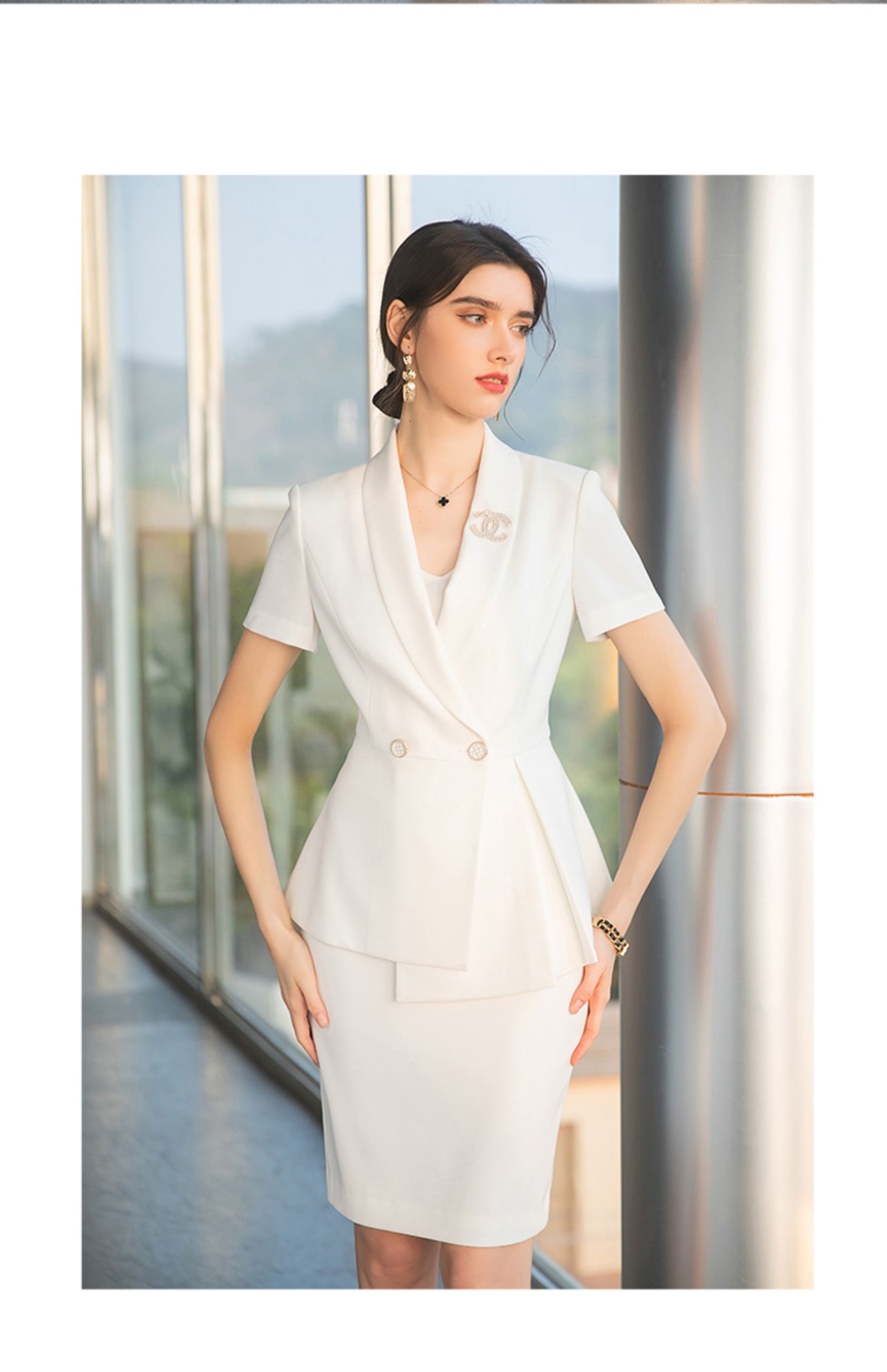 AD收腰显瘦短袖西装套装女主持人正装高级感职业装气质女神范工装