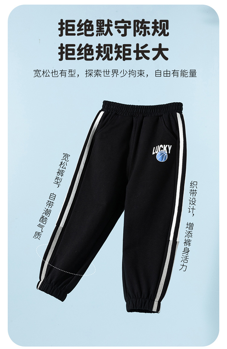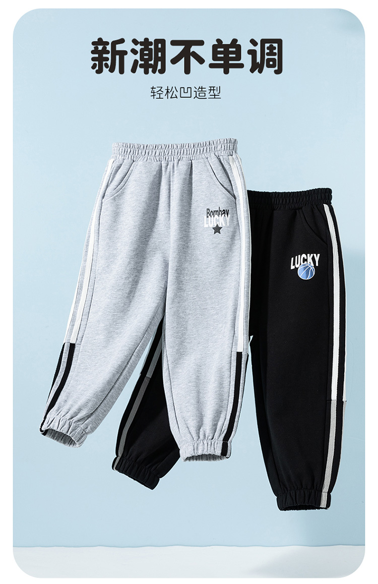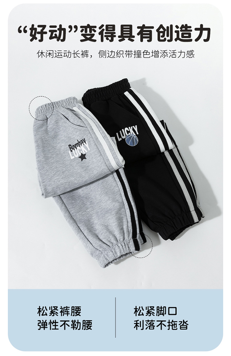 【撞色侧边条卫裤】25春季男童休闲长裤中大童百搭时尚运动裤子