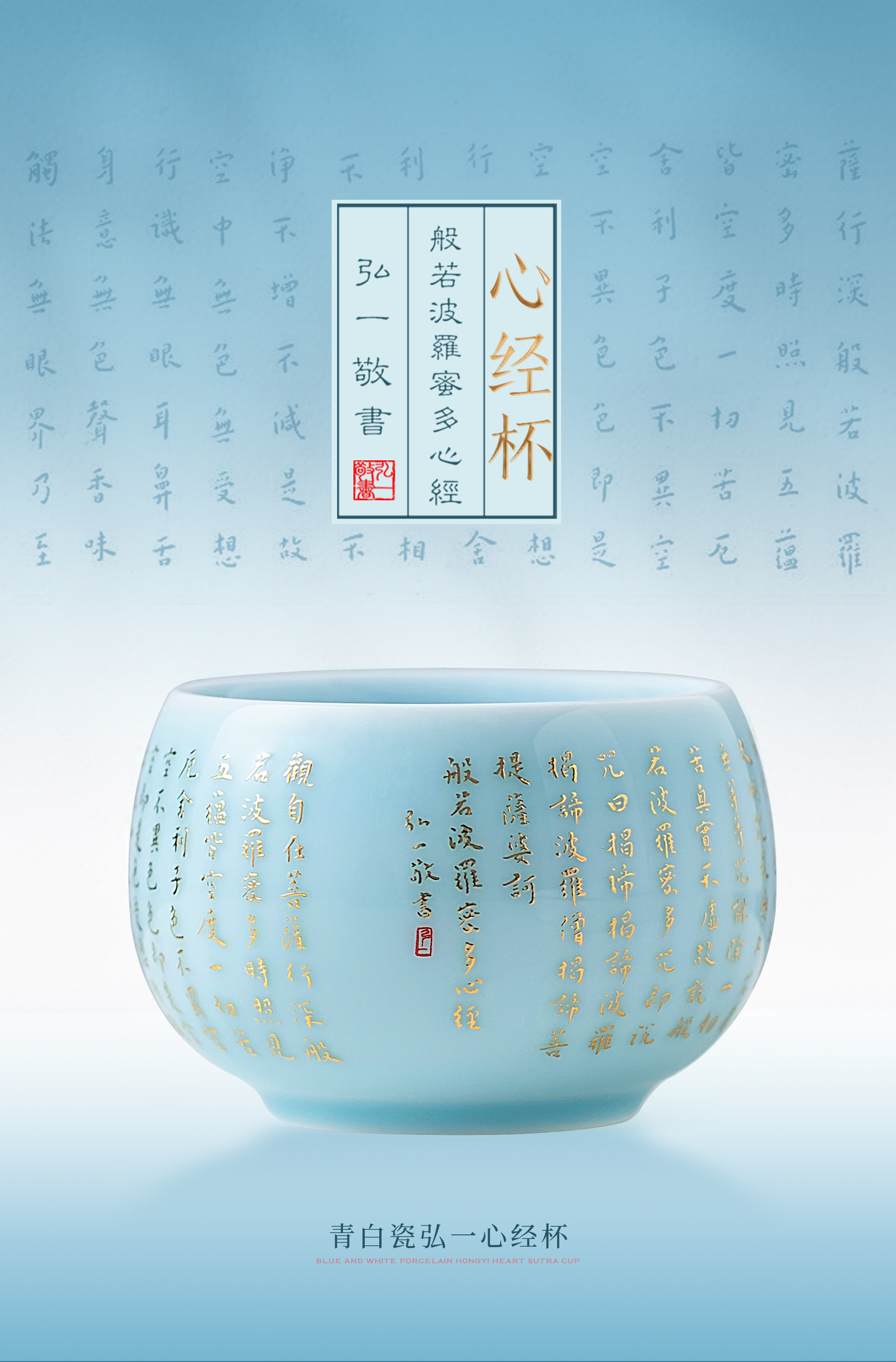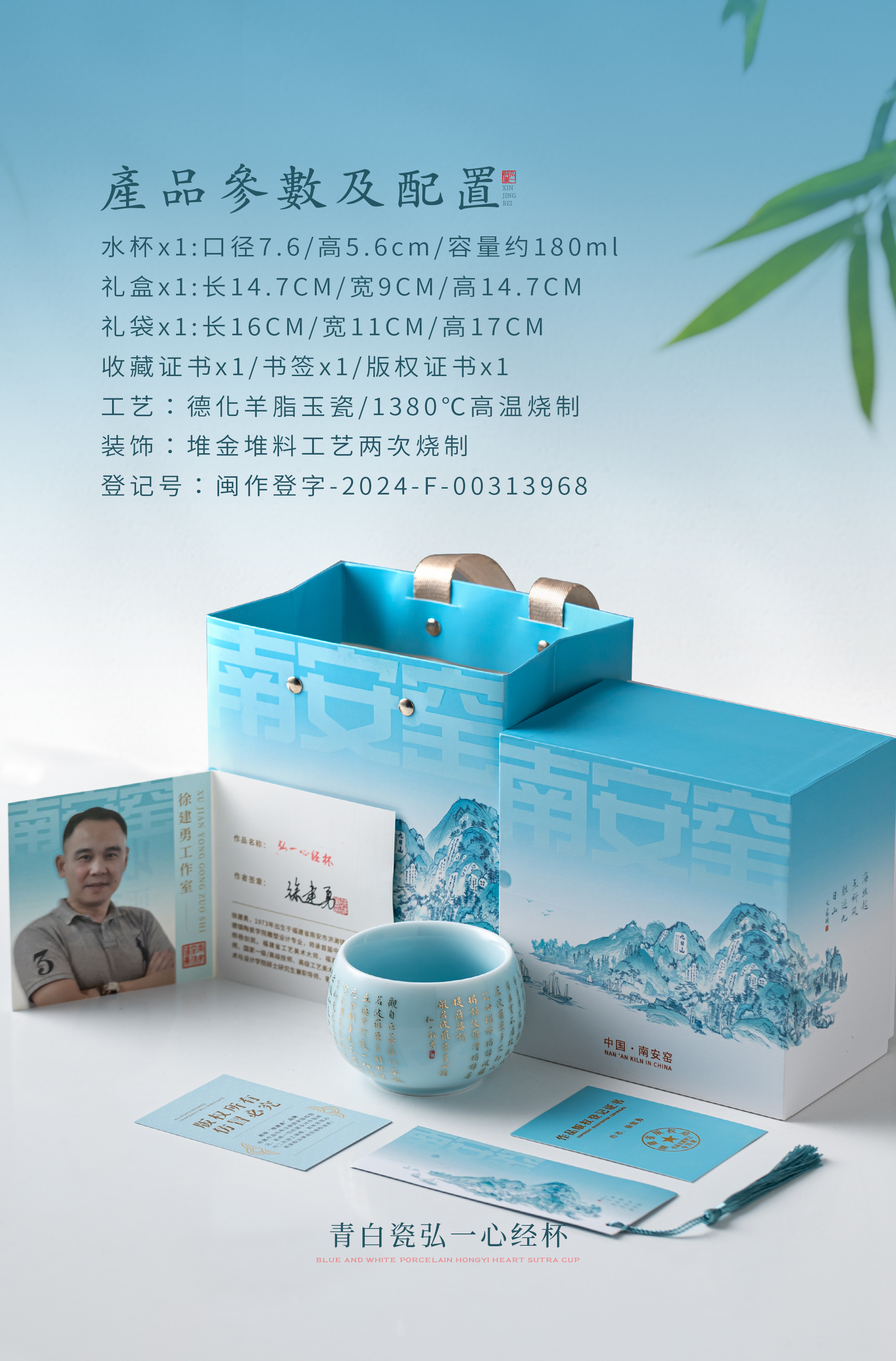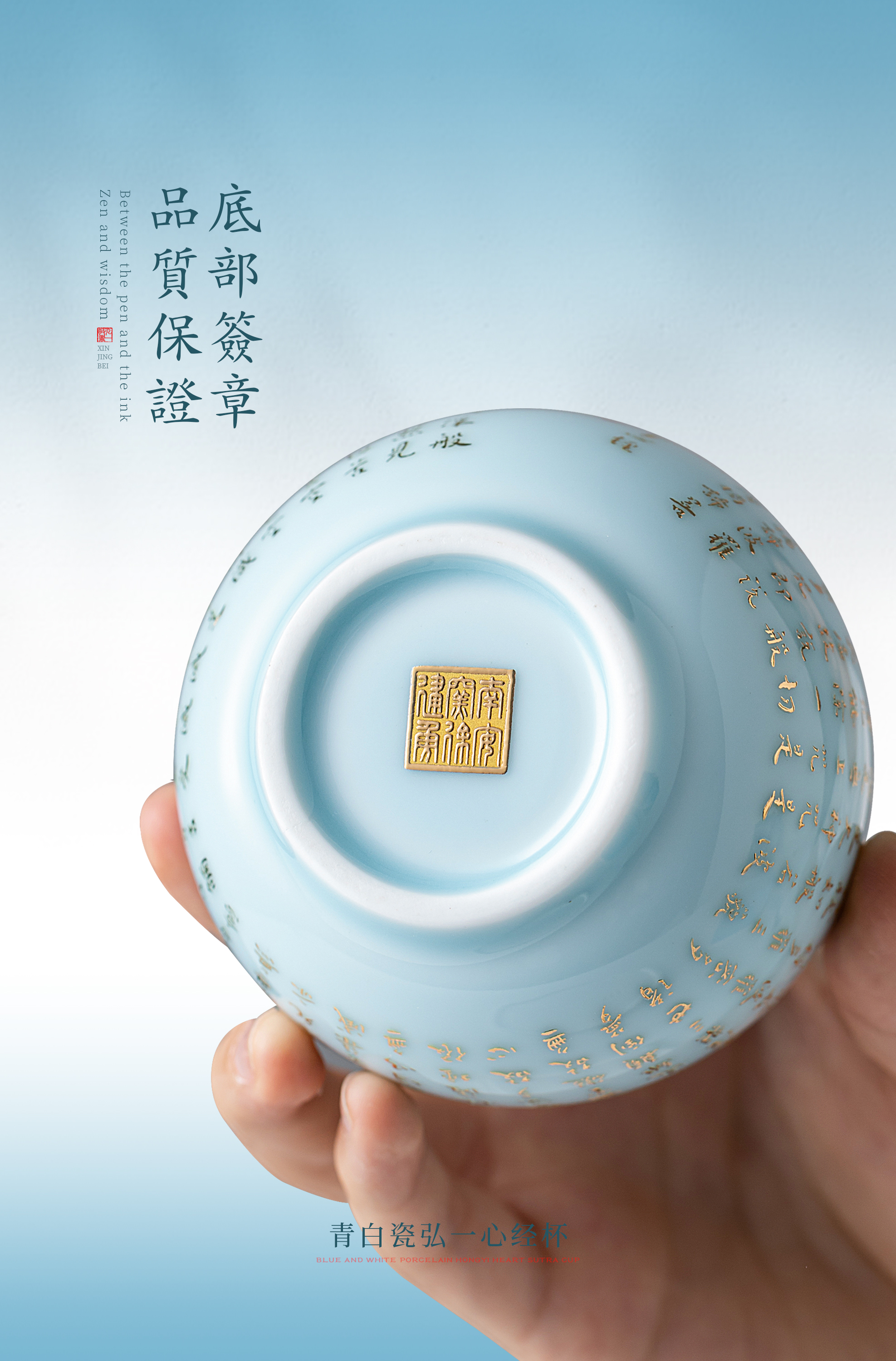 【弘一心经入杯盏,道尽禅机揽福气】青白瓷弘一心经杯 徐建勇大师签章,堆金工艺 触感立体 迎光透亮,精美包装 gao端豪礼