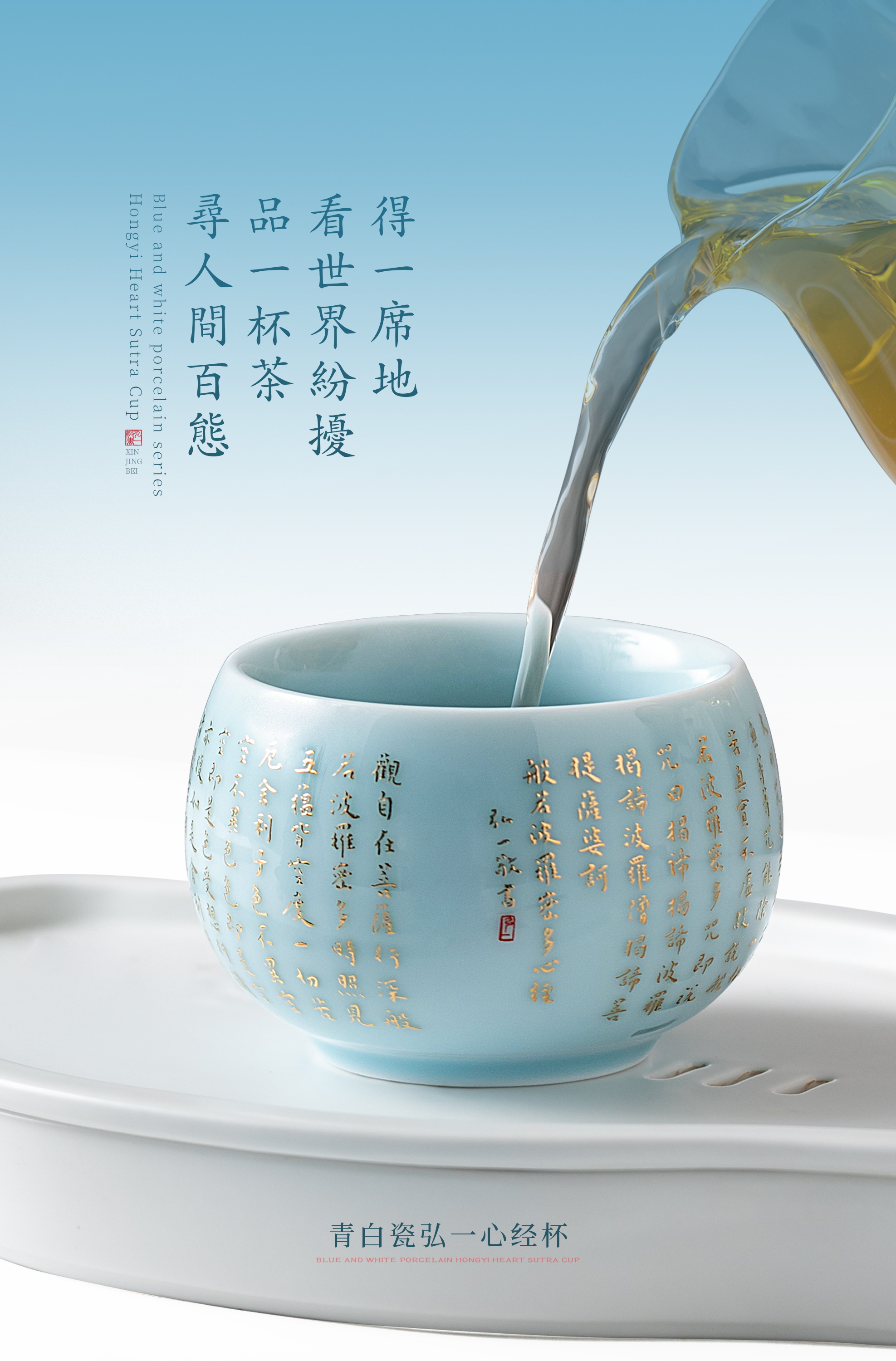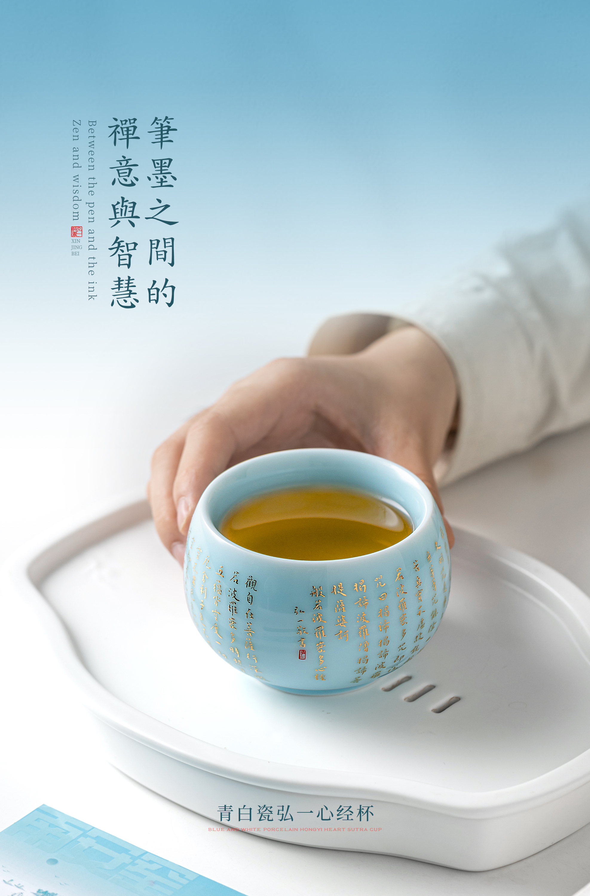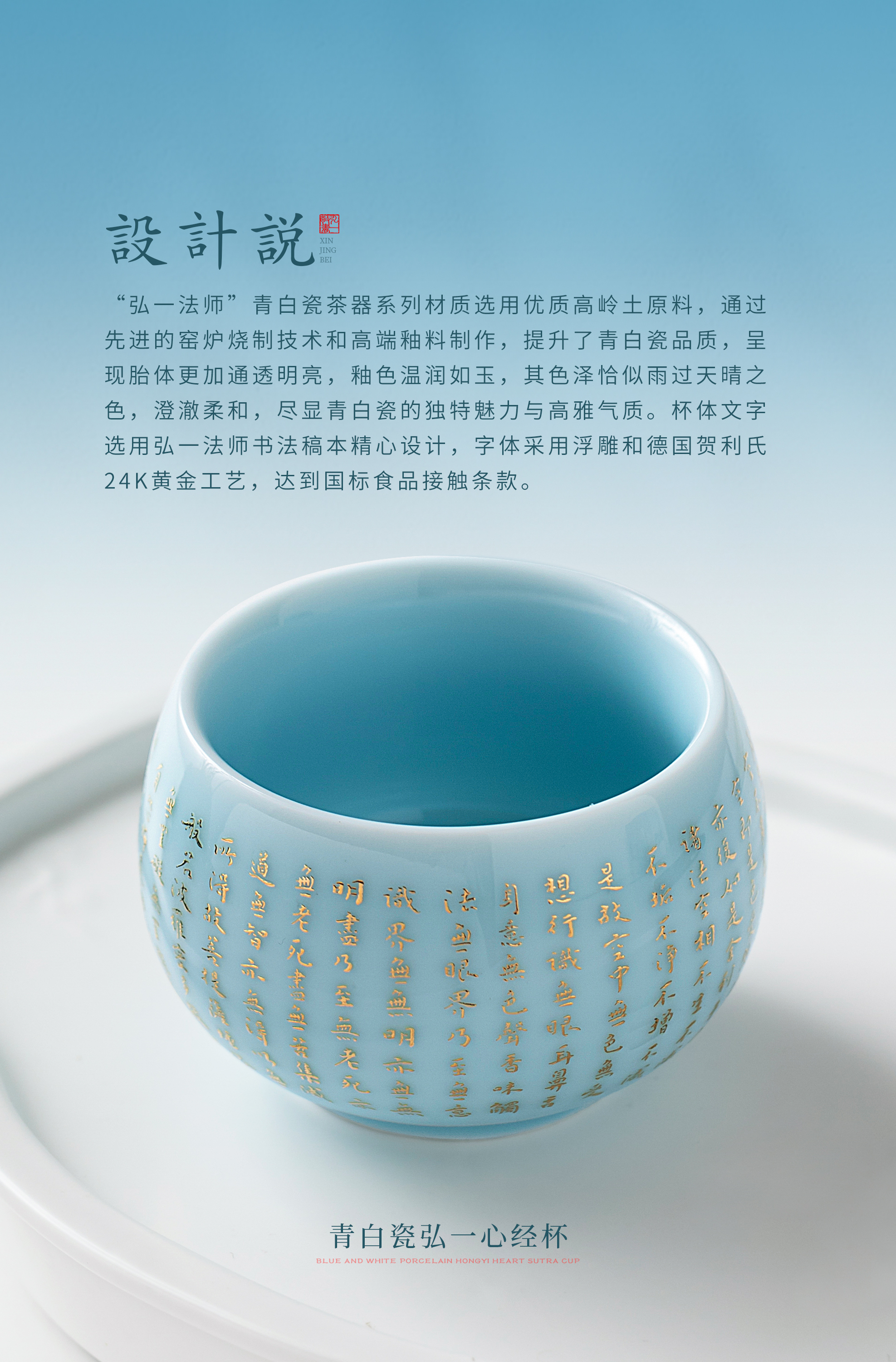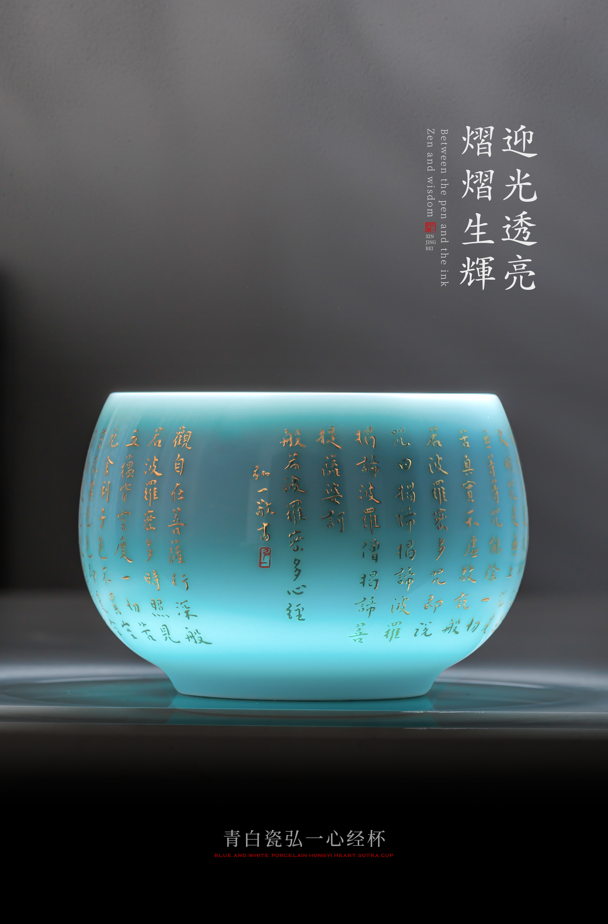 【弘一心经入杯盏,道尽禅机揽福气】青白瓷弘一心经杯 徐建勇大师签章,堆金工艺 触感立体 迎光透亮,精美包装 gao端豪礼