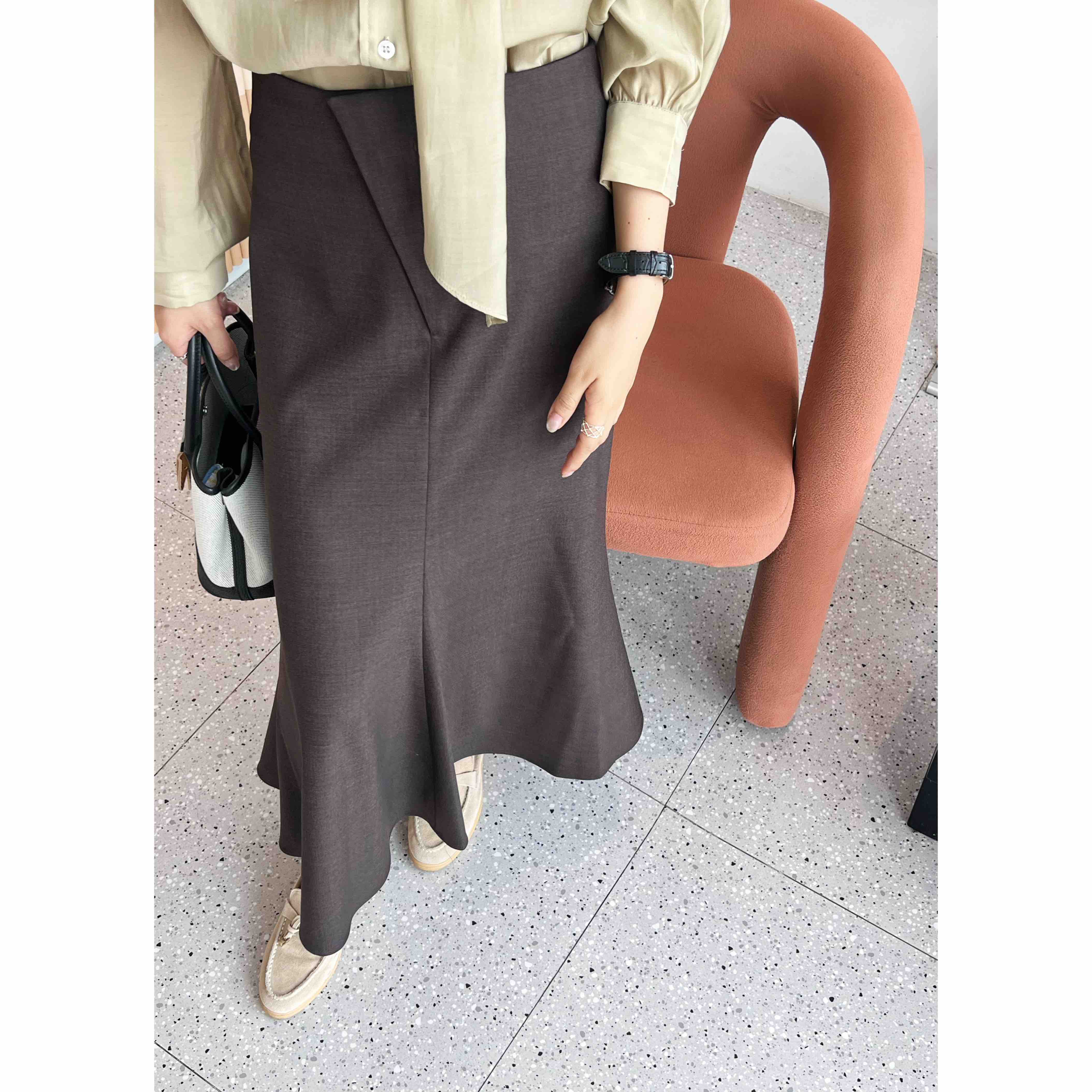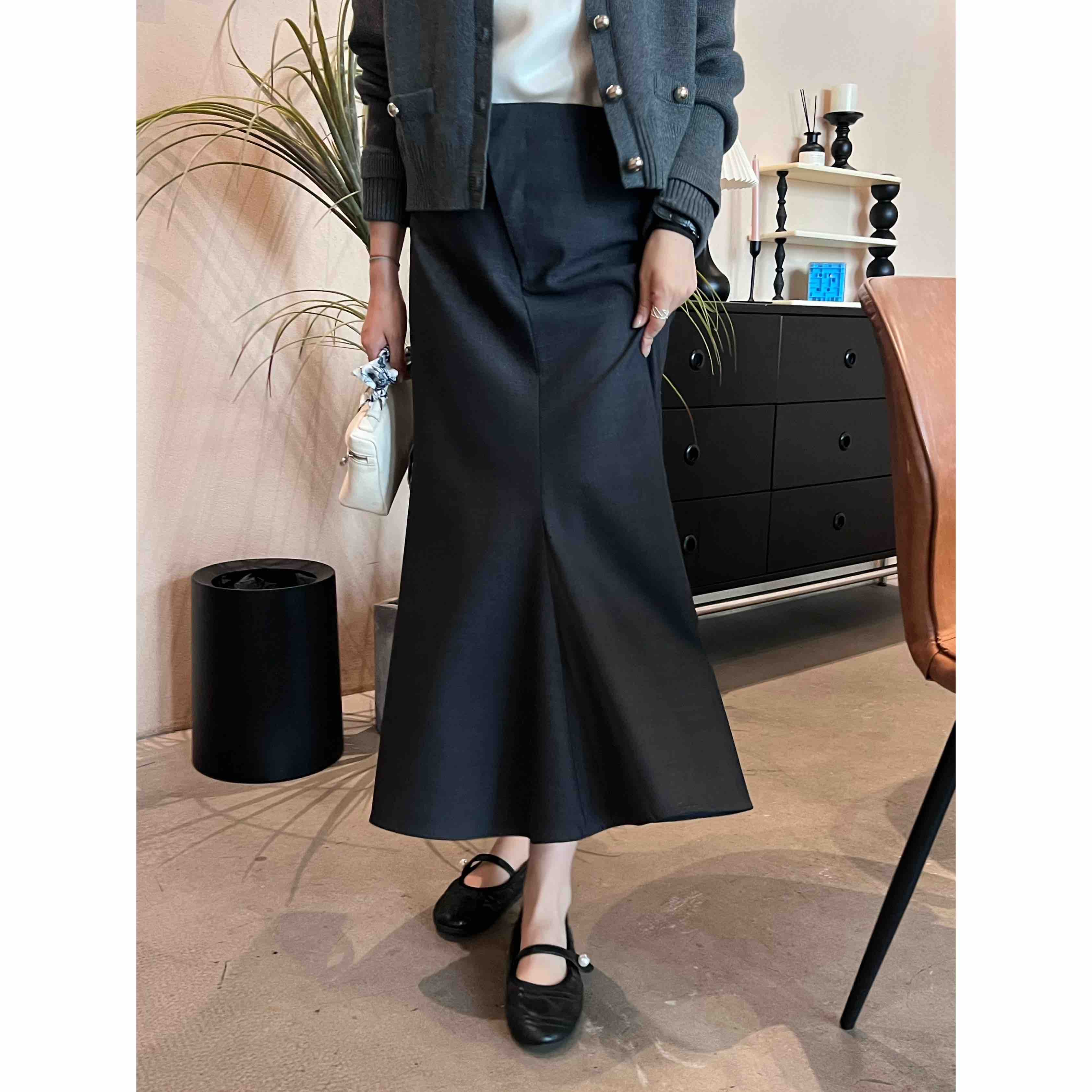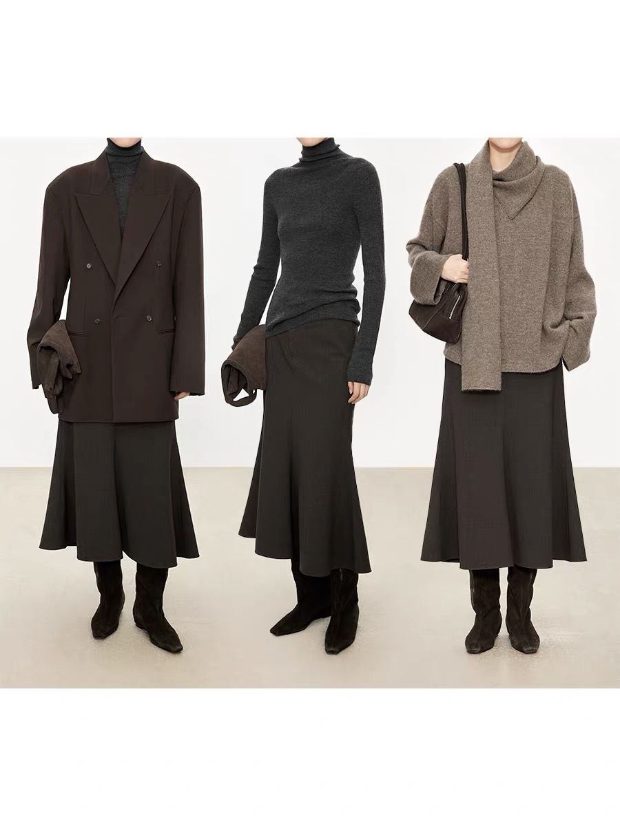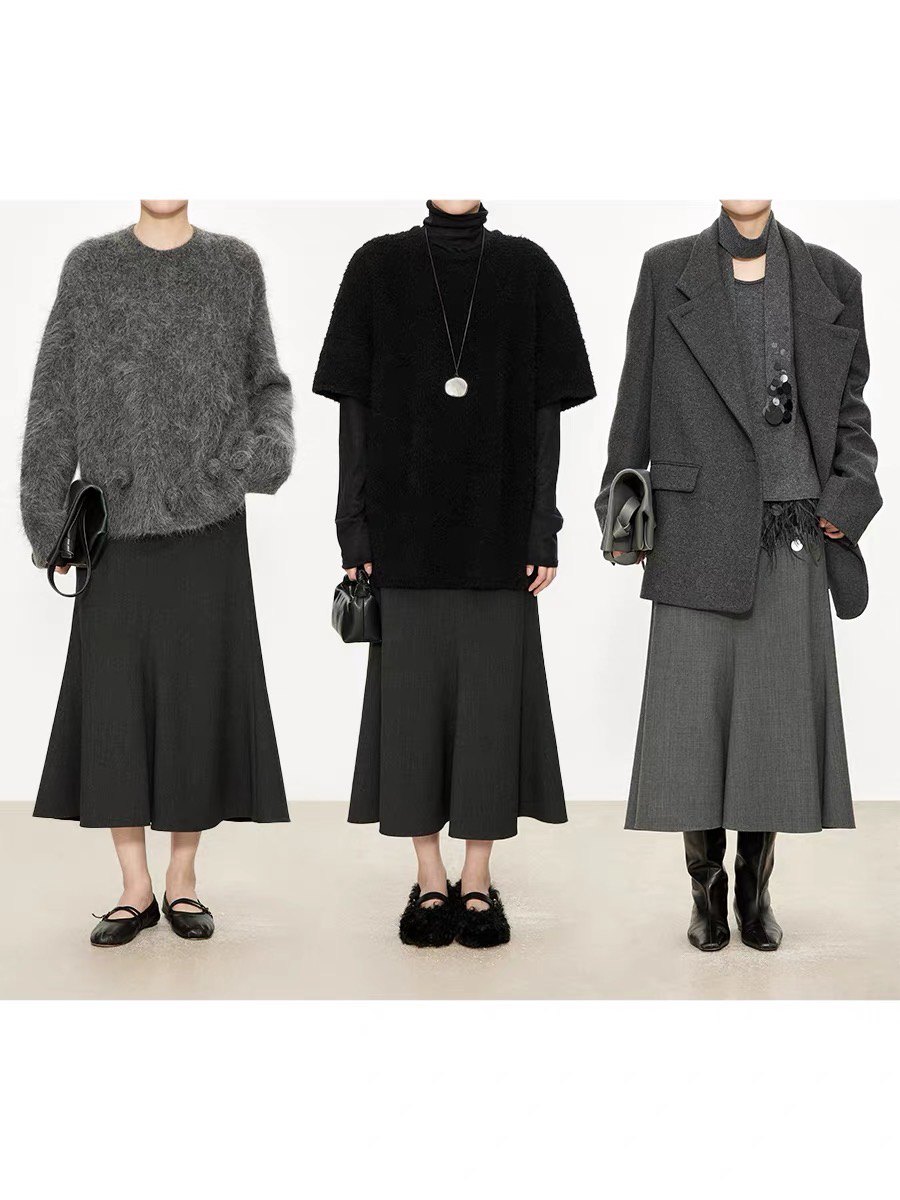 2509115 斜门襟鱼尾羊毛半裙