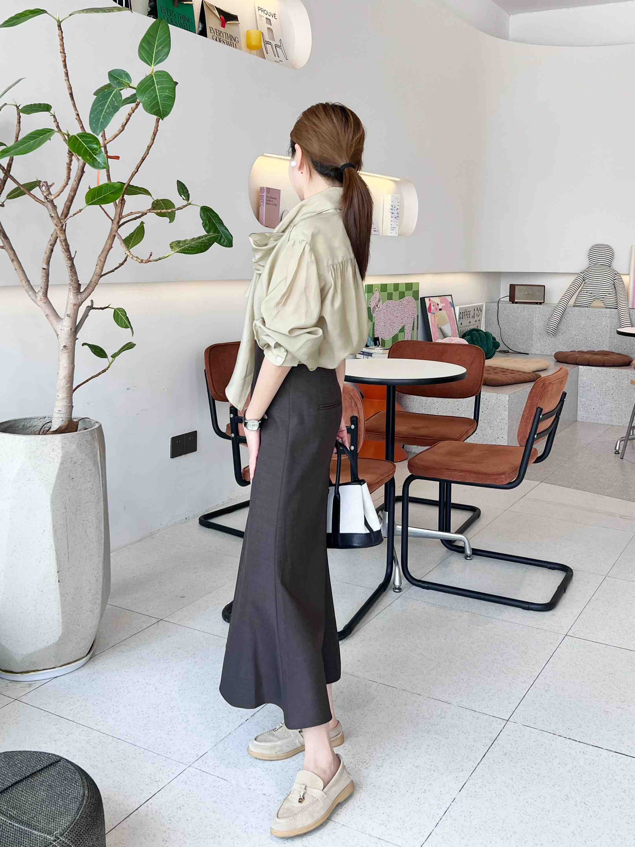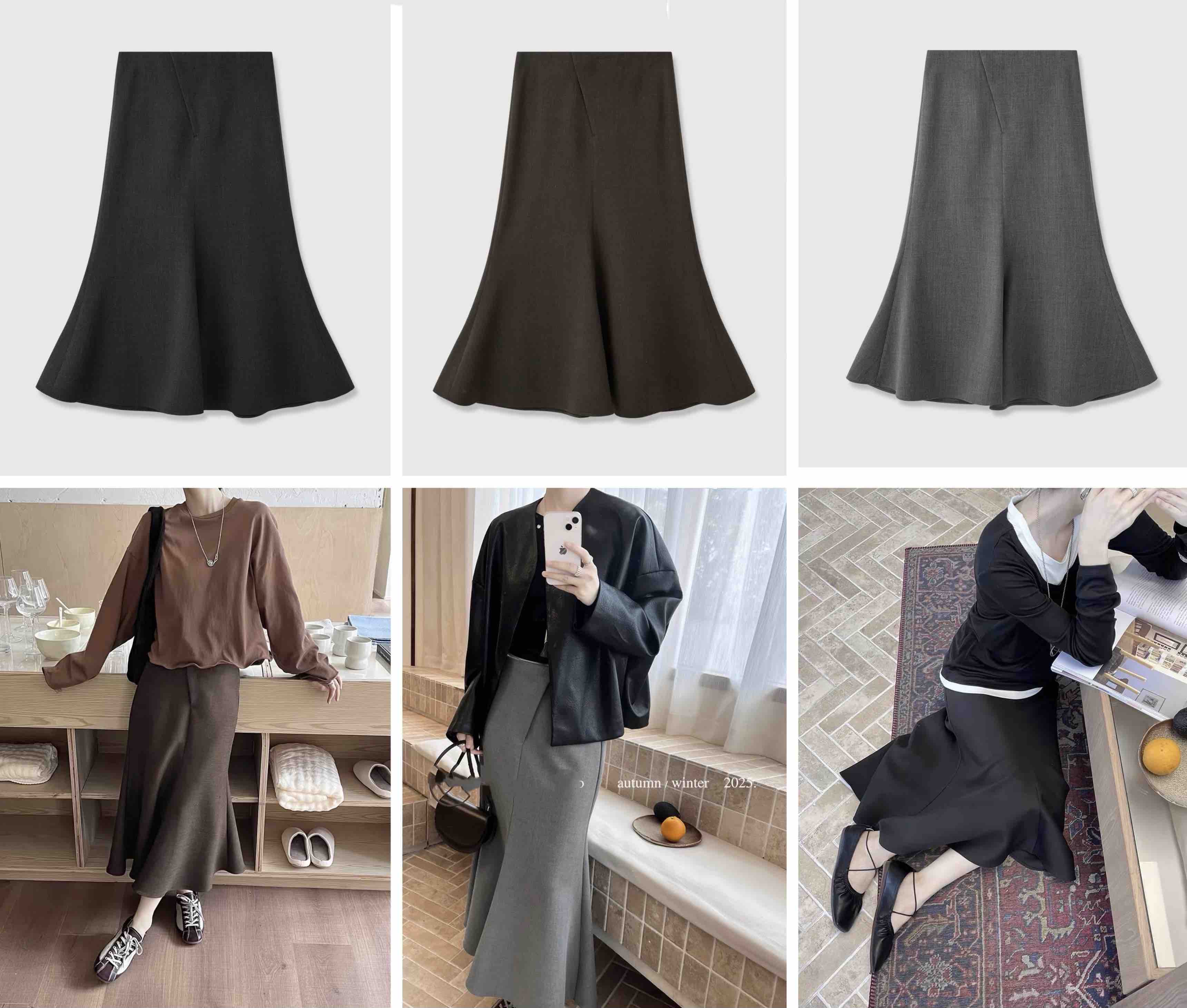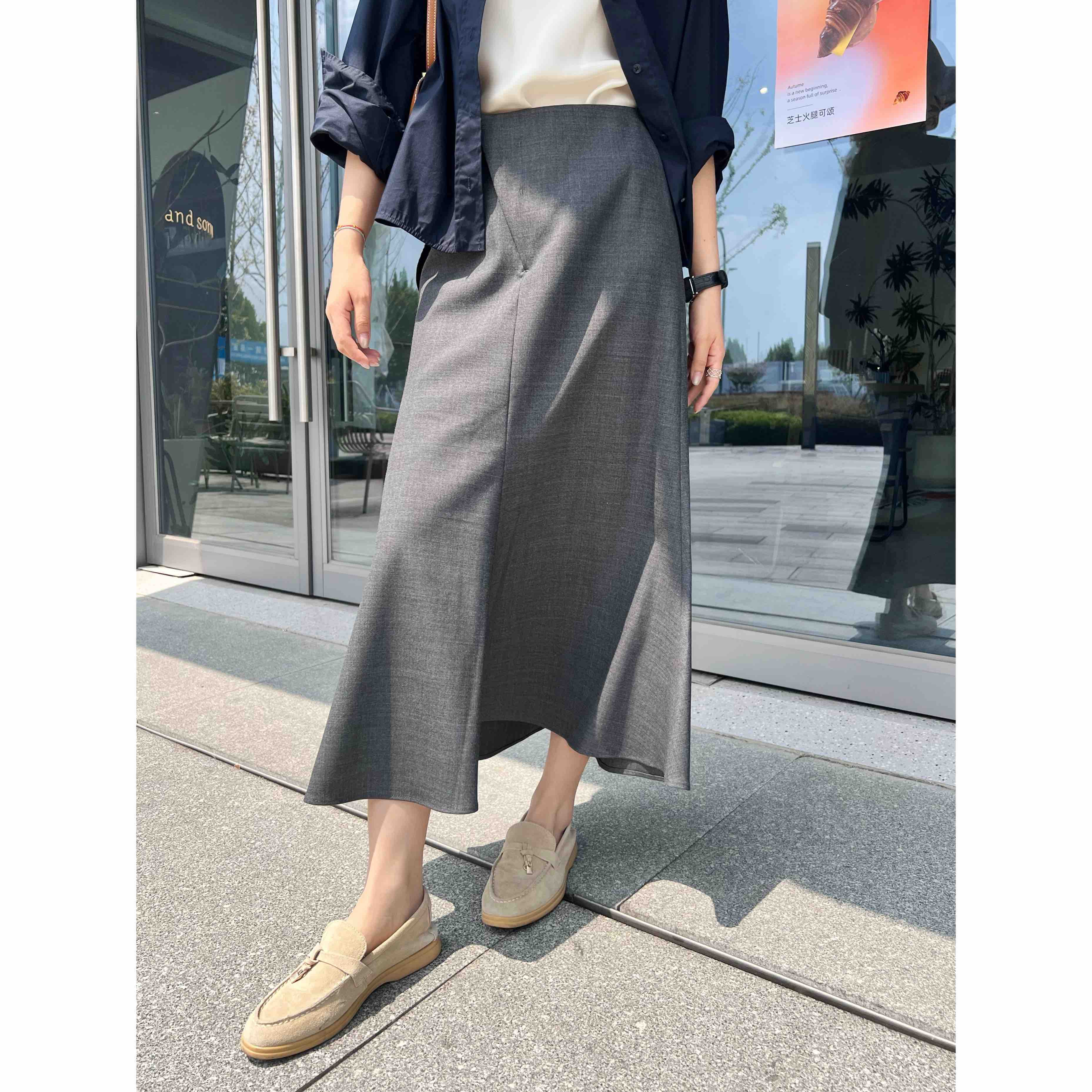 2509115 斜门襟鱼尾羊毛半裙