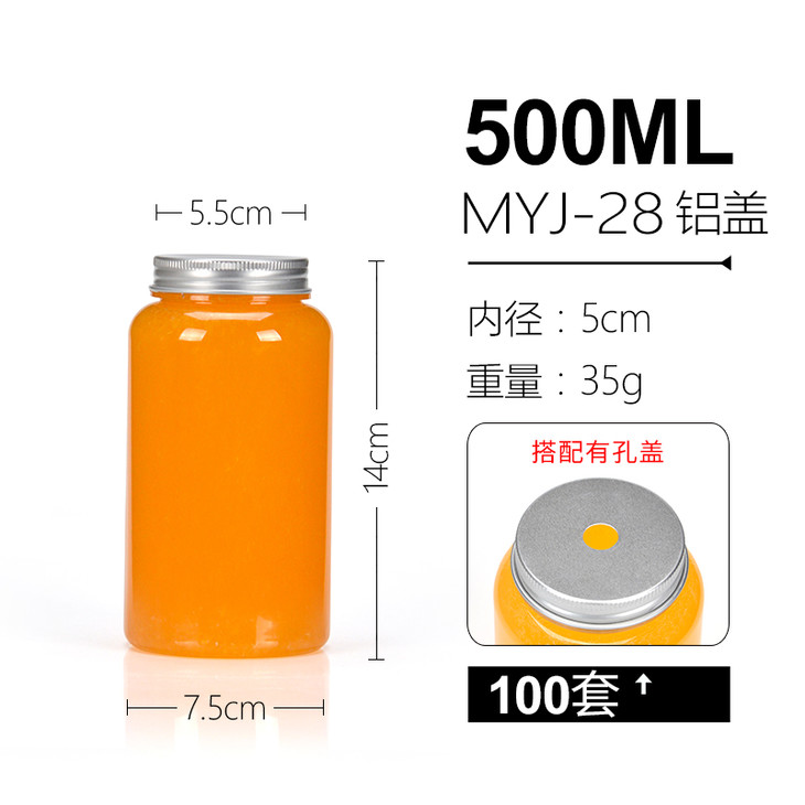 喇叭花一次性PET果汁瓶奶茶瓶塑料冷饮瓶酵素空瓶加厚带盖100个