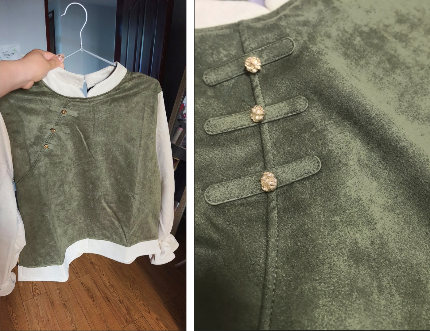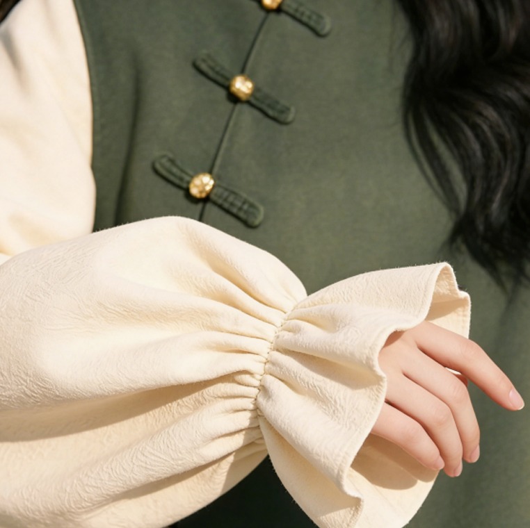 (预售7天发货)新中式假两件衬衣,韩系慵懒风+洋气绿色,时尚感瞬间拉满!