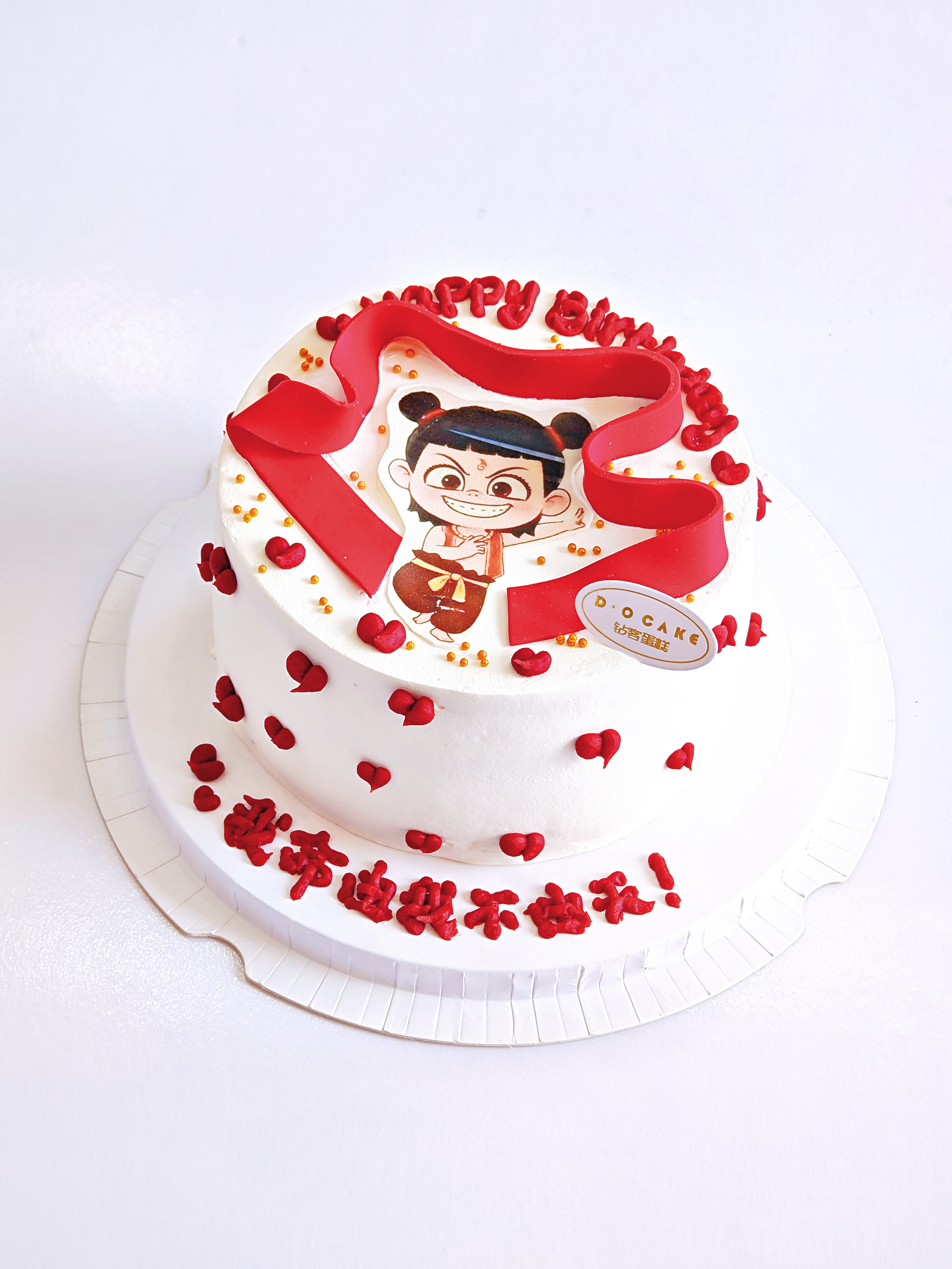 口味:新西兰动物奶油,新鲜水果夹心,哪吒糯米纸画面,混天绫是翻糖,夹心可选。