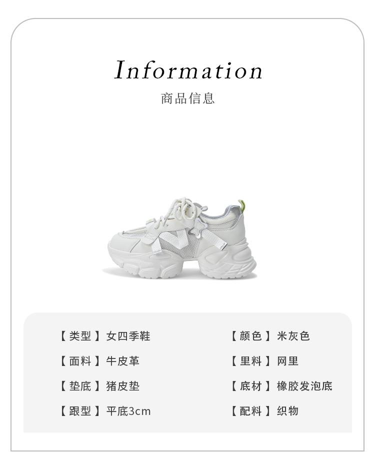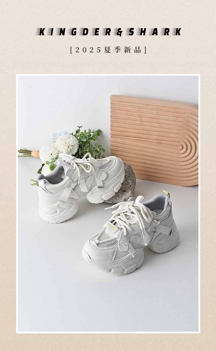 经典鲨2025夏季新品韩版时尚网状透气舒适潮酷系带显高老爹鞋女KW160-529171