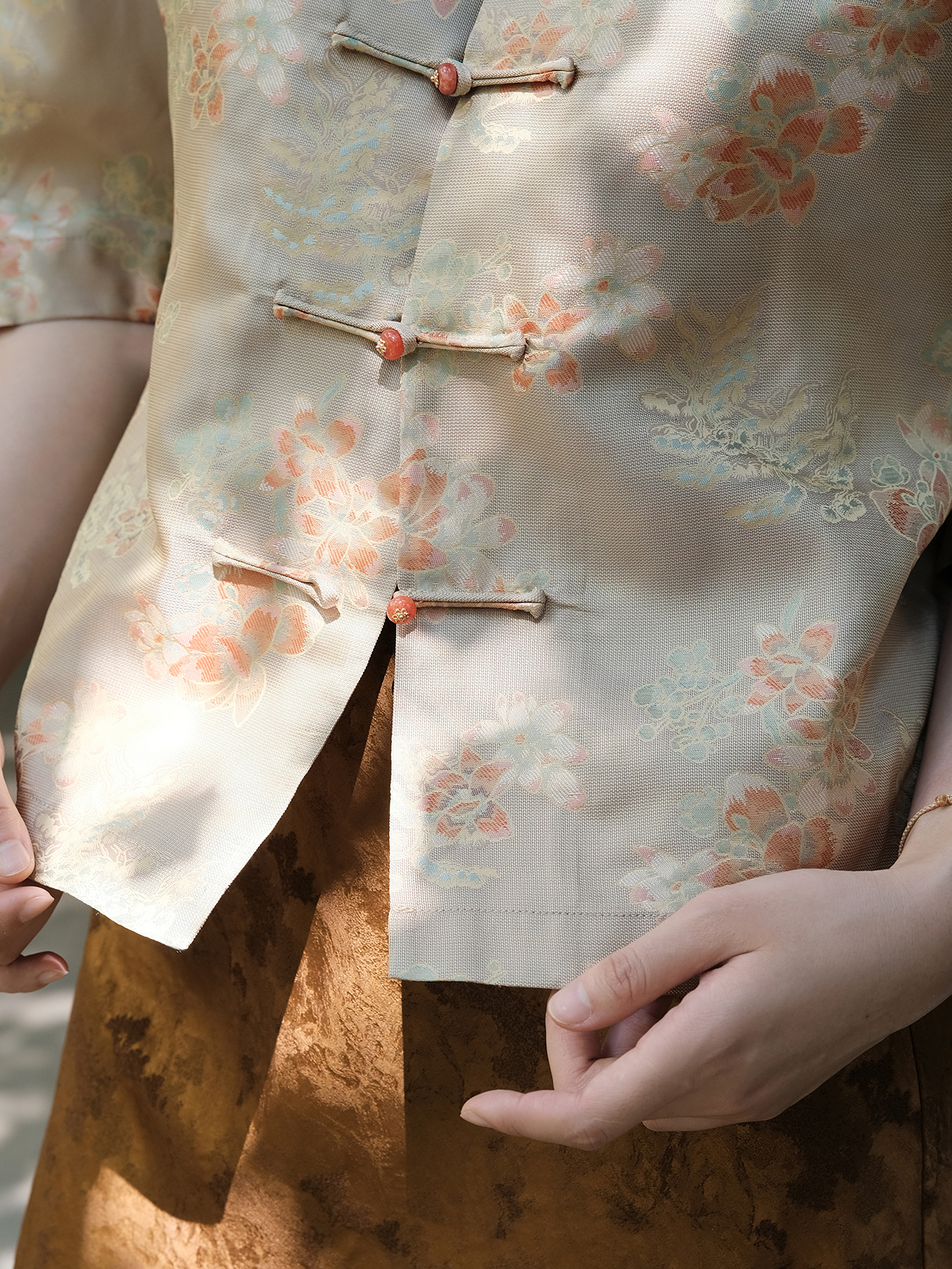 盛唐牡丹 |真丝提花立领马甲 (不夹棉)