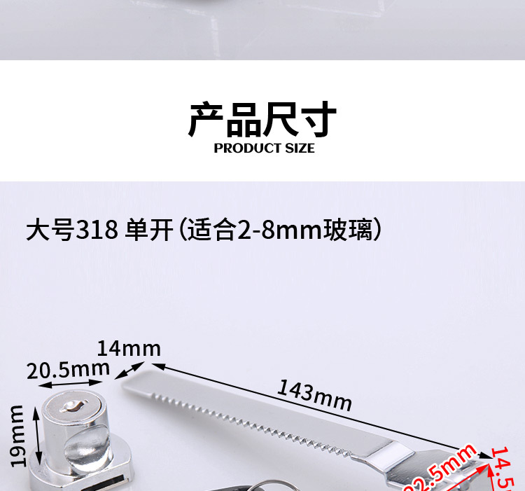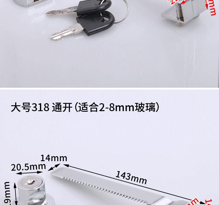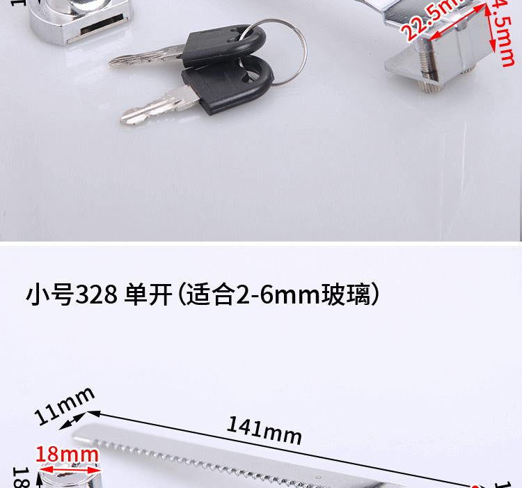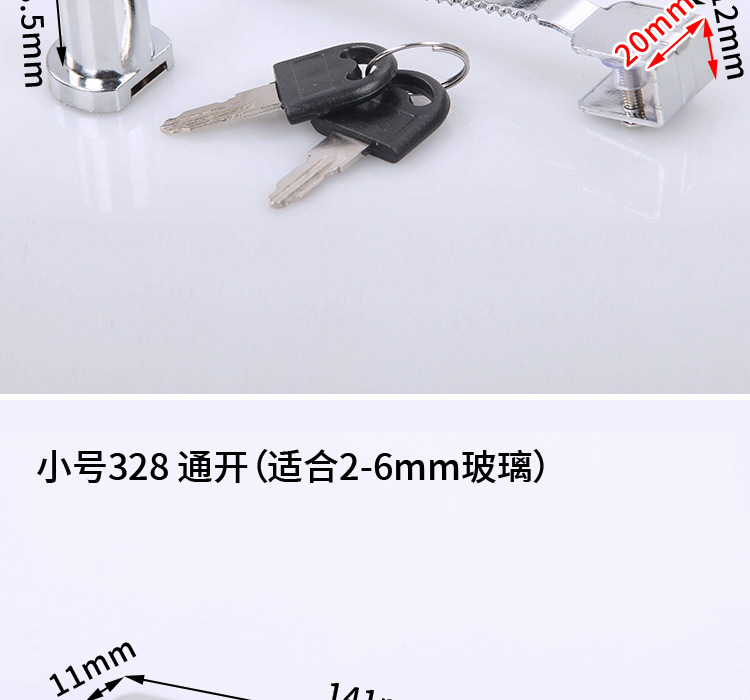 玻璃柜328玻璃锁 玻璃柜锁 展柜玻璃锁 玻璃移门锁 锯齿锁 1个