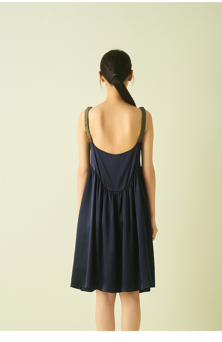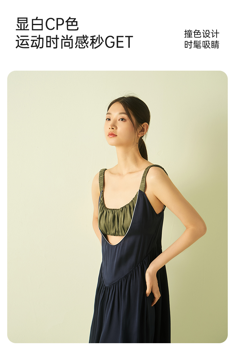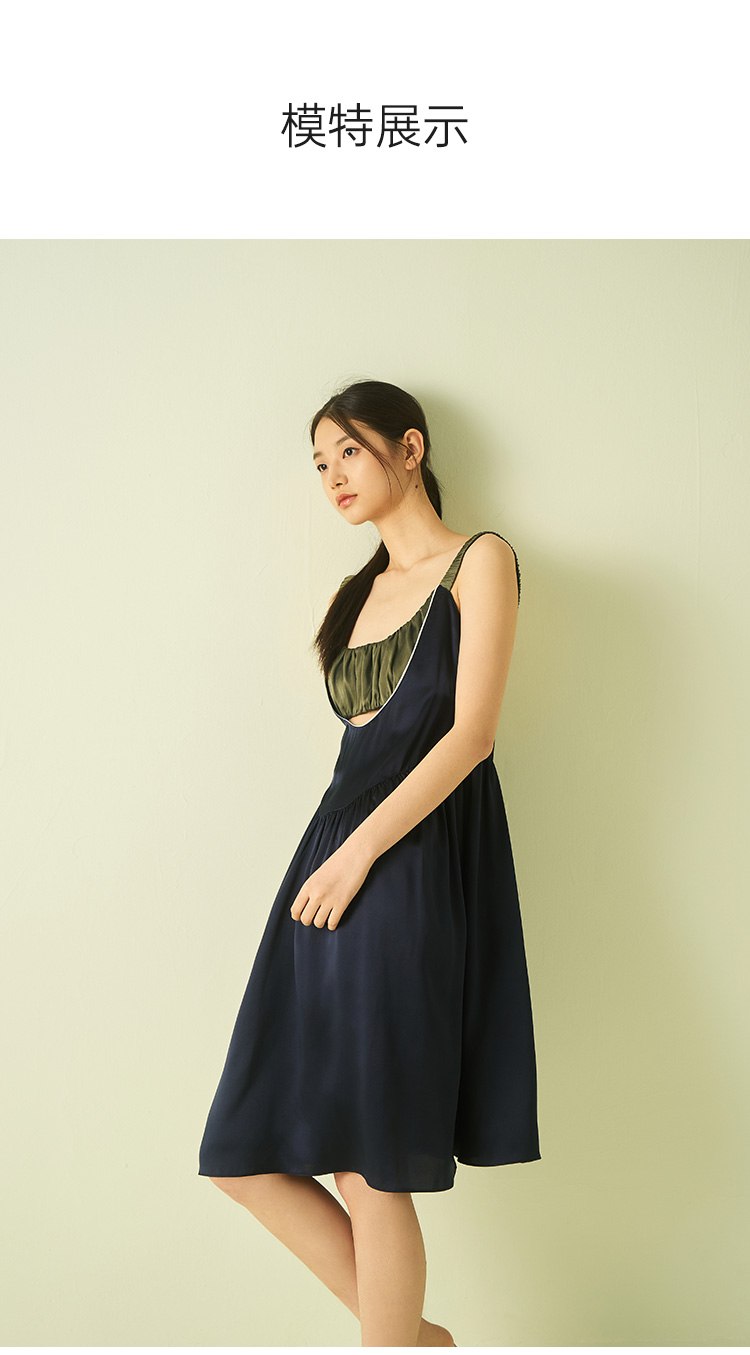 桑罗轻运动藏青色真丝吊带裙25年春夏新品可外穿假两件显瘦睡裙