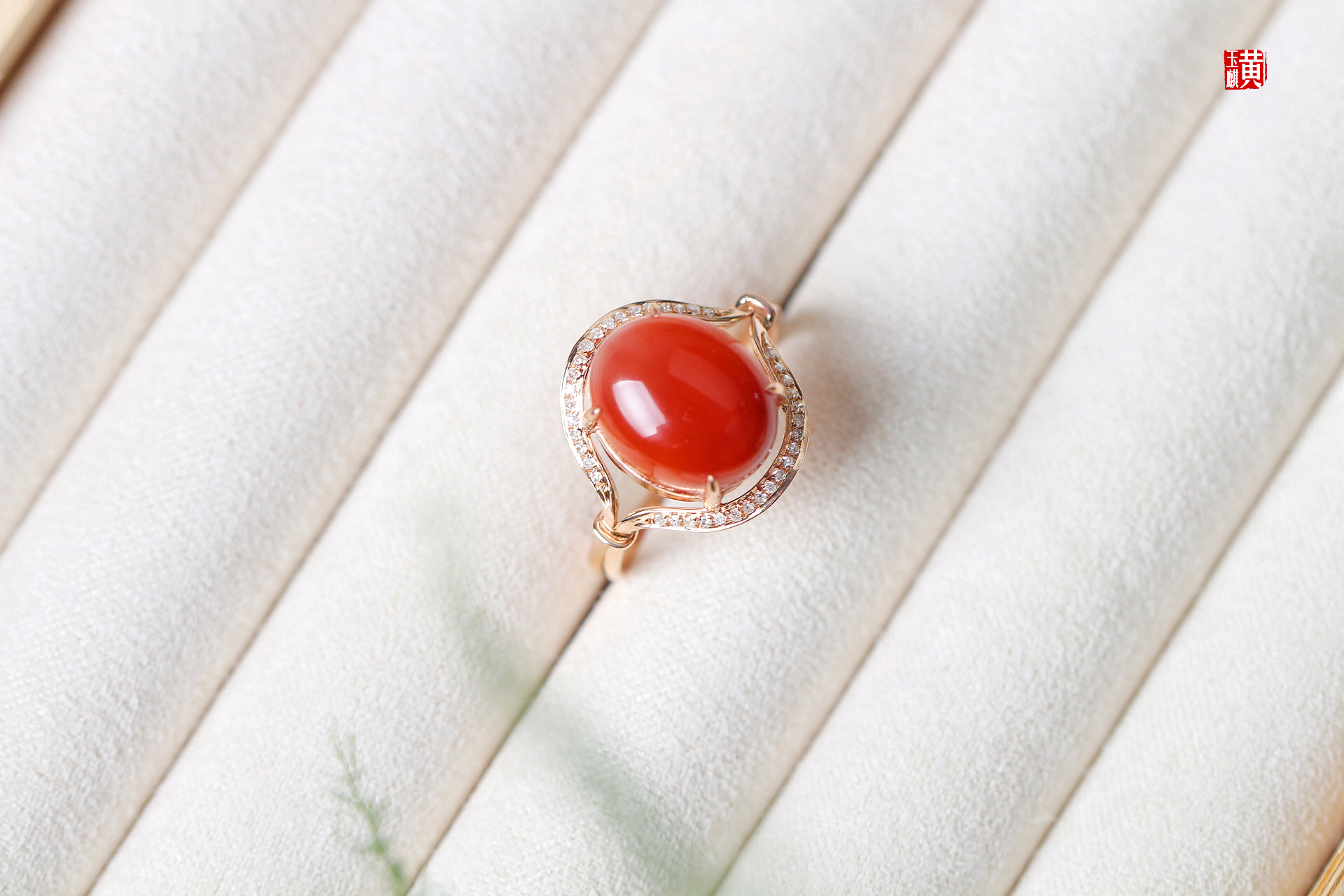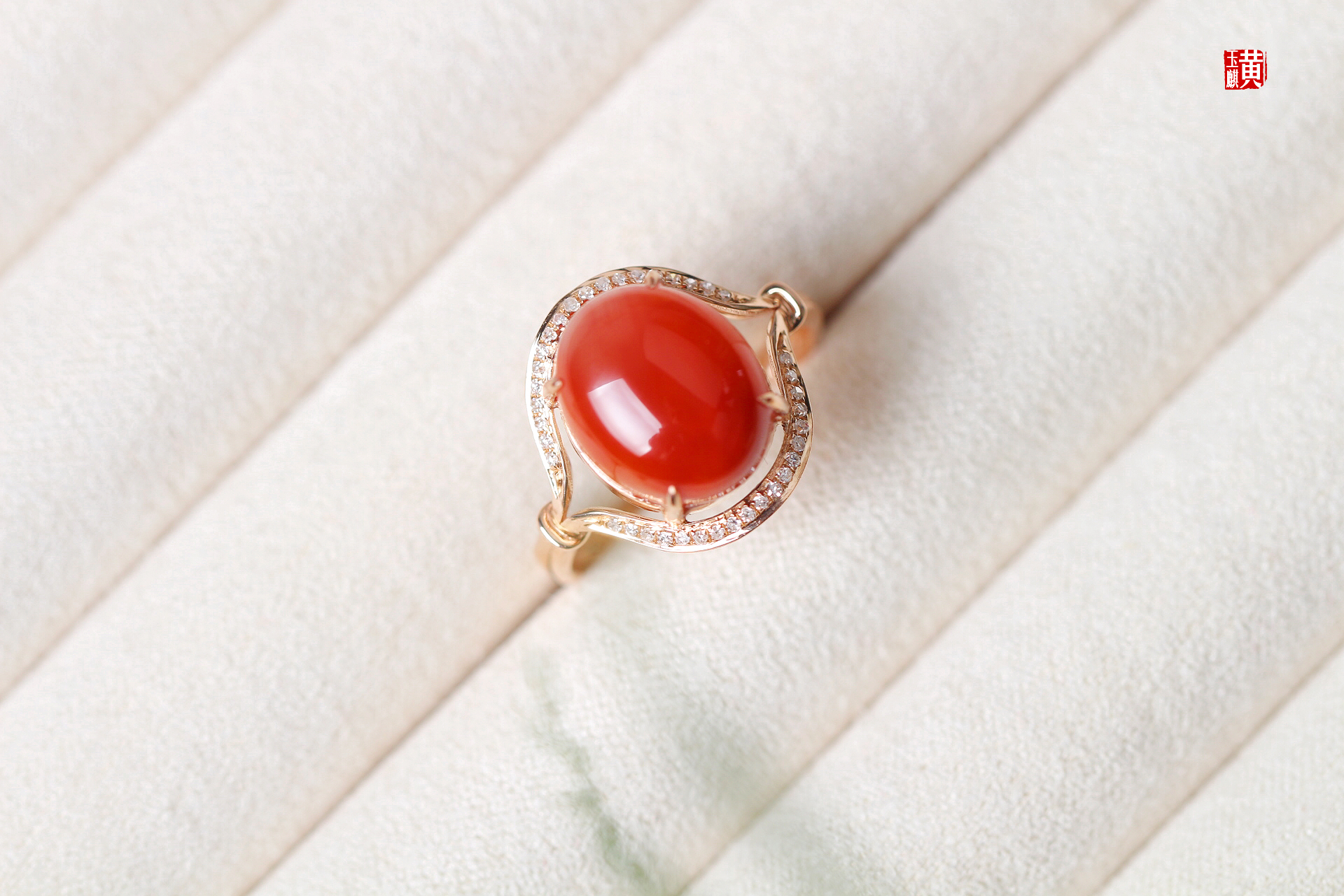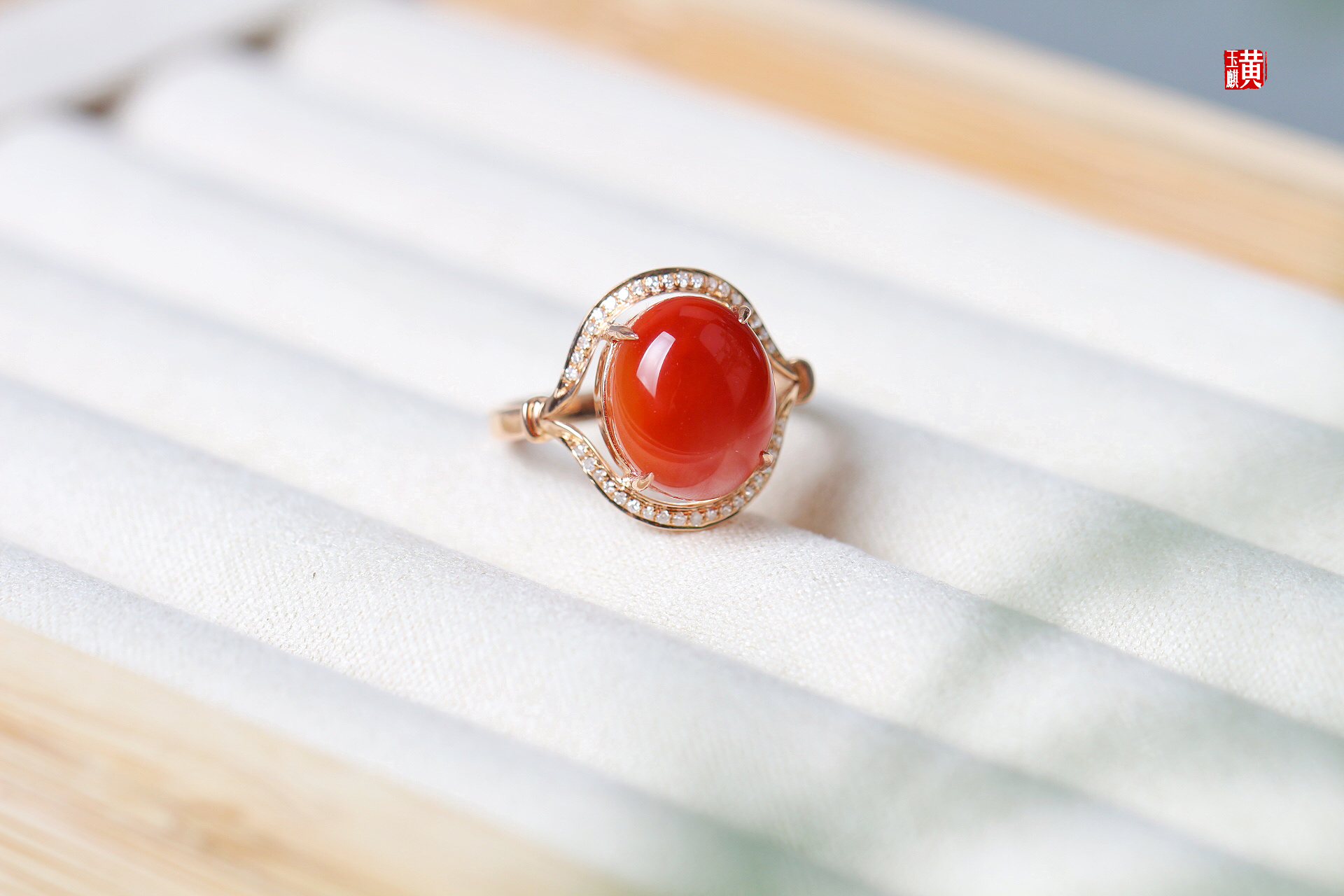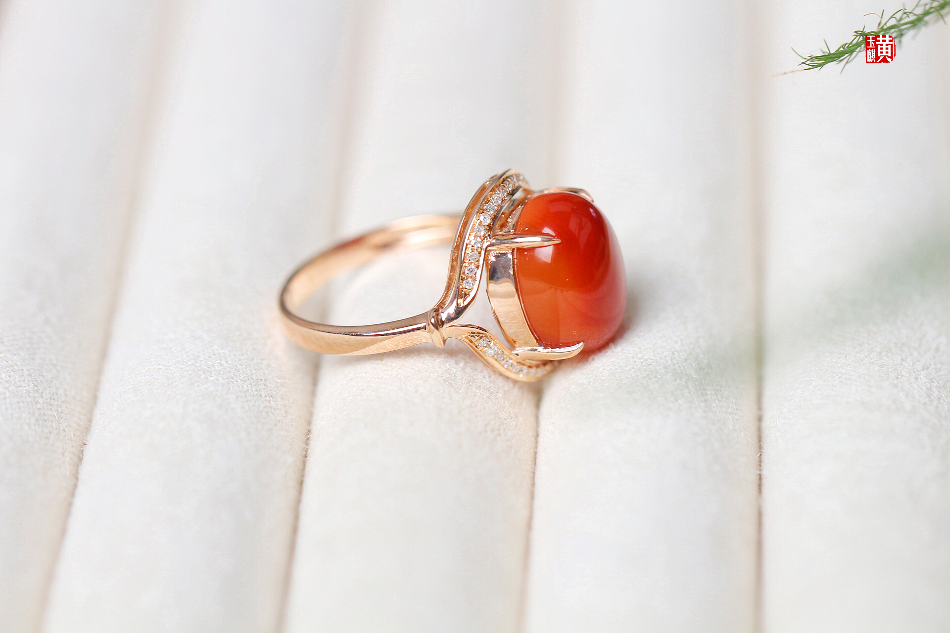【芸乐】南红戒指 镶嵌:18K 金镶钻