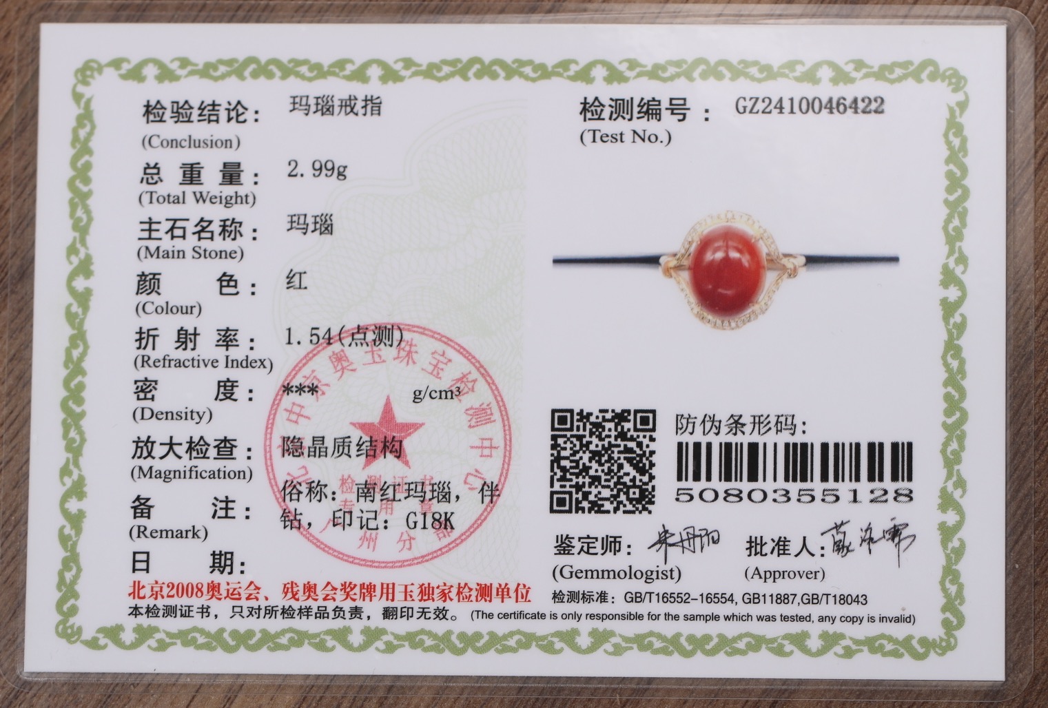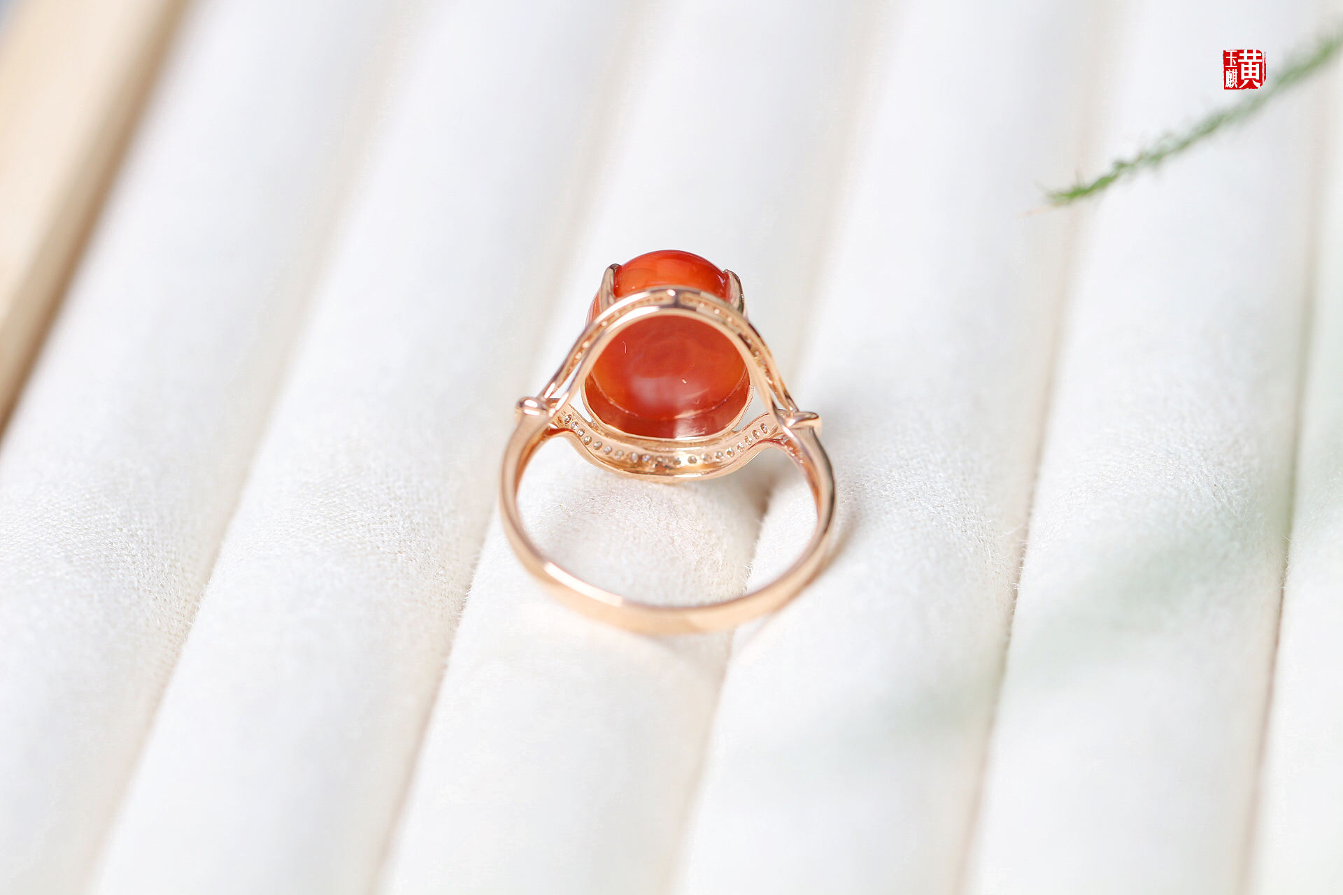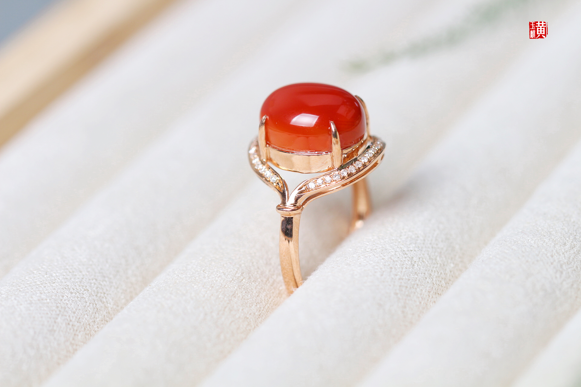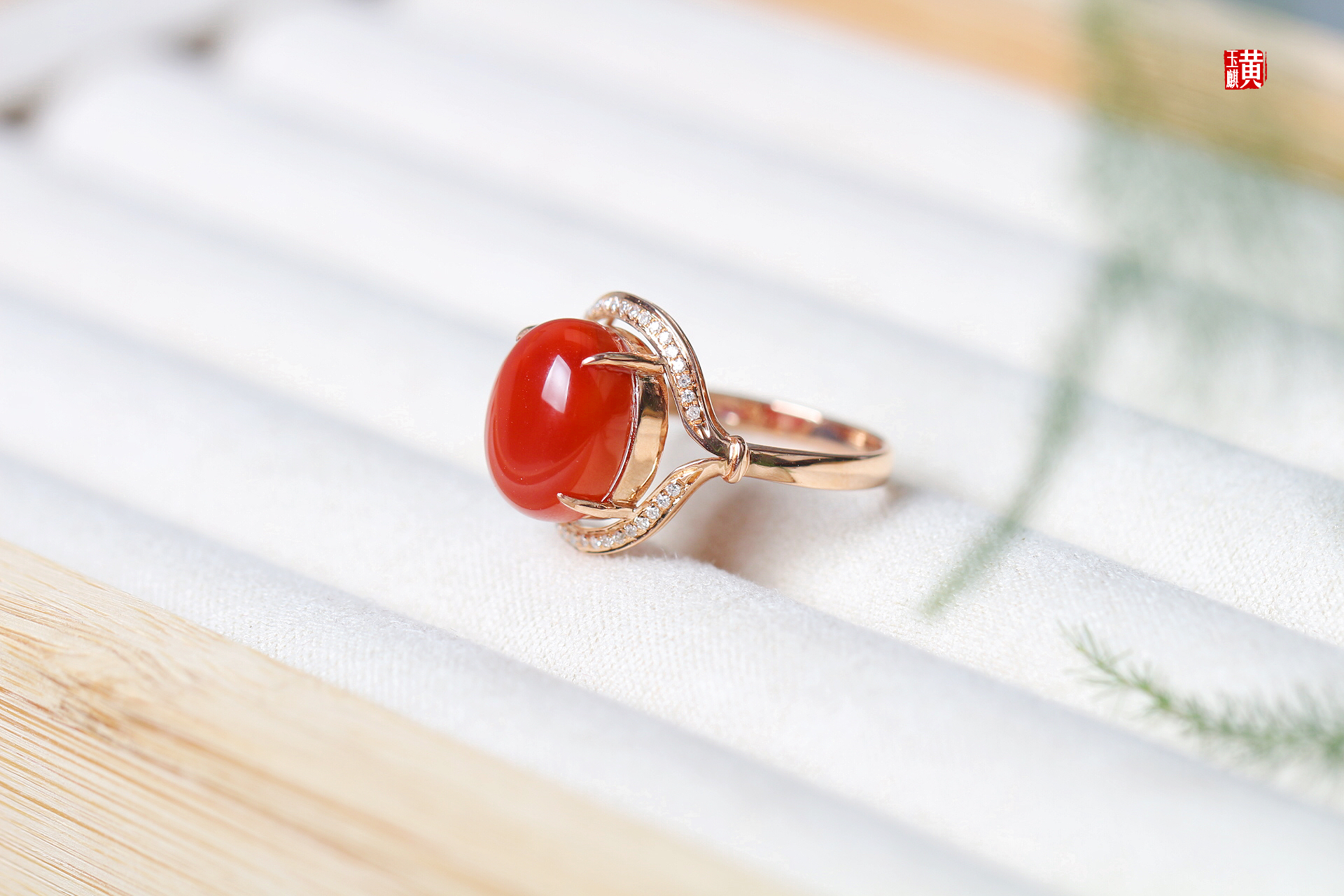【芸乐】南红戒指 镶嵌:18K 金镶钻