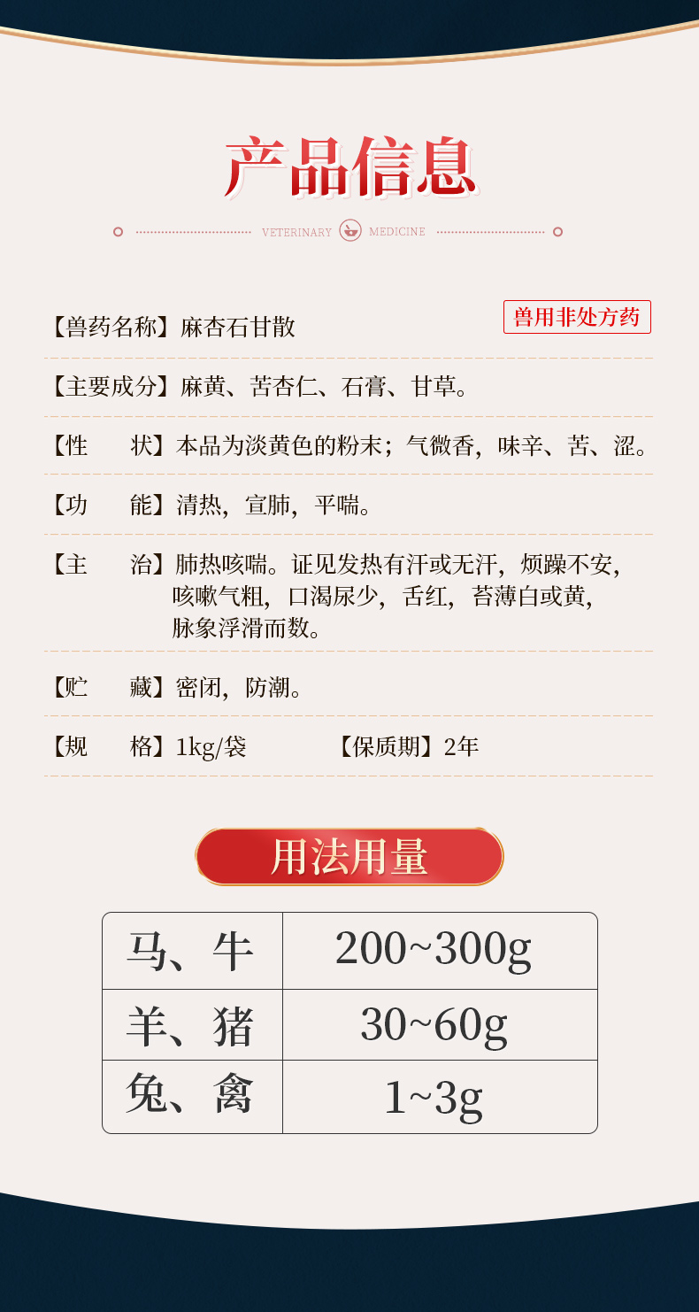 华畜麻杏石甘散兽用兽药猪药猪用牛羊鸡药肺炎咳喘清肺止咳呼吸道