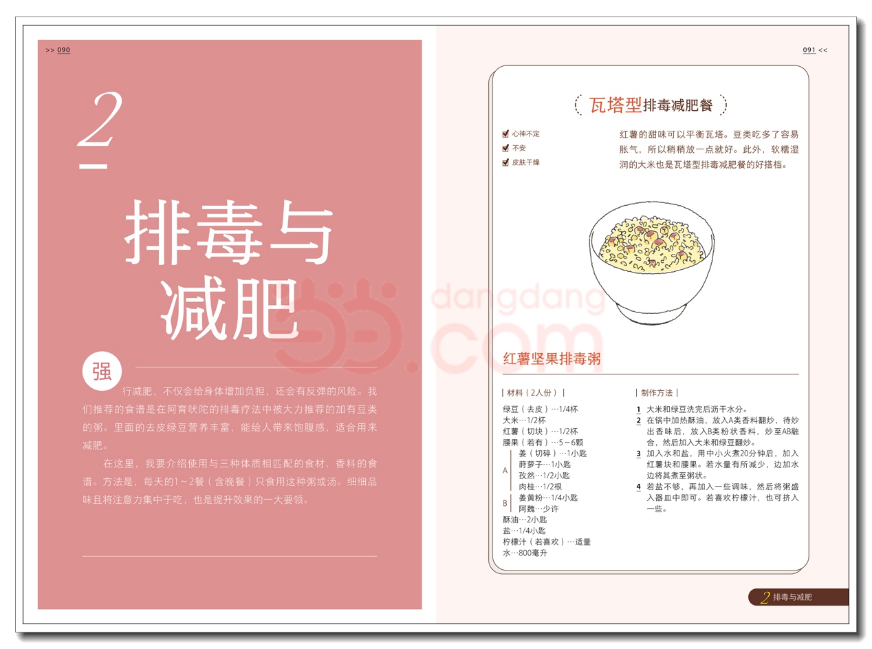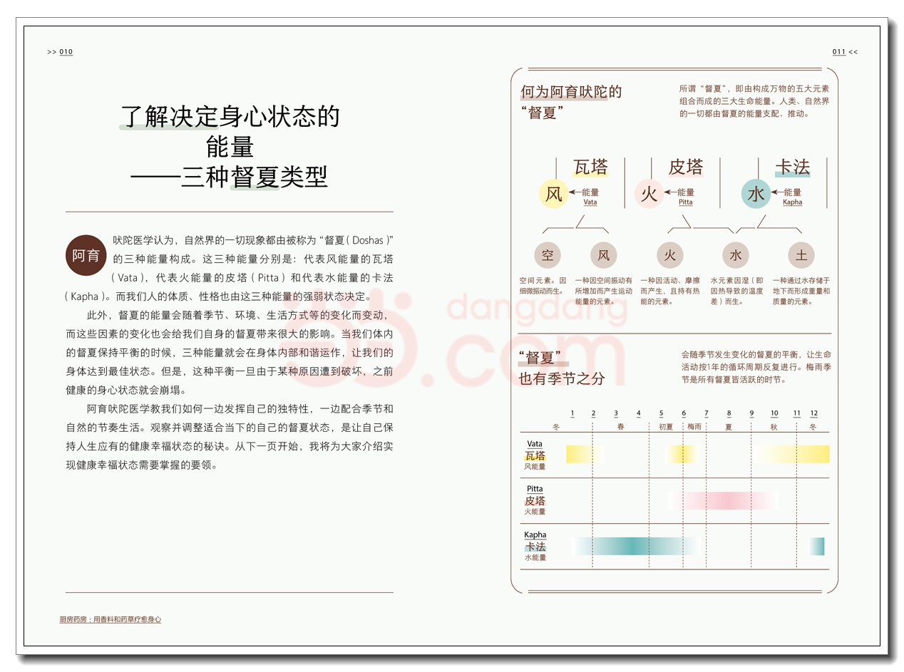 以阿育吠陀医学的智慧为基础,将厨房改造成;药房了解决定身心状态的能量三种督夏类型先辨明当下的自己以及体质,再调整身心gt;瓦塔(风能量)皮塔(火能量)卡法(水能量)使用;厨房药房的香料、药草,舒适地度过每一天厨房药房的常备香料不同体质、不同季节的常备香料和药草只要厨房药房有,就能帮上忙的香料厨房药房应备有的油和甜味料不同体质、不同季节的常备油和甜味料厨房药房的可心工具注意事项
