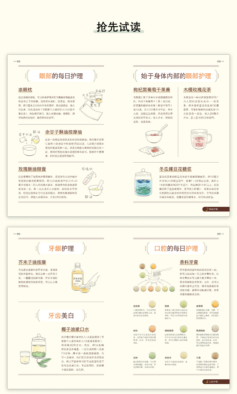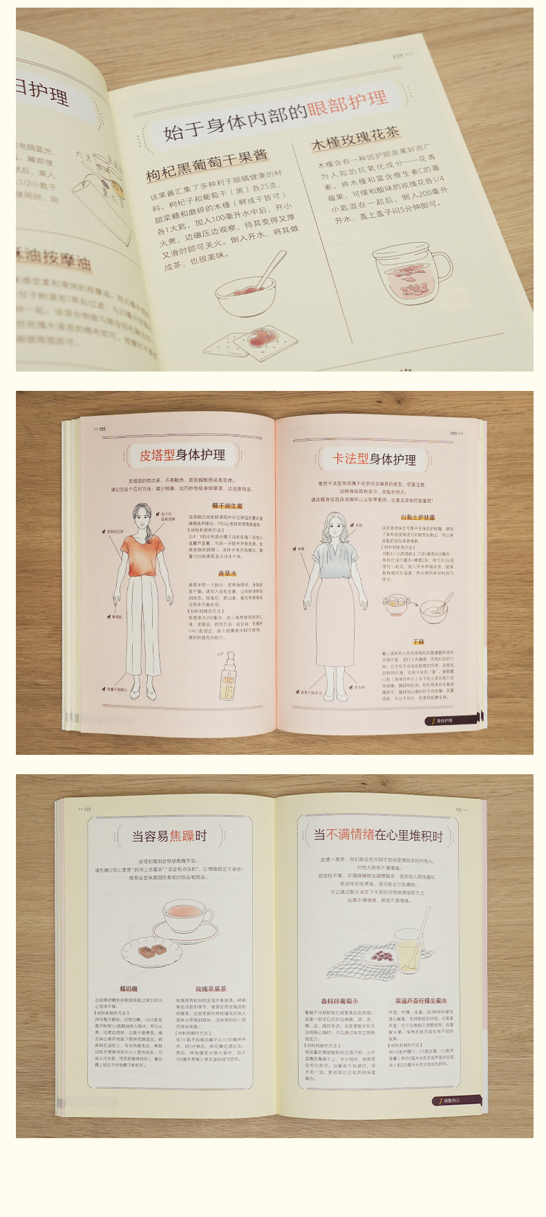 第1章 轻微不适的护理方法1头痛护理瓦塔型头痛的应对方法皮塔型头痛的应对方法卡法型头痛的应对方法2眼睛护理眼睛疲劳、结膜充血眼部的每日护理始于身体内部的眼部护理3 鼻护理流涕、鼻塞鼻黏膜的保护方法鼻的每日护理4口腔护理口臭牙龈护理牙齿美白口腔的每日护理5咽喉护理咽干嗓子不适嗓子发热咳嗽痰咽喉的每日护理6调节消化功能没有食欲胃有沉重感胃痛胃灼热恶心反胃7调节排泄功能腹胀或胀气便秘拉软便8关节护理瓦塔型关节护理皮塔型关节护理卡法型关节护理9女性的烦恼贫血月经不调更年期不适10水肿护理导致水肿的原因冷水肿热水肿11提升睡眠质量睡眠糖浆助眠饮品入眠疗法12身体健康管理感冒的预防方法健康的每日管理健康管理饮品