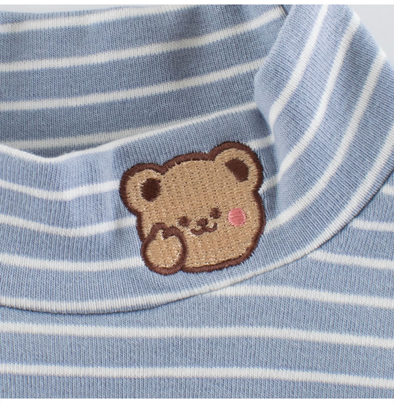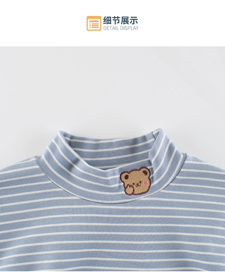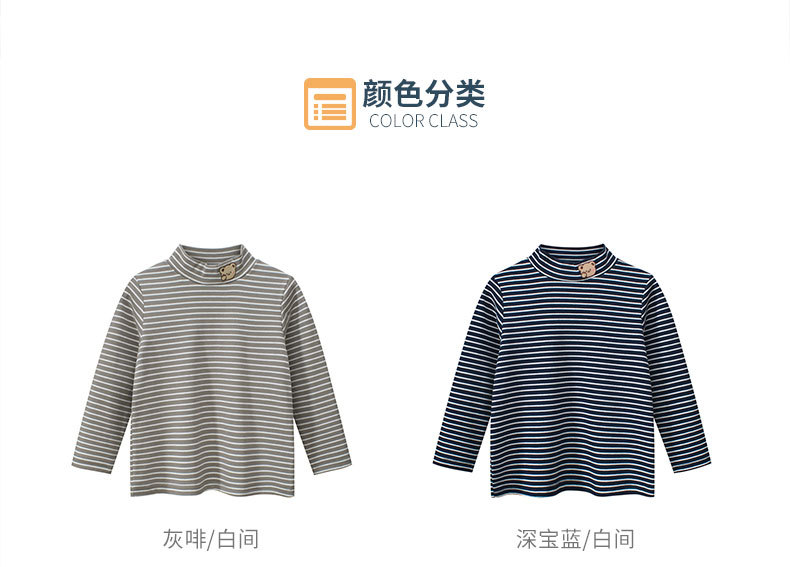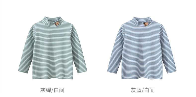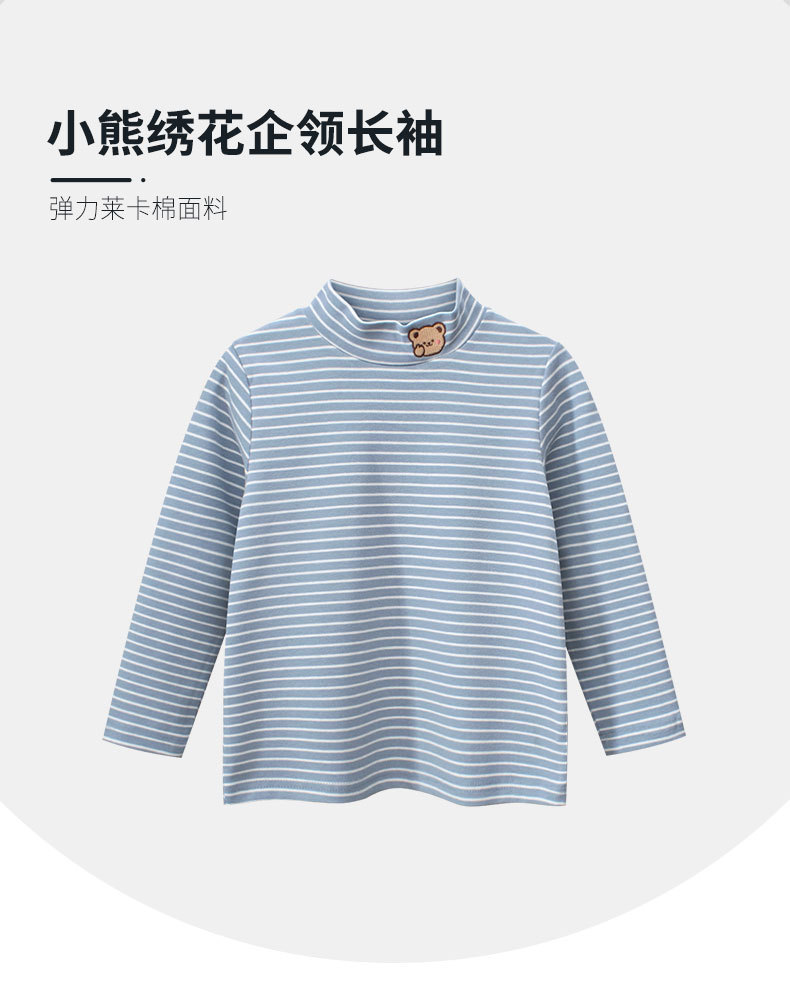 【限时特价!】27kids秋季童装儿童条纹打底衫中高领男孩子宝宝衣服刺绣