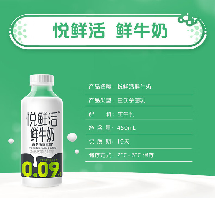 君乐宝悦鲜活鲜牛奶450ml(AA)
