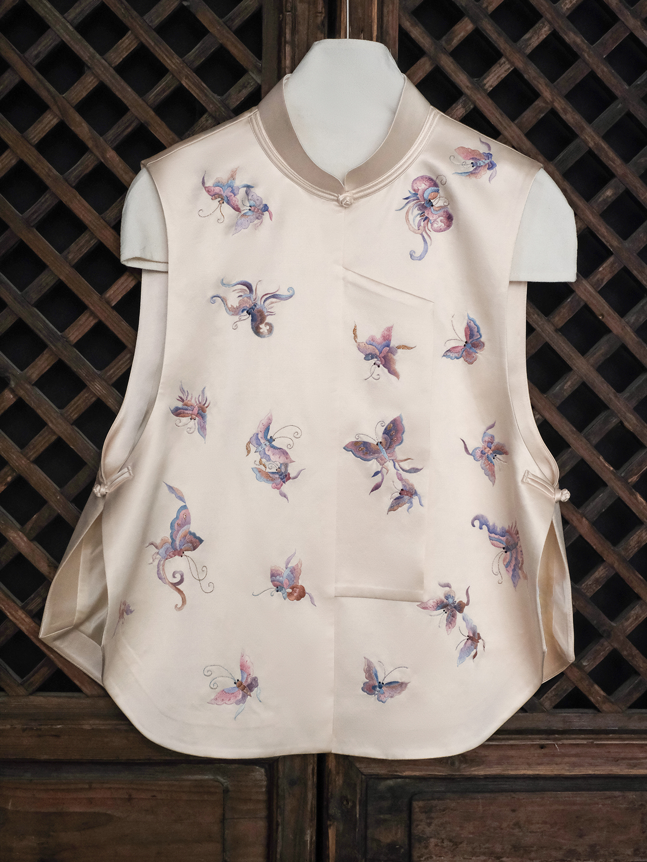 盛唐牡丹大师系列| 蝶恋花丝毛马甲-米白