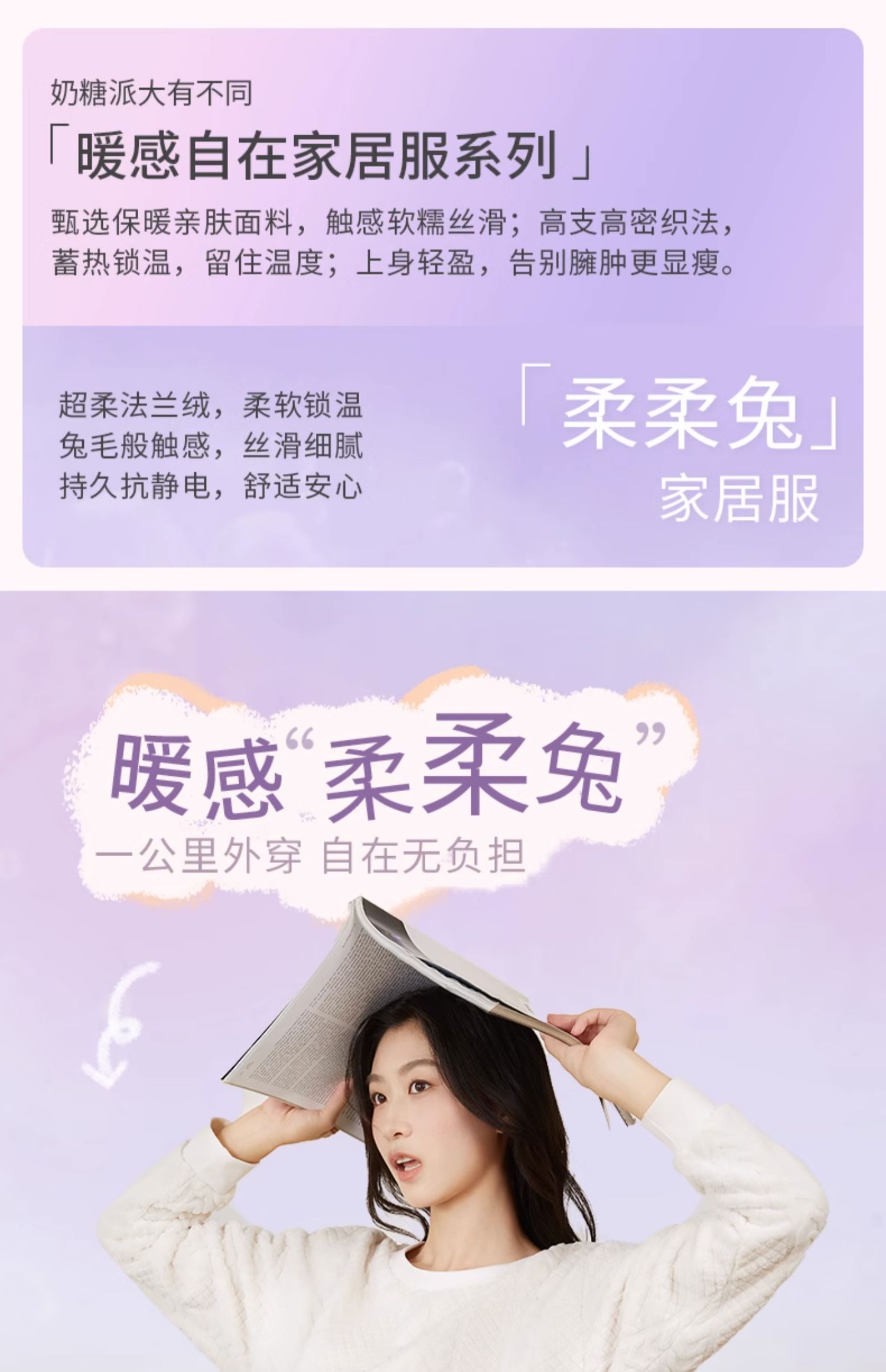 【会员积分兑换】奶糖派柔柔兔家居服圆领套装(下拉看具体兑换规则)