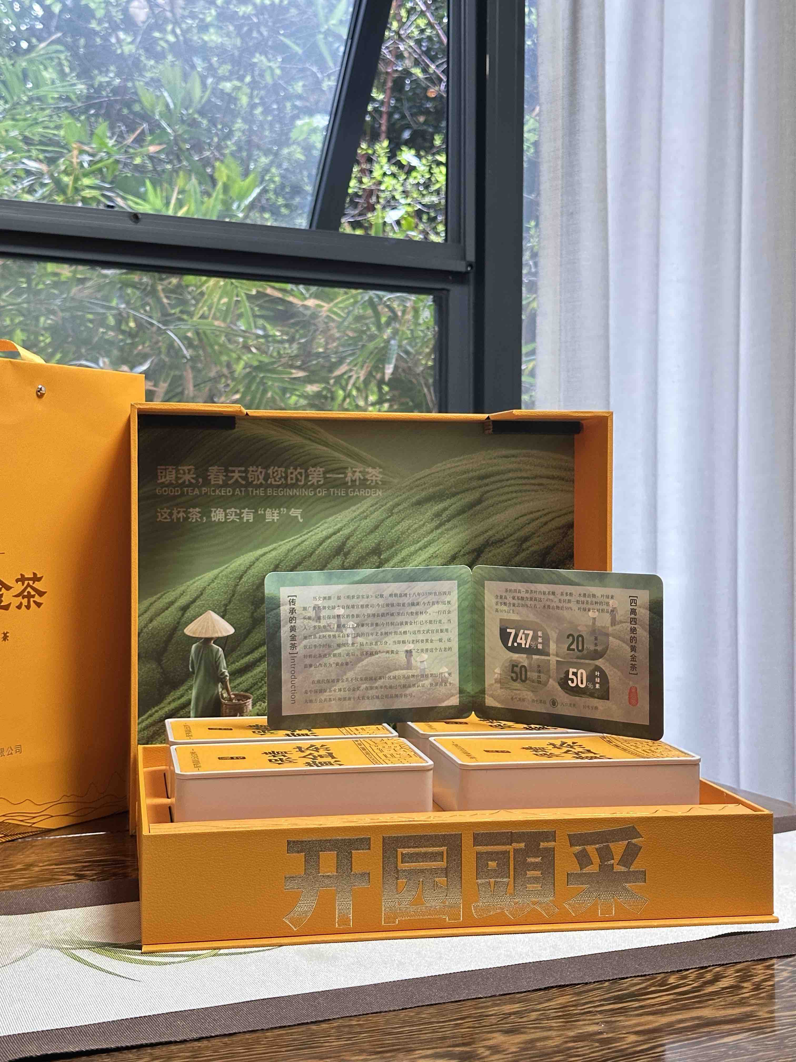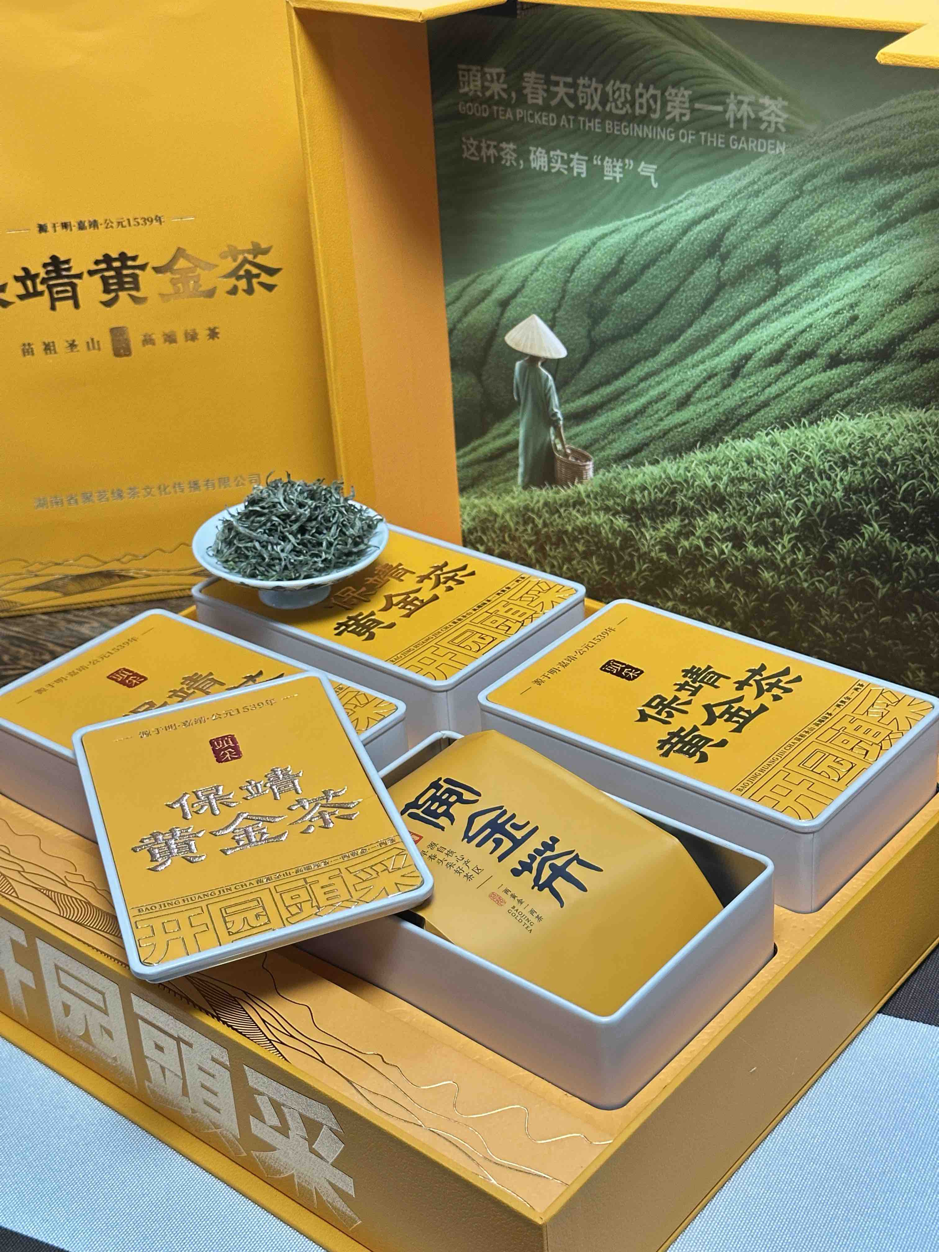 春茶上市|【保靖·黄金茶】丙午马年头采素以“高氨基酸、高茶多酚、高叶绿素、高水浸出物质”和“香、绿、爽、醇”四高四绝品质特点闻名遐迩,一两黄金一两茶,馈赠自饮佳品,净重:200g(50g*4罐*1提