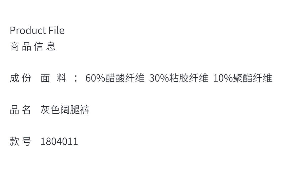 ELITE —极简风—灰色阔腿裤-时尚通勤休闲百搭显瘦长裤 1804011