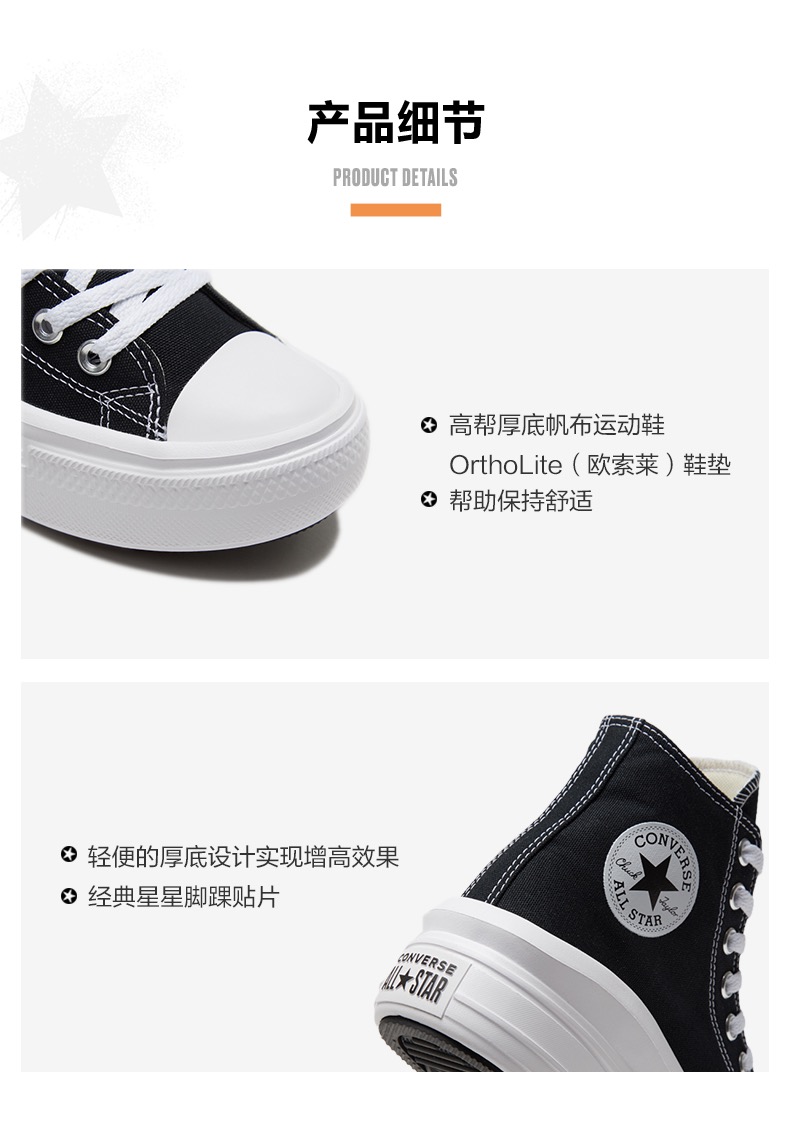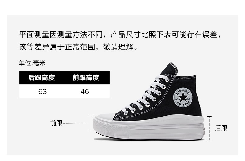 【云粉节】【8折】7楼CONVERSE匡威 All Star Move黑色高帮厚底帆布鞋568497 吊牌价549元 现价439元