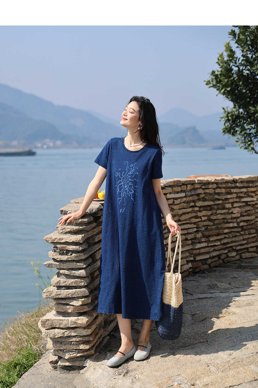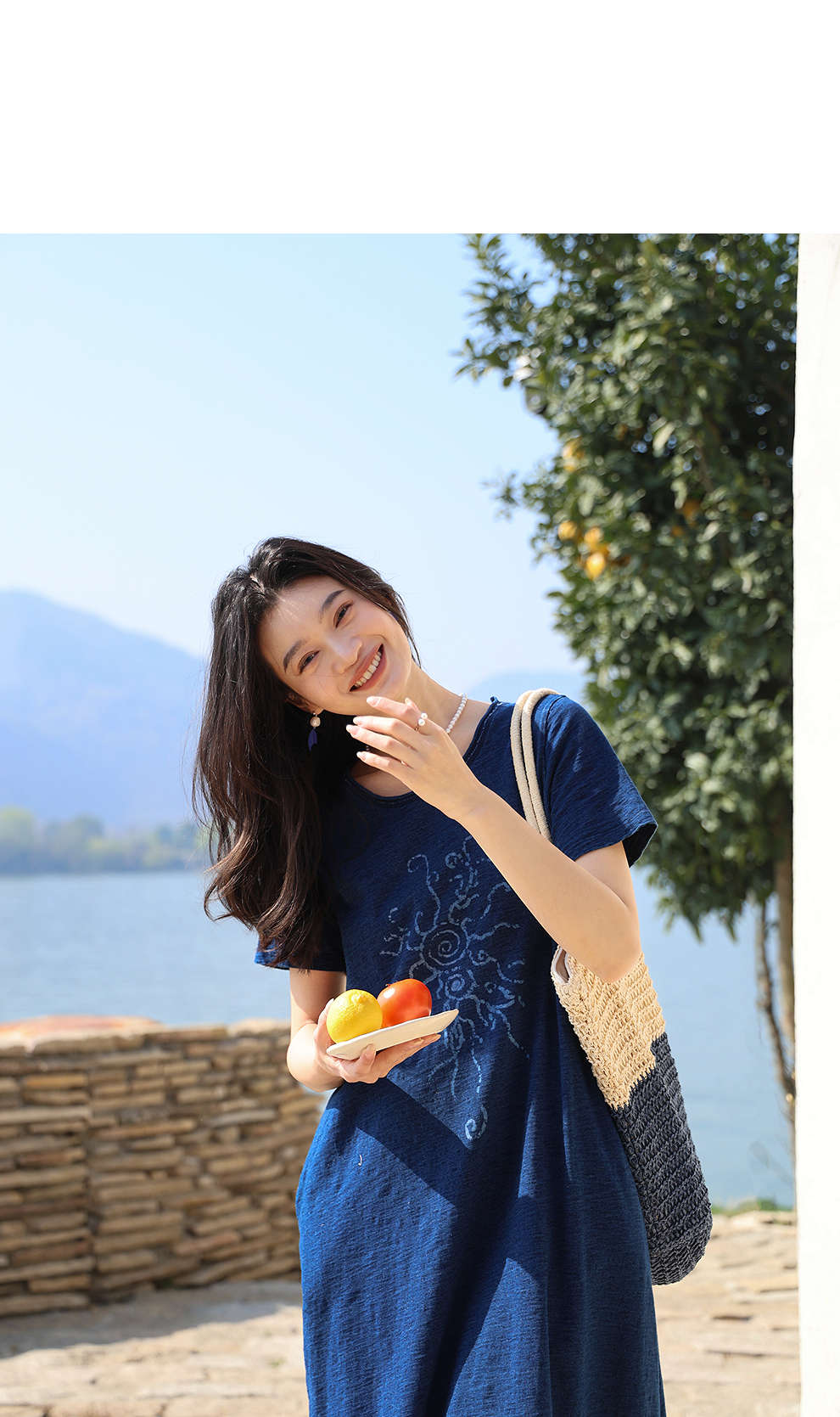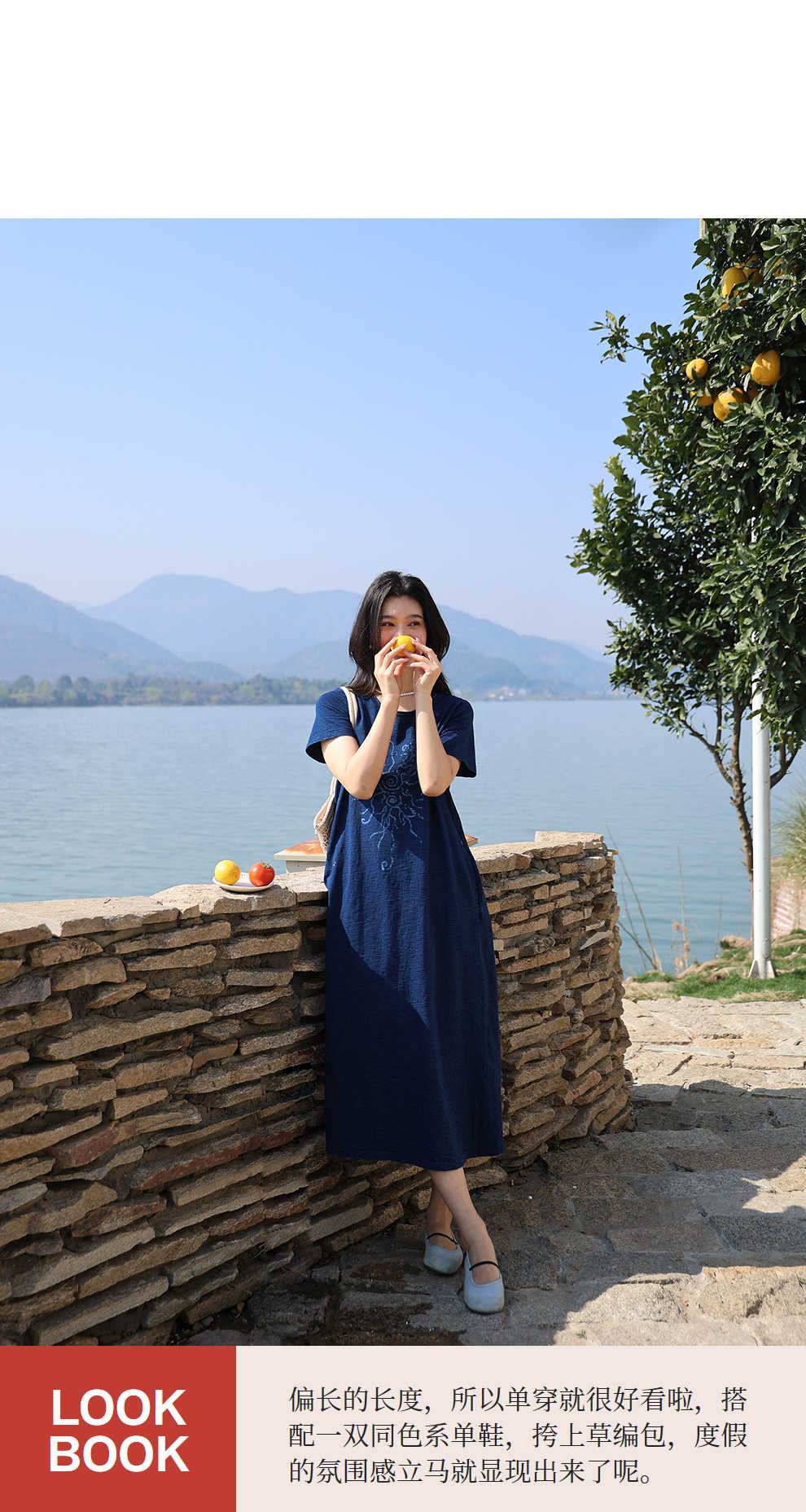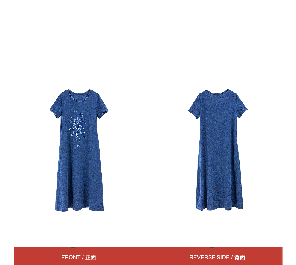 绽放旅行女装234朵/竹节棉针织手绘螺旋花短袖连衣裙舒适透气百搭